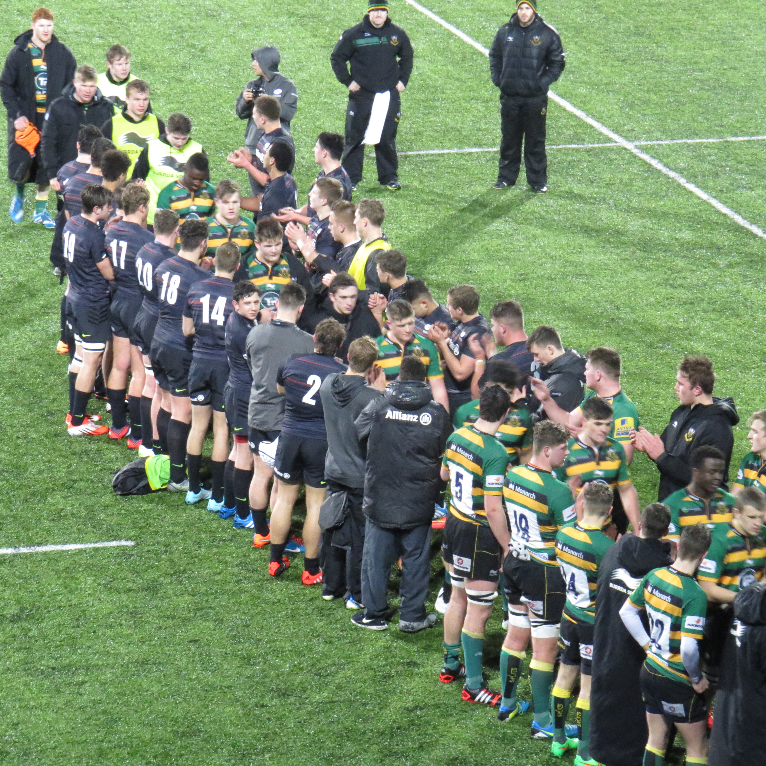 With 2 minutes on the clock Saracens scored another try to break Saints hearts – the game finished with the score on Saints 19 Saracens 23. Saracens were crowned Academy Champions.