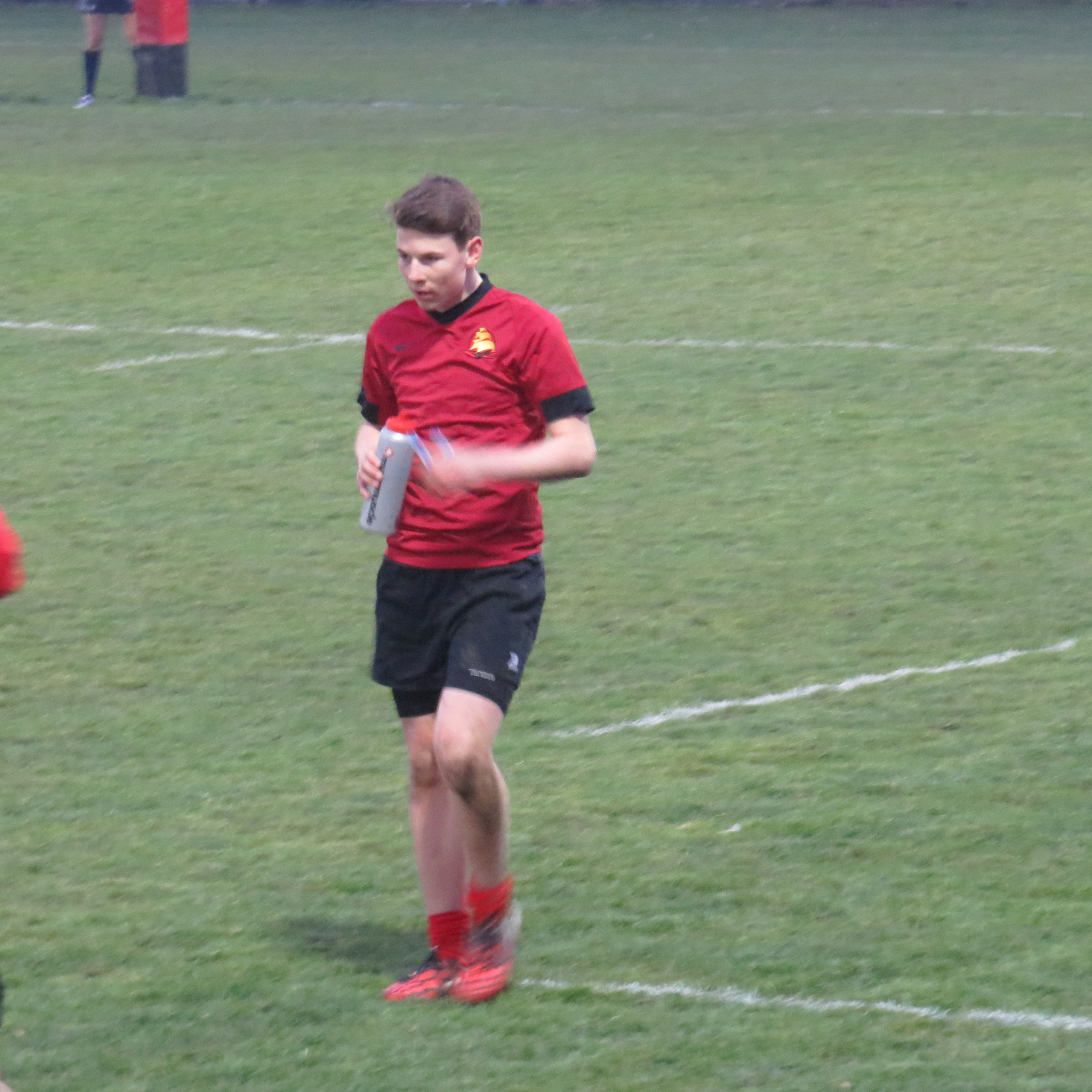 Sam scored a very well taken try for Mayflower putting them ahead before Matt kicked a penalty for Trinity. He’d missed with his 1st attempt, but Mayflower had encroached and the kick was re-taken. The teams went in at half time with the score on Mayflower 5 Trinity 3