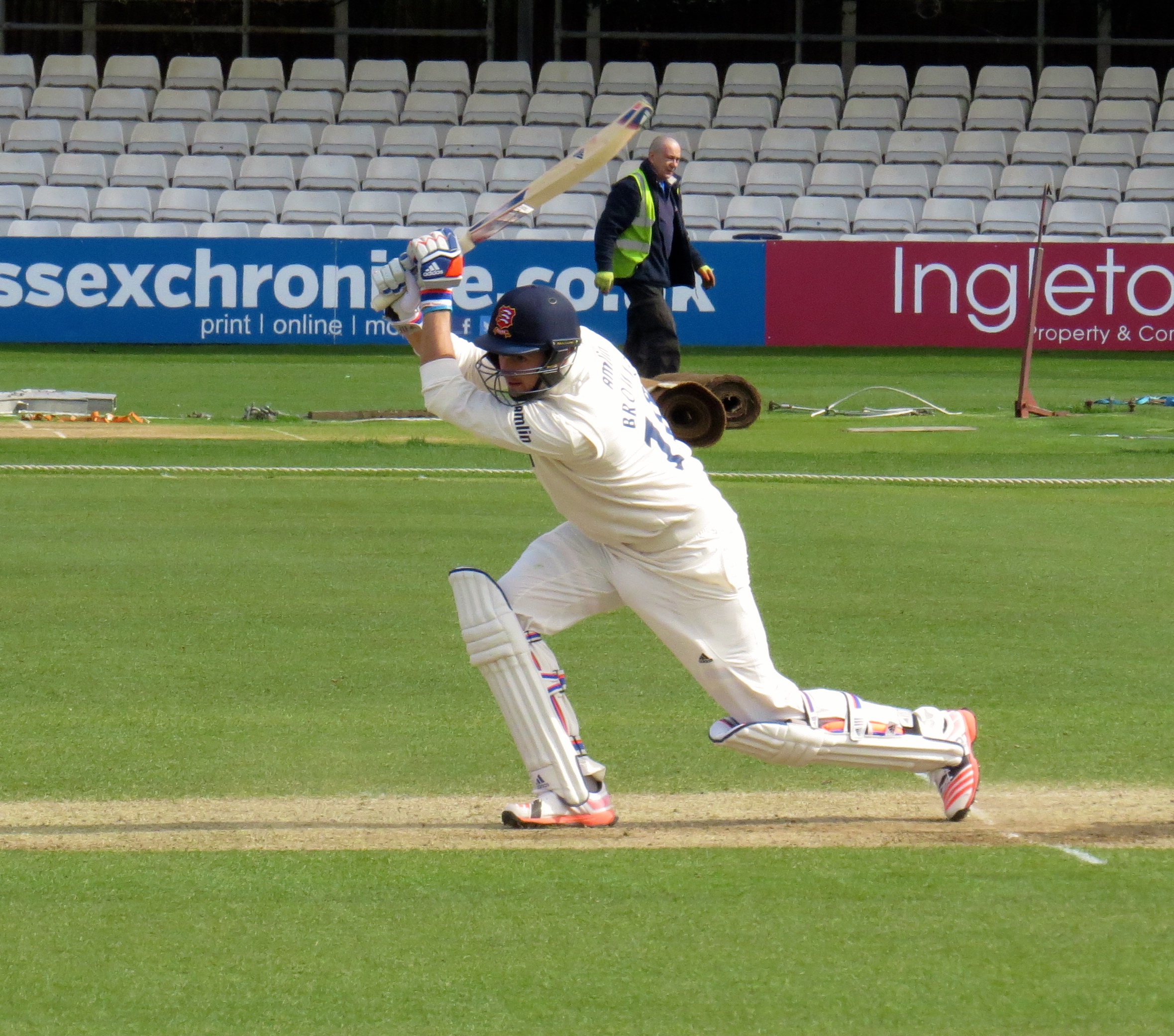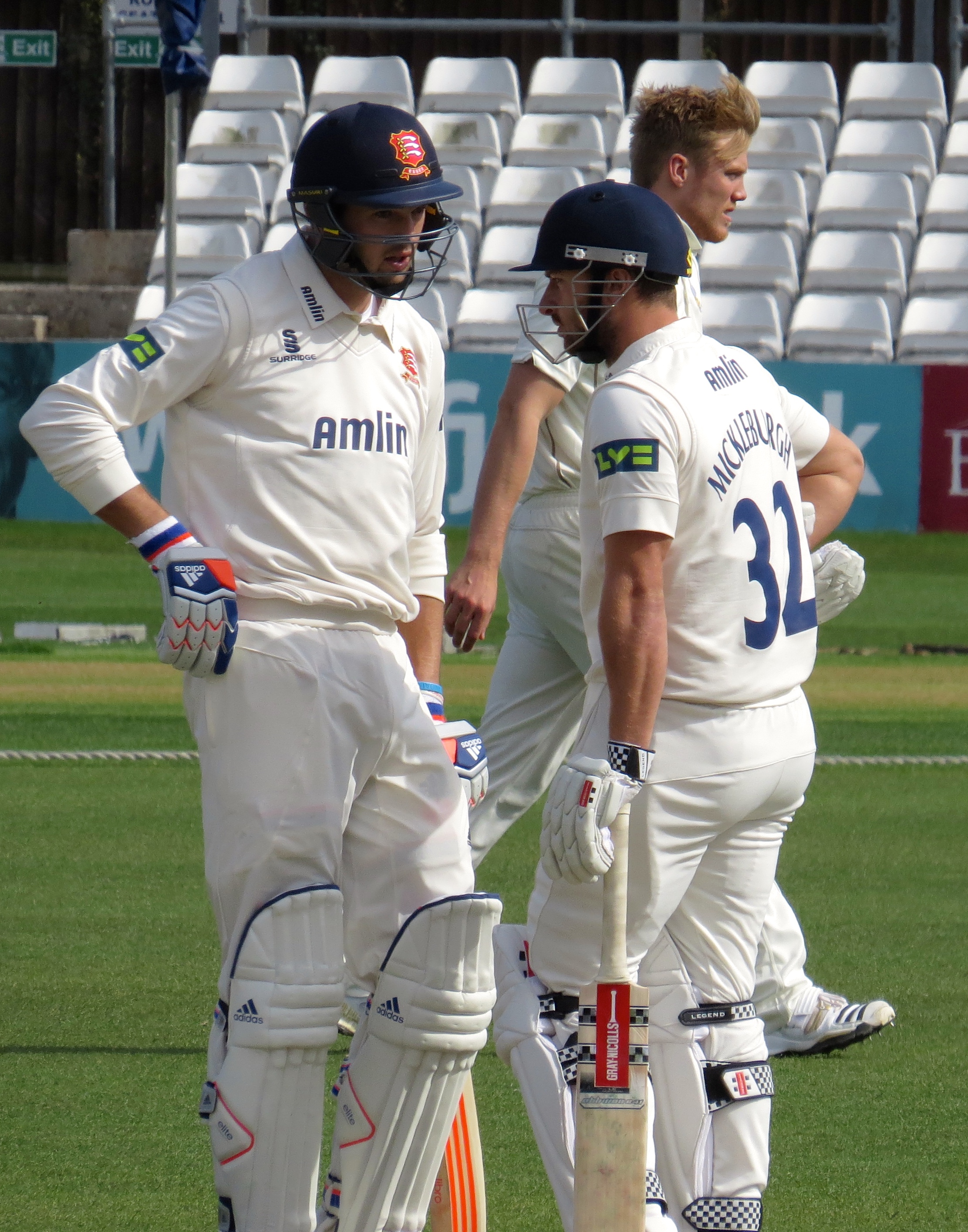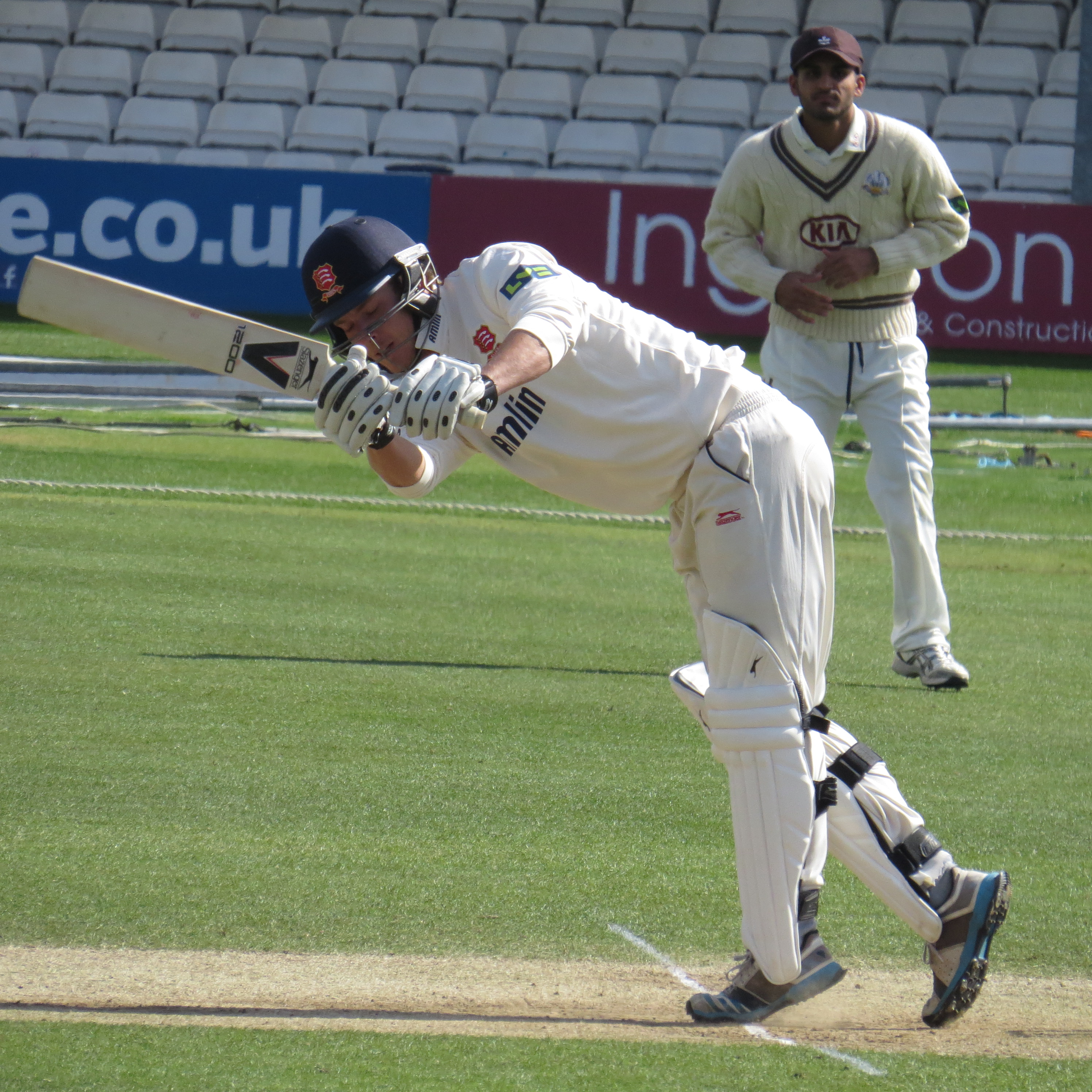 Next to the crease was Jaik Mickleburgh – he was out LBW to Tom Curran for 10. It was interesting to spot Reece Topley being put through his paces across the pitch as Essex were batting.