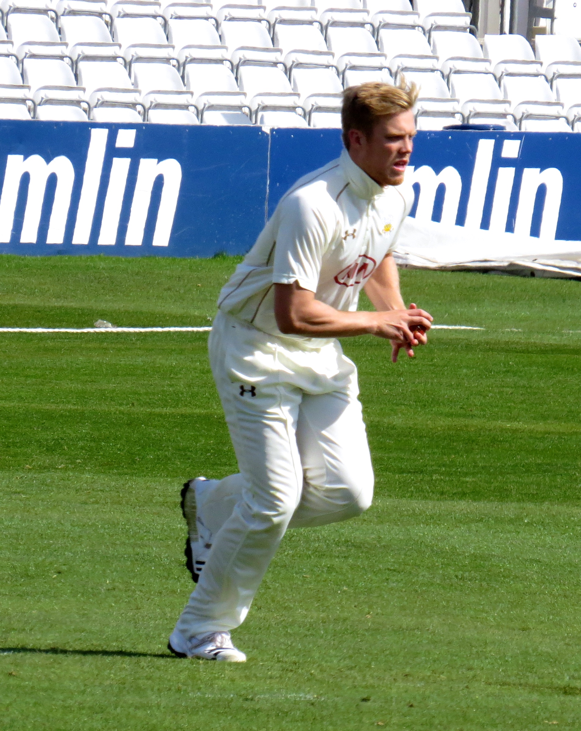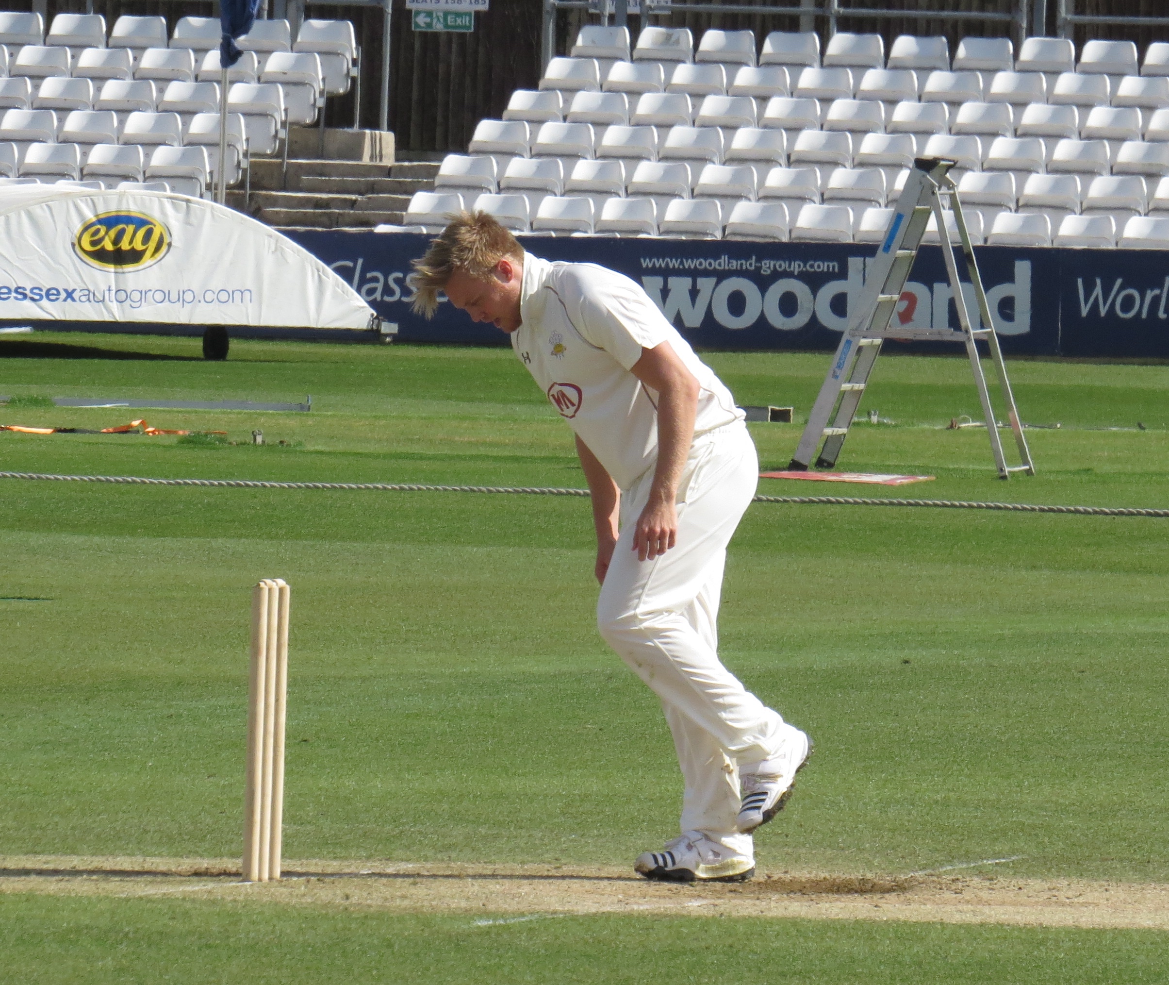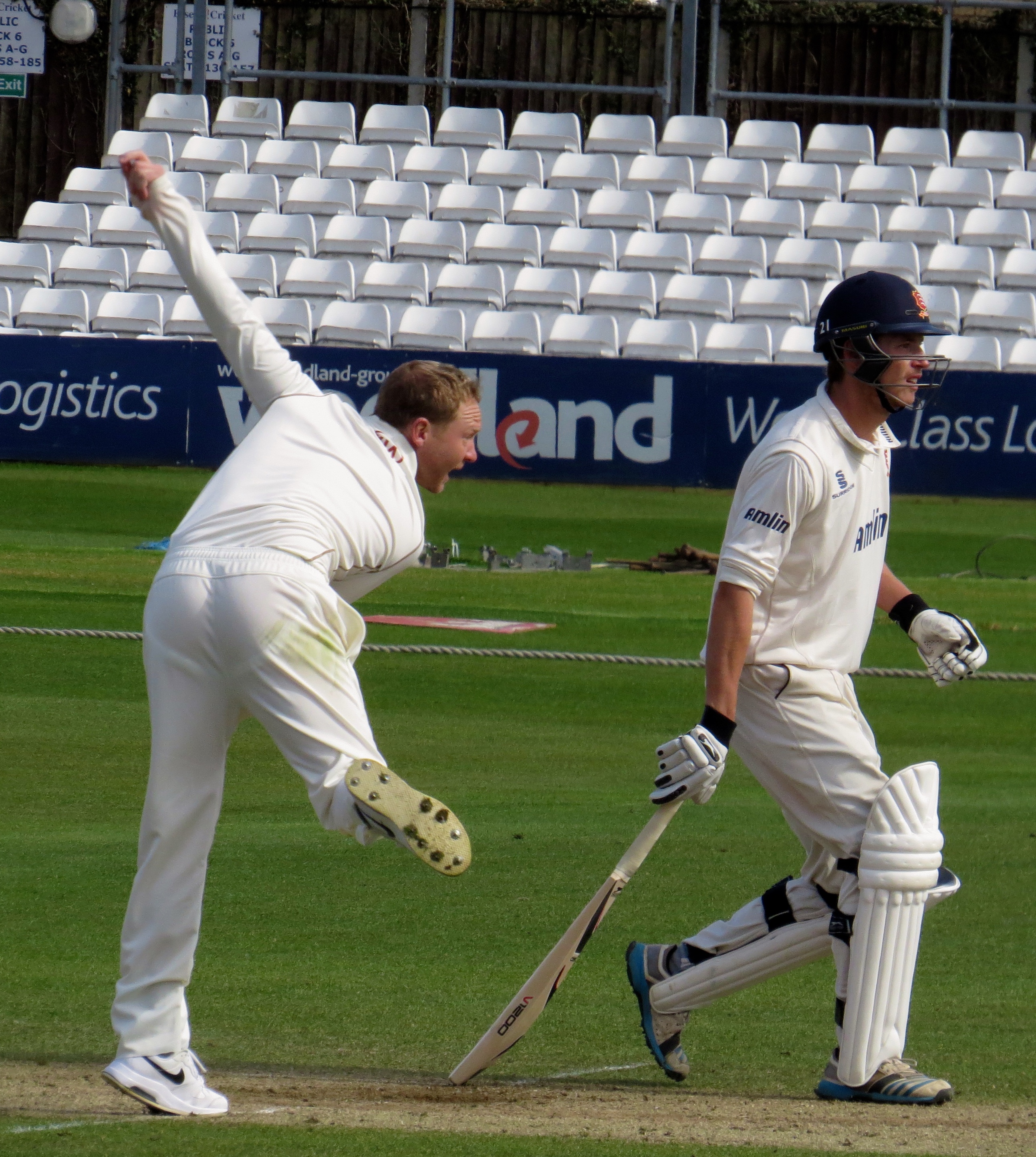 Next to the crease was Jaik Mickleburgh – he was out LBW to Tom Curran for 10. It was interesting to spot Reece Topley being put through his paces across the pitch as Essex were batting.