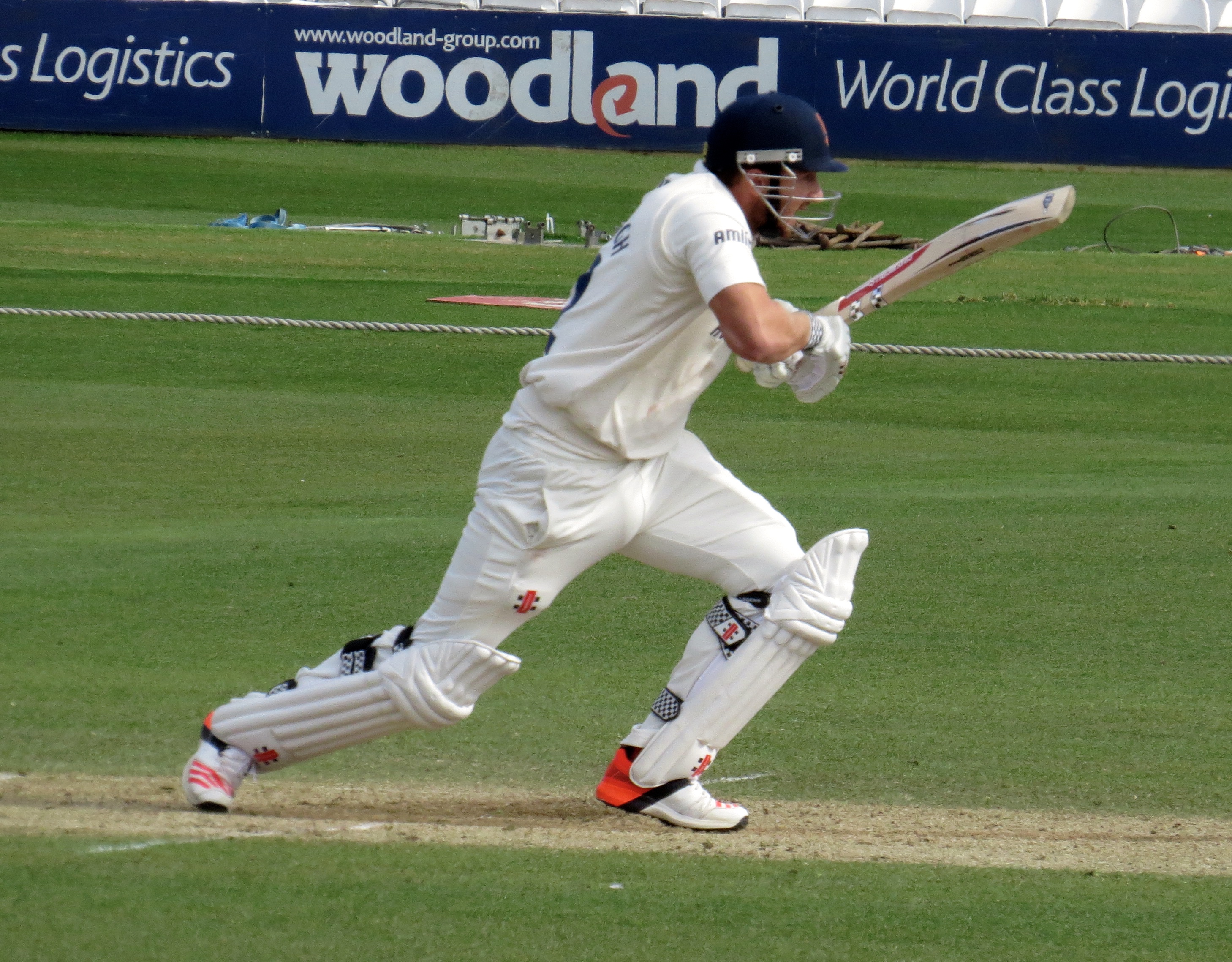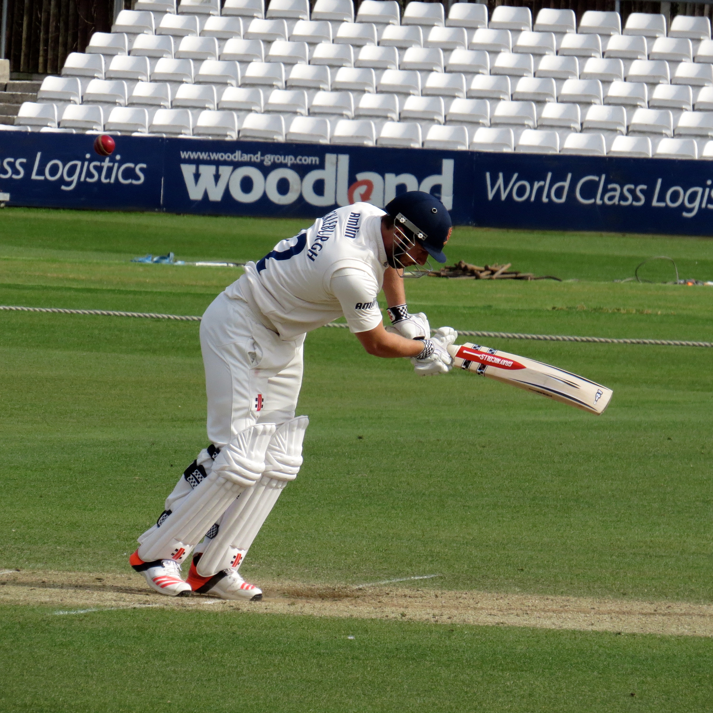 Nick Browne had hit some good runs, including a huge 6 over the River Stand, making 49 before he was given out LBW to Kapil. He’d been fielding right in front of me at one point, I eluded to how cold it was, he explained that hands are the biggest issue – the ball hitting them hurts when it’s cold!