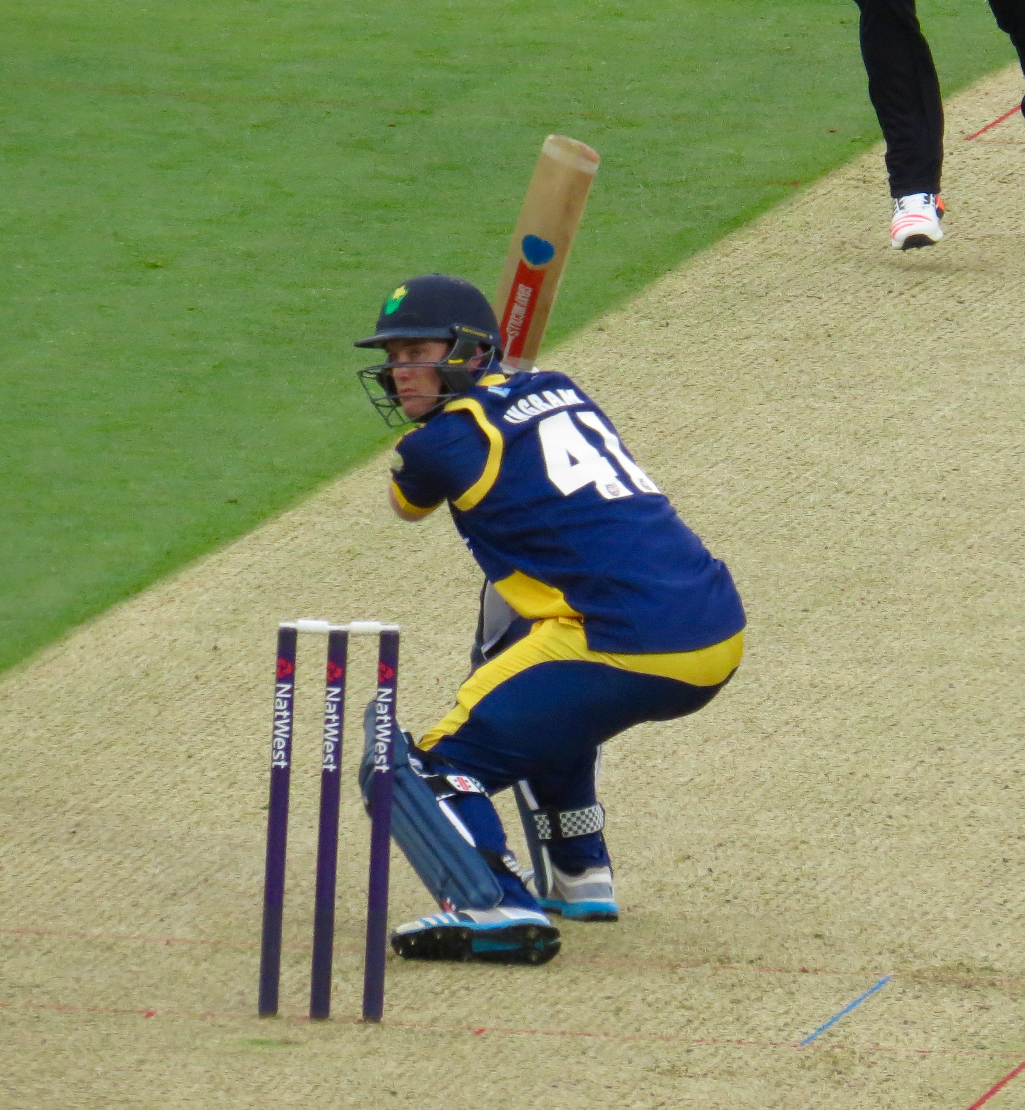 Chris Cooke joined Ingram at the crease; Ingram had given so much entertainment he was deserving of getting a century but was bowled by Wahab Riaz on 91.