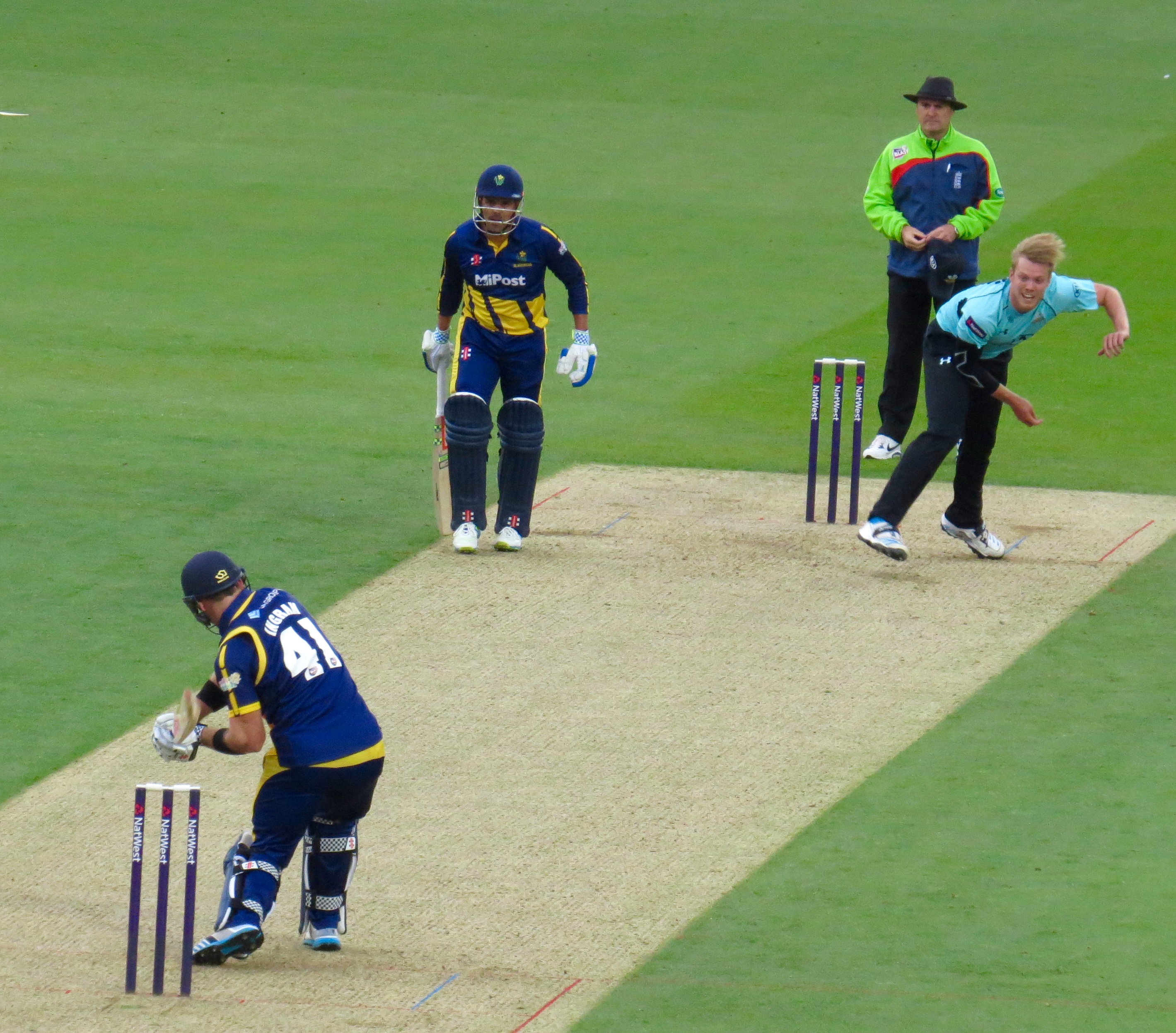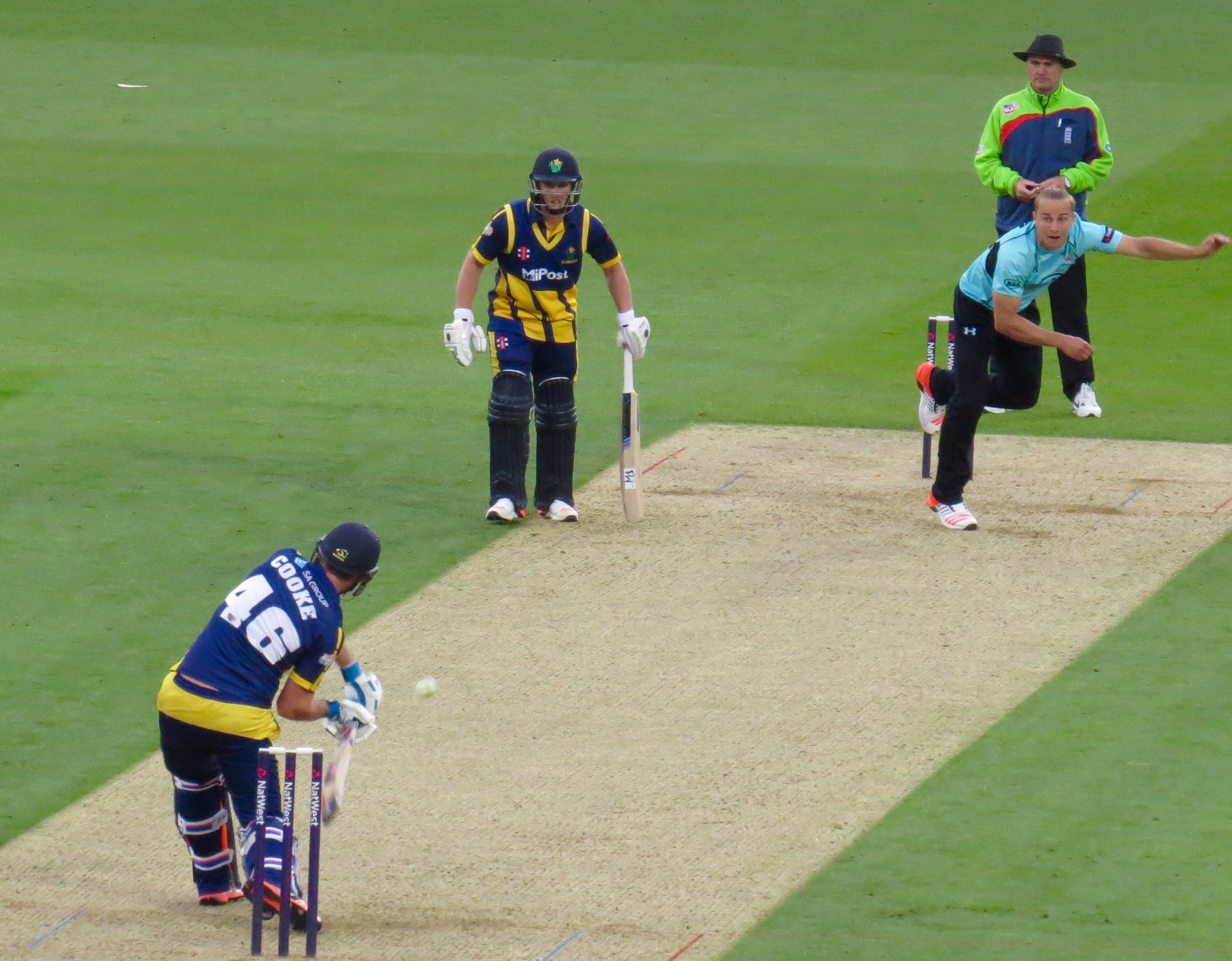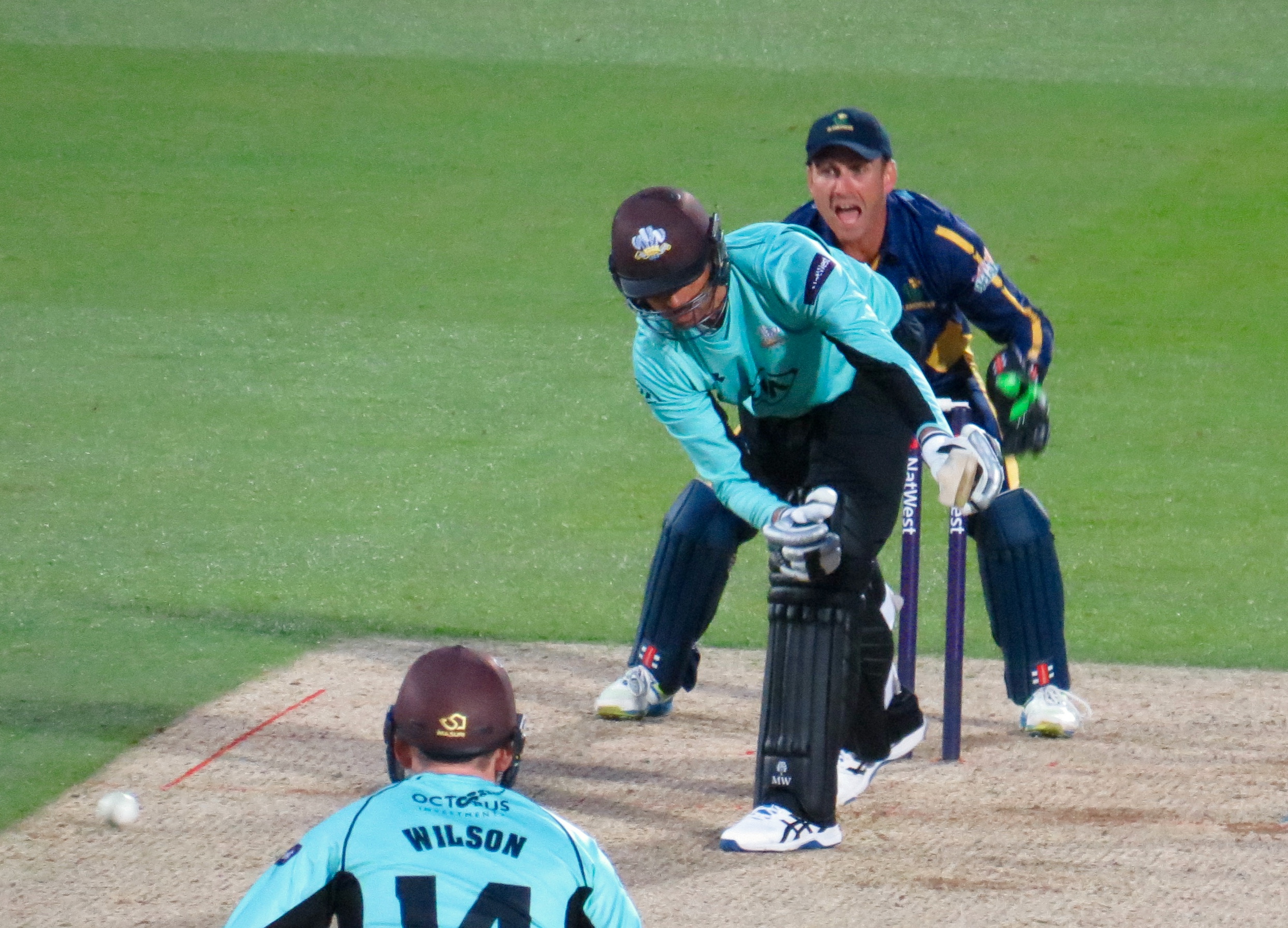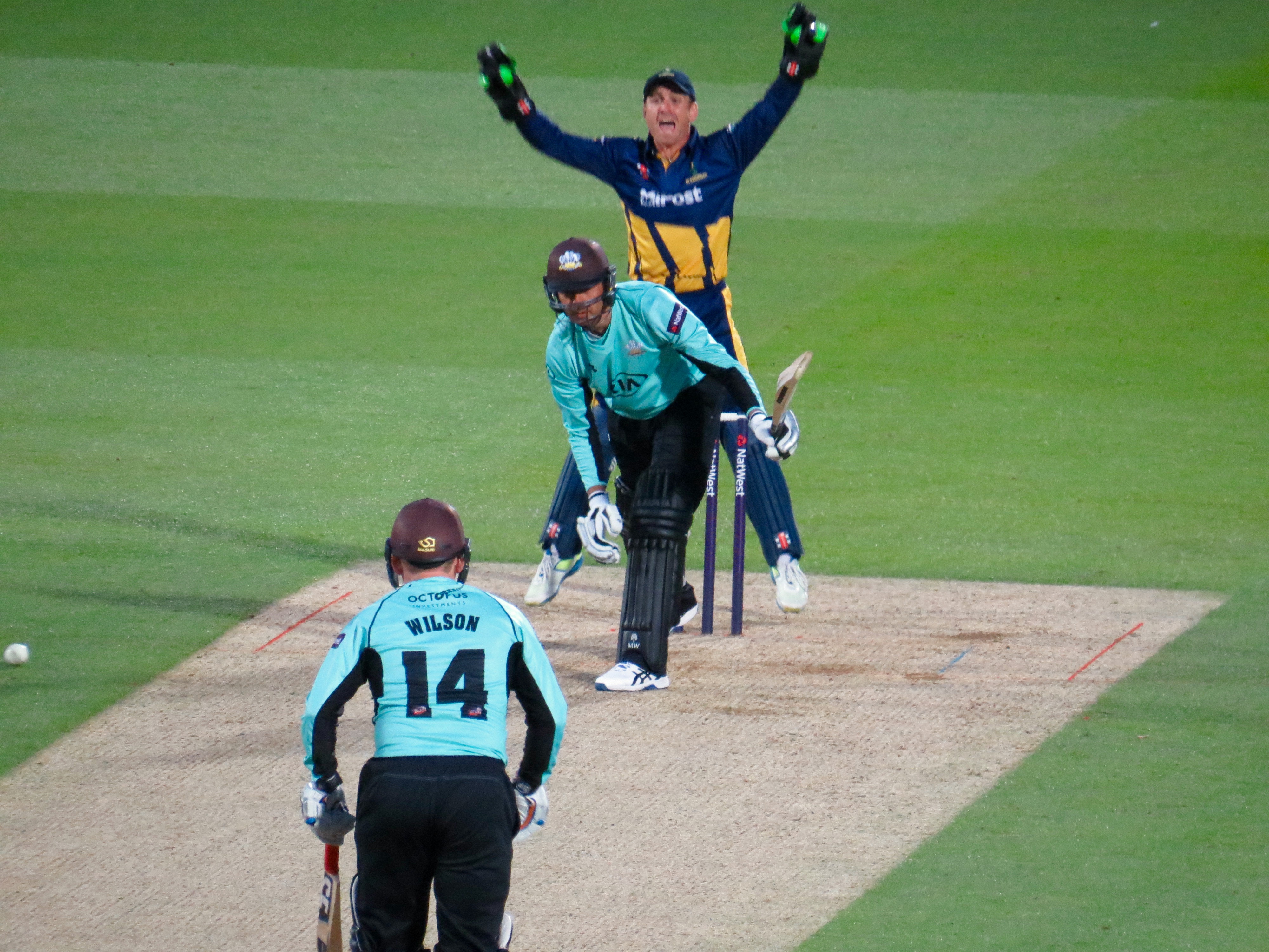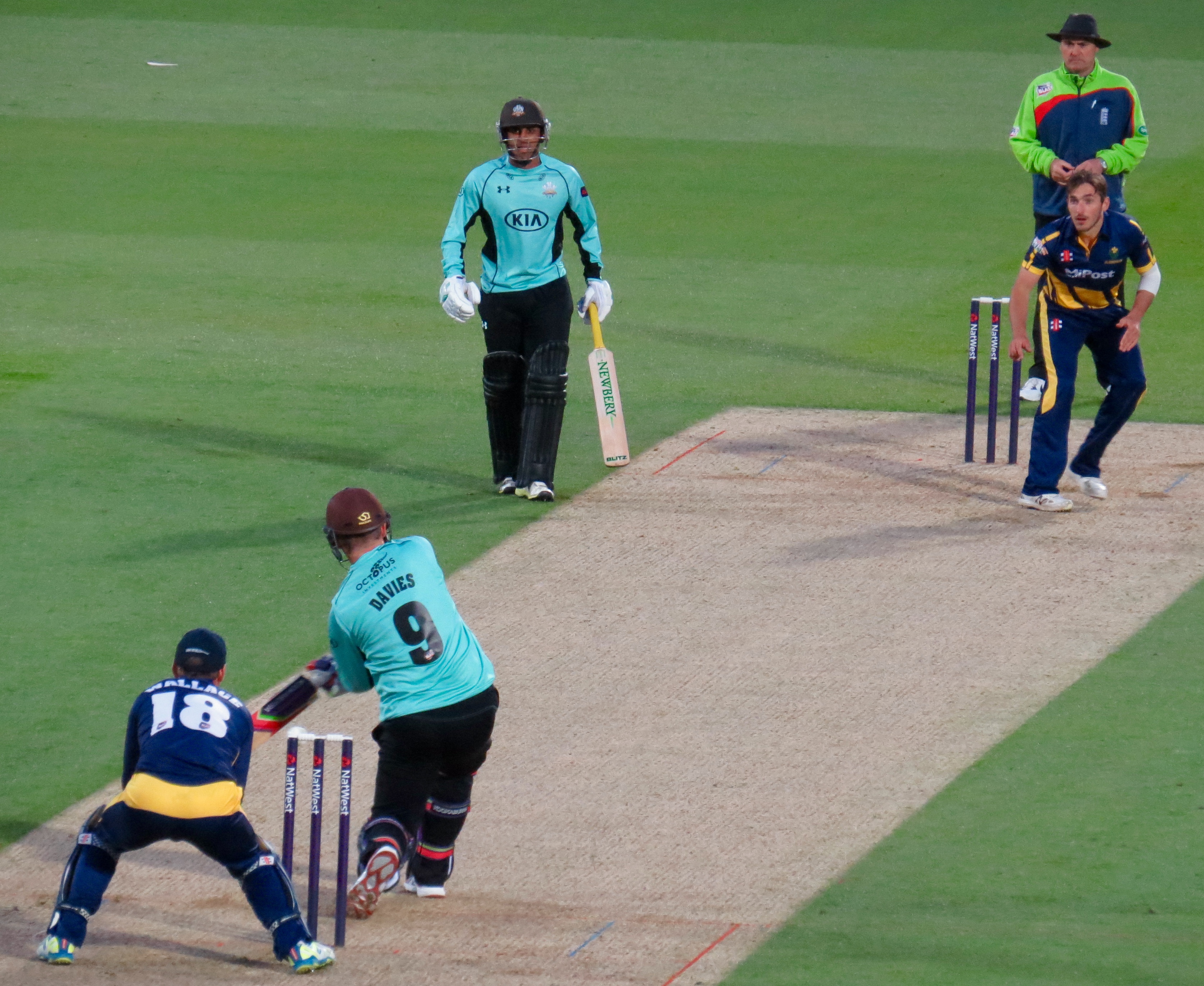 A short break and the players returned, it would take a huge effort for Surrey to get the win. Jason Roy and Steve Davies opened the batting – Surrey’s cause wasn’t helped when Roy skyed a ball to be caught by Chris Cooke from the bowling of Michael Hogan on a paltry 1.