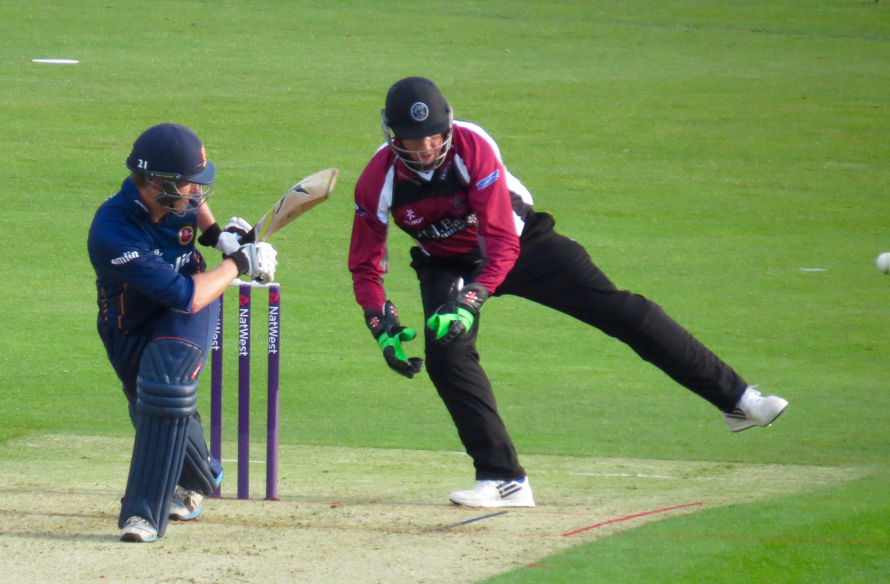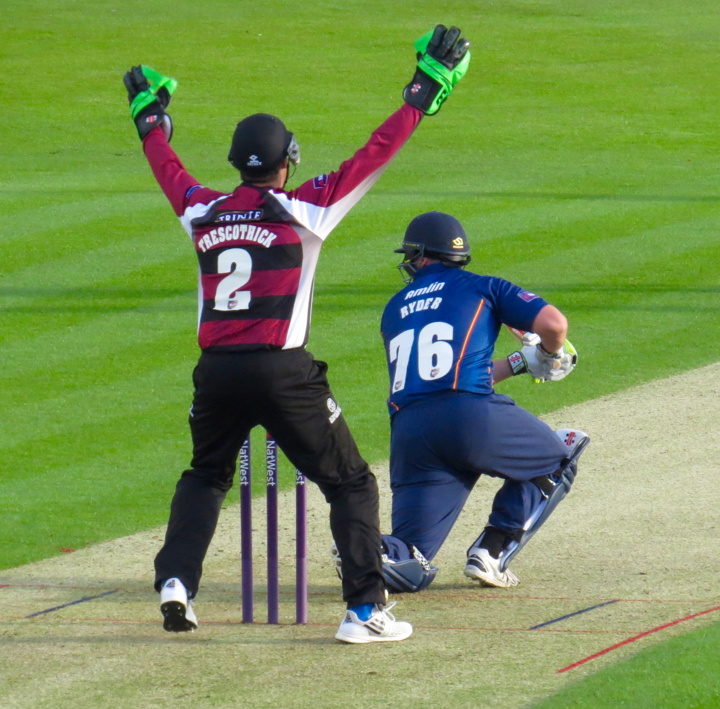 Ryan Ten Doeschate lasted a little longer, facing 11 balls for his 14 runs – he was out caught Peter Trego off the bowling of Max Waller.