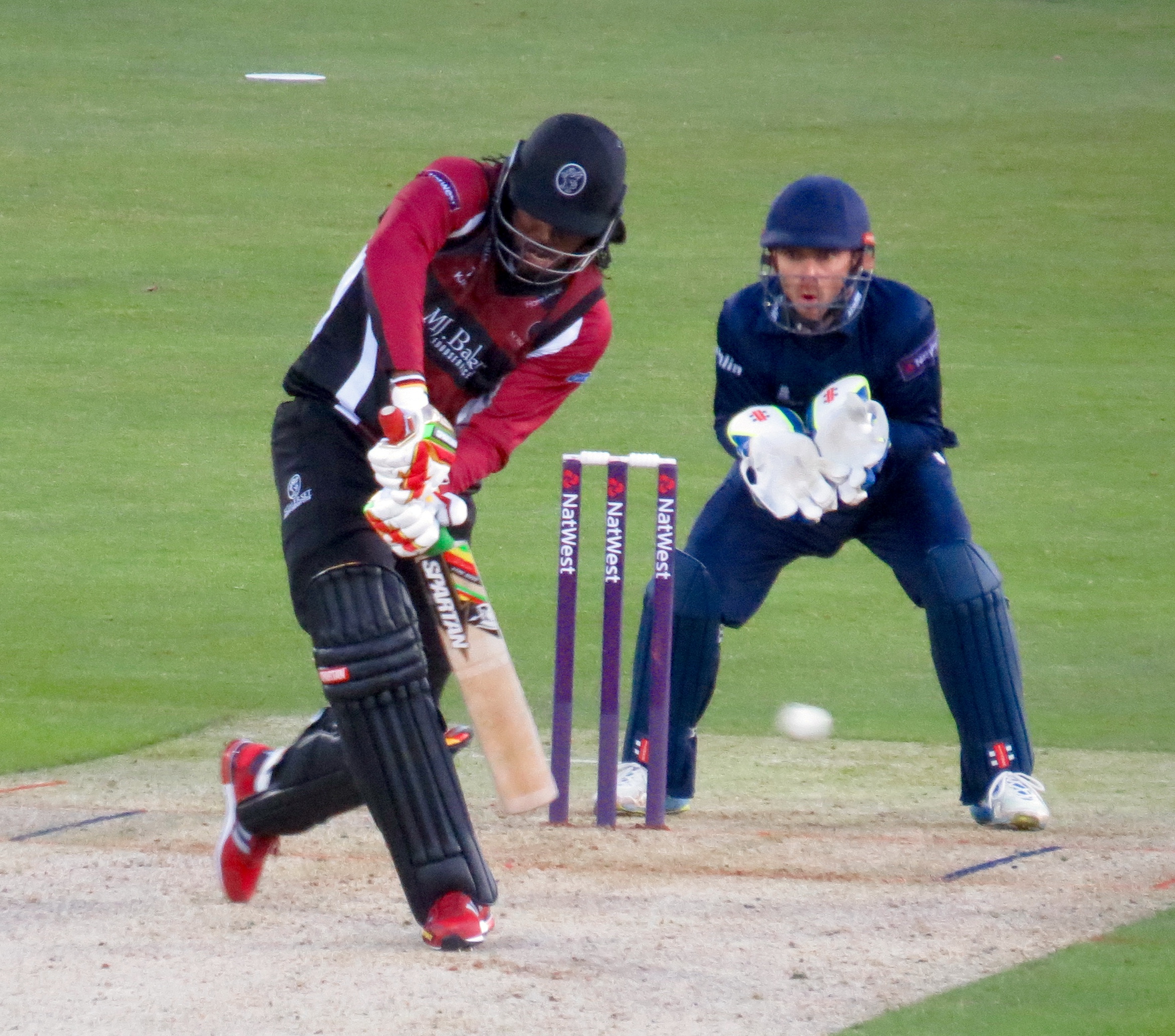 Gayle started slowly and seemed to be a little perturbed by some of the bowling – that was of course to change, but in the meantime Trescothick scored 20 from 13 balls before an athletic catch by David Masters off the bowling of Graham Napier saw him depart.