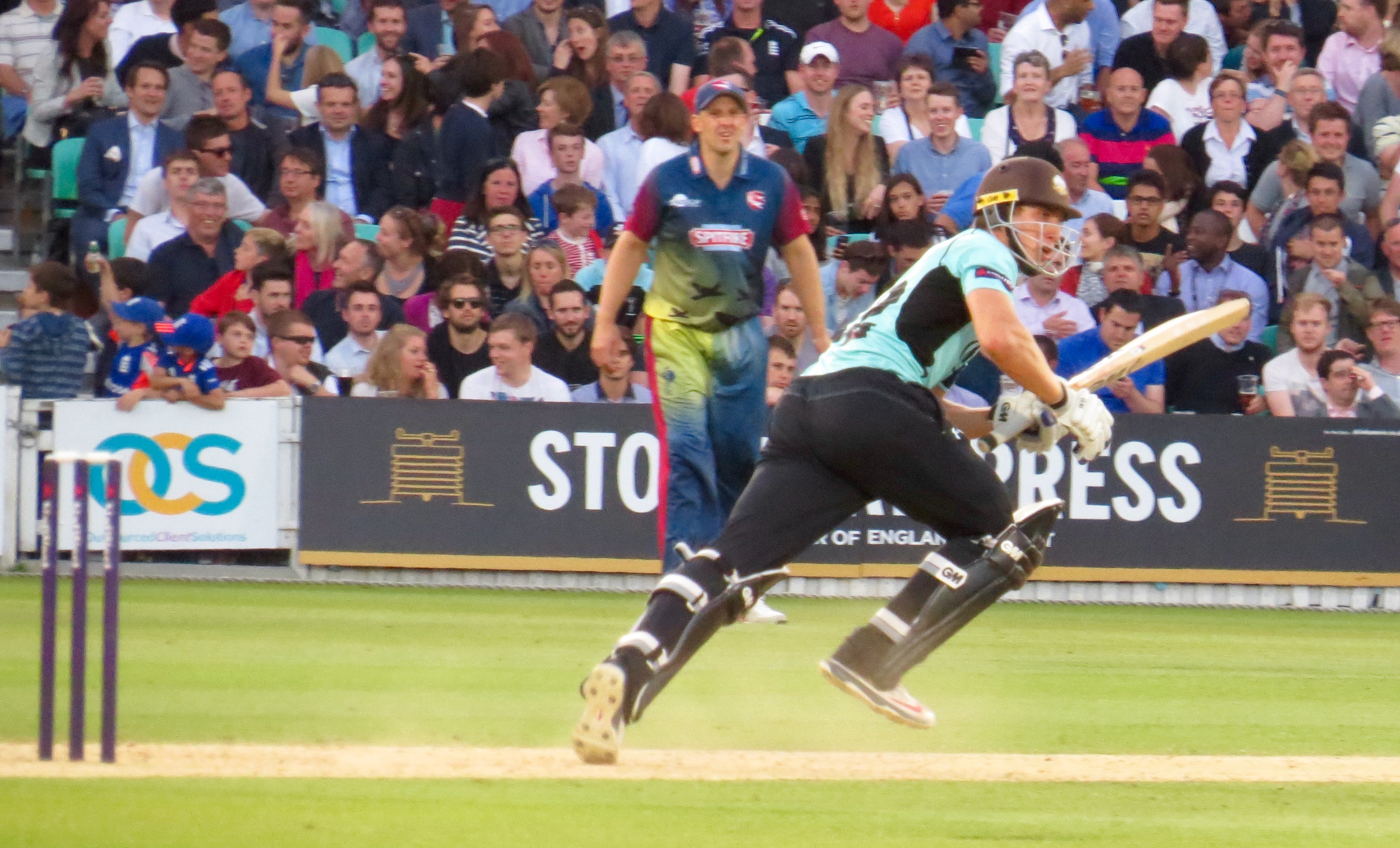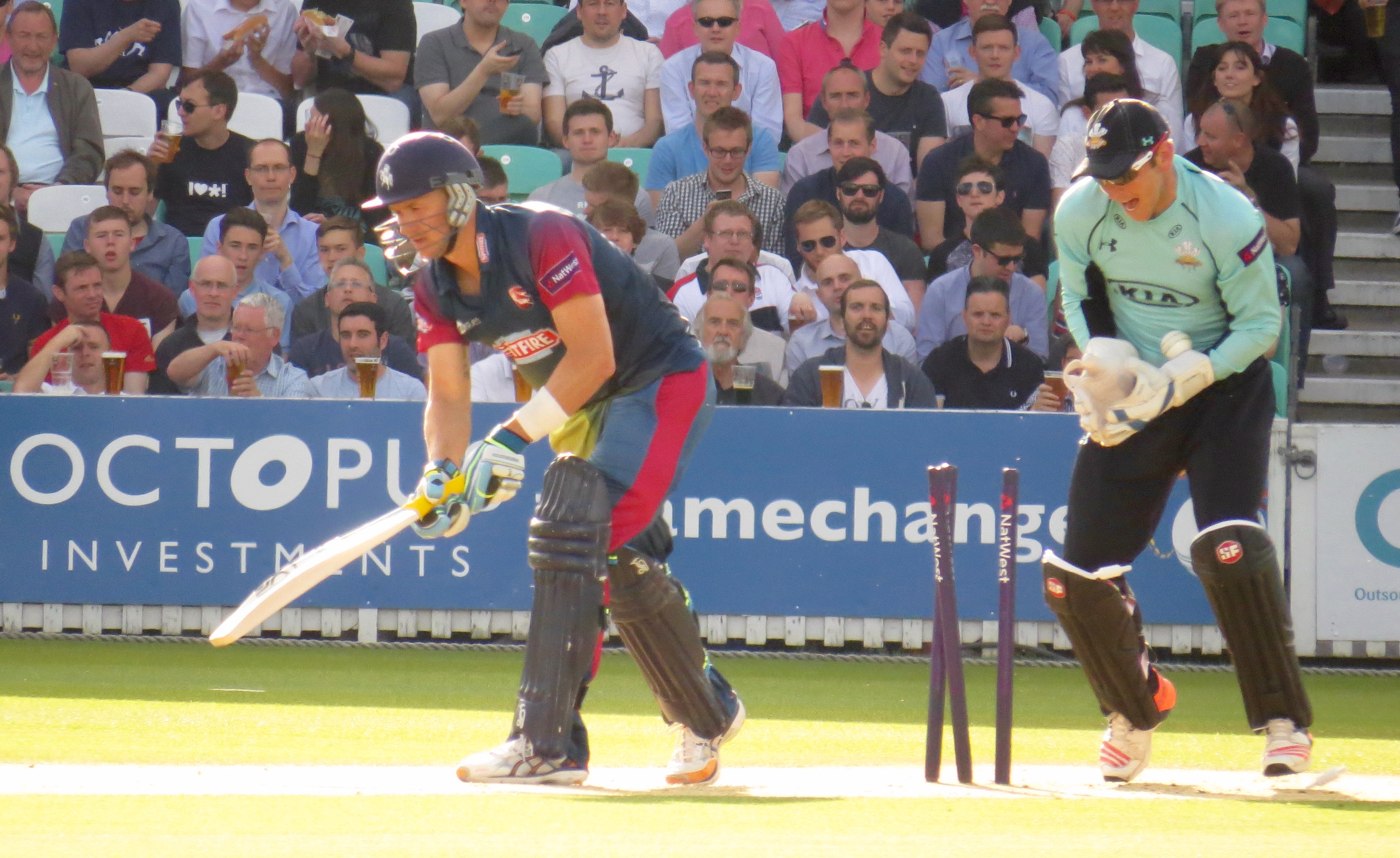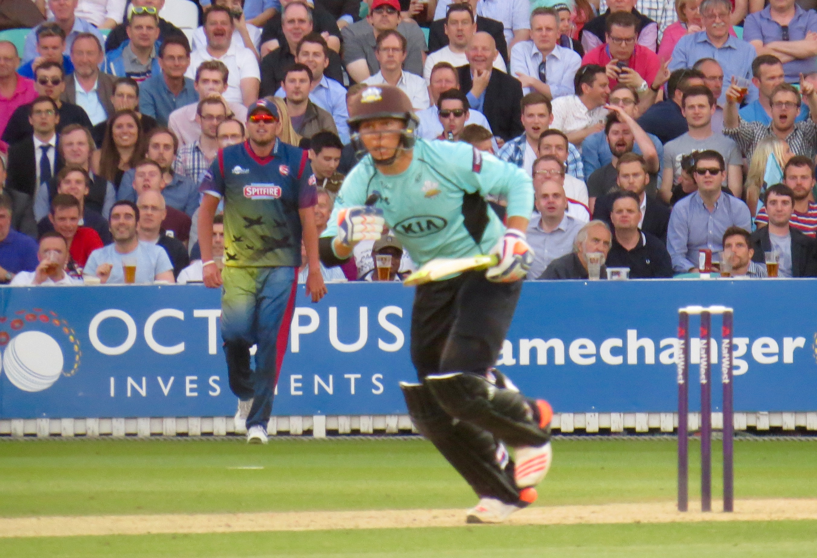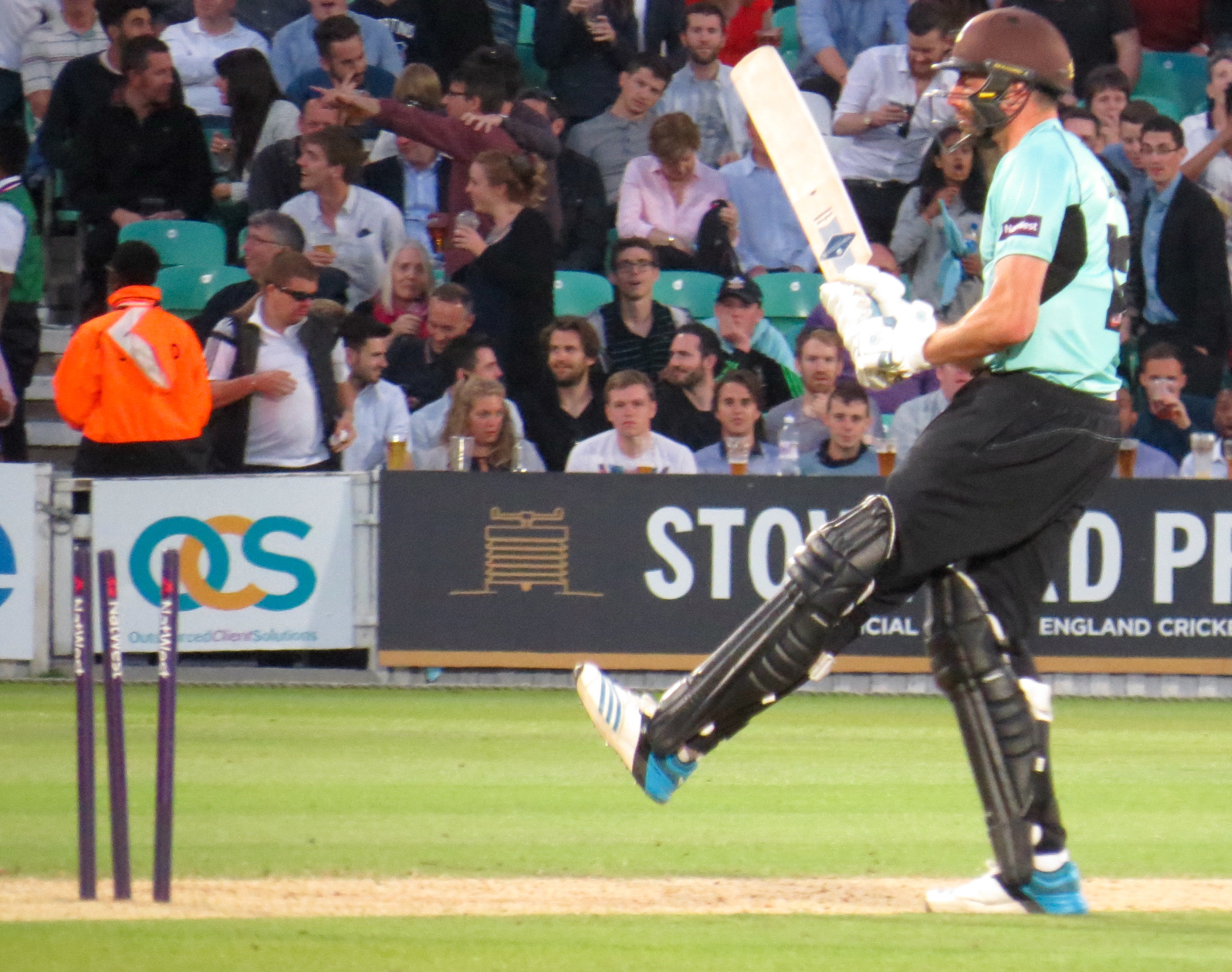 Ben Foakes came in with Surrey on 1 for 1 – a further 32 runs were put on before James Tredwell, with an athletic effort caught him from the bowling of Ivan Thomas.