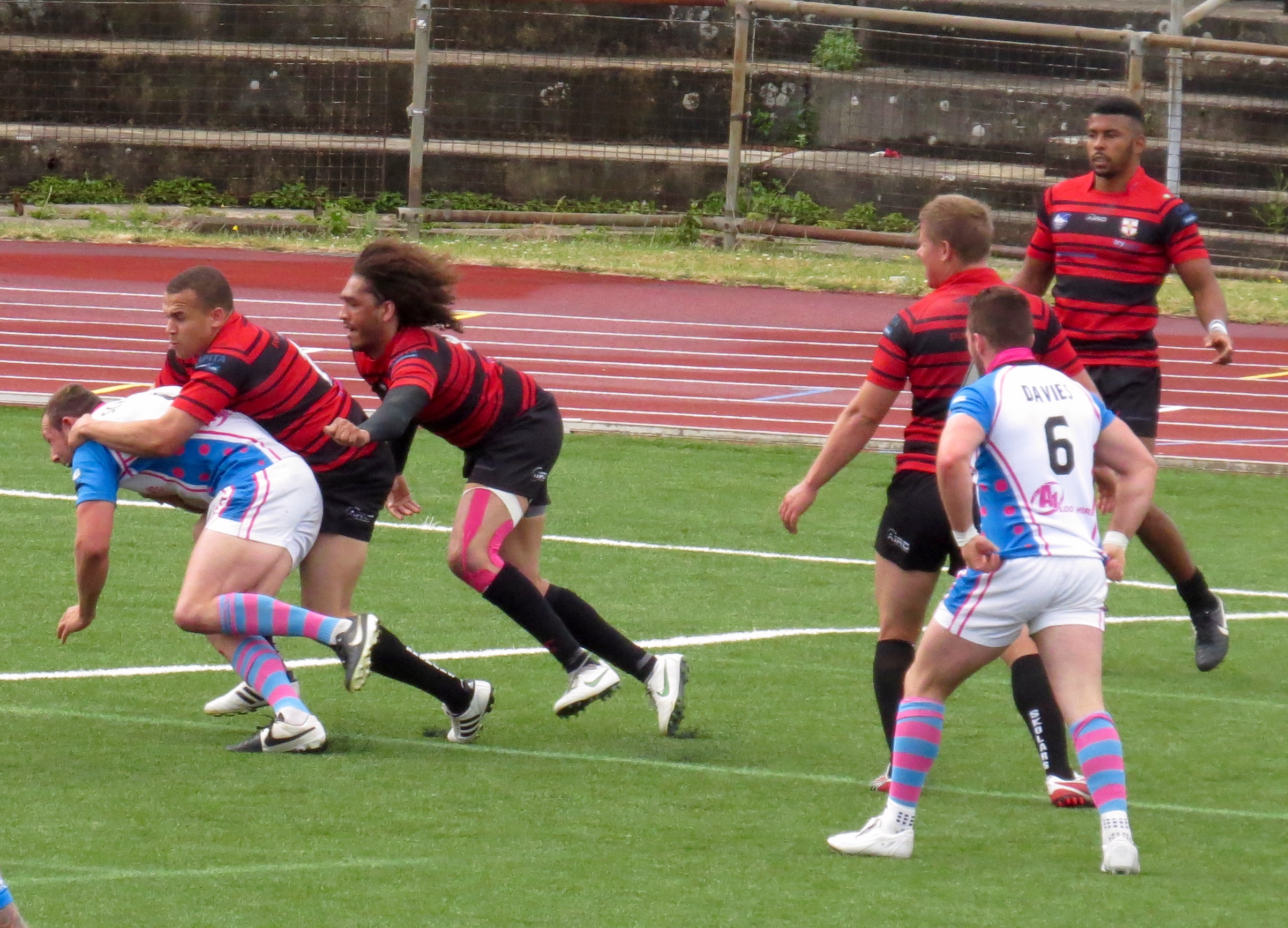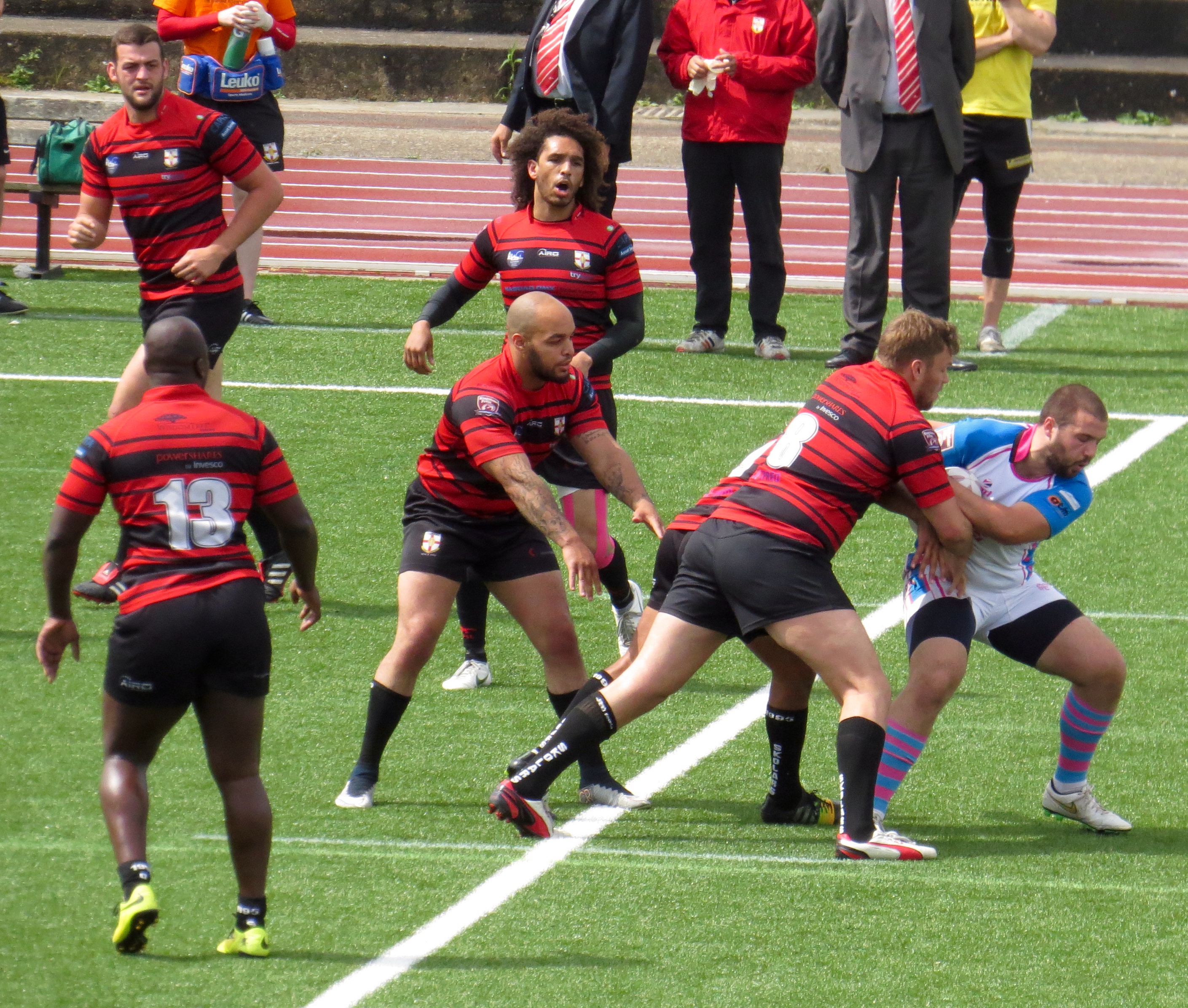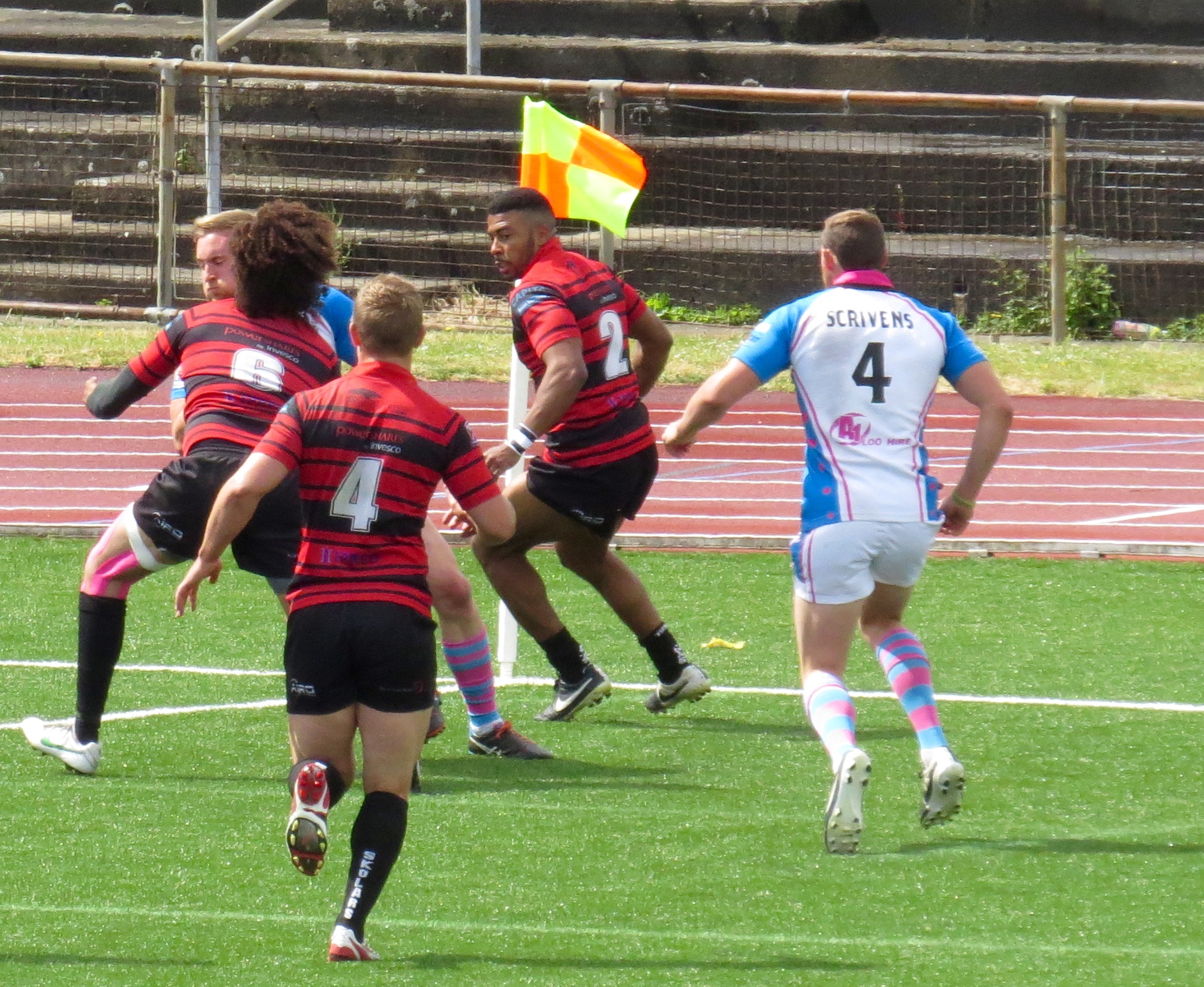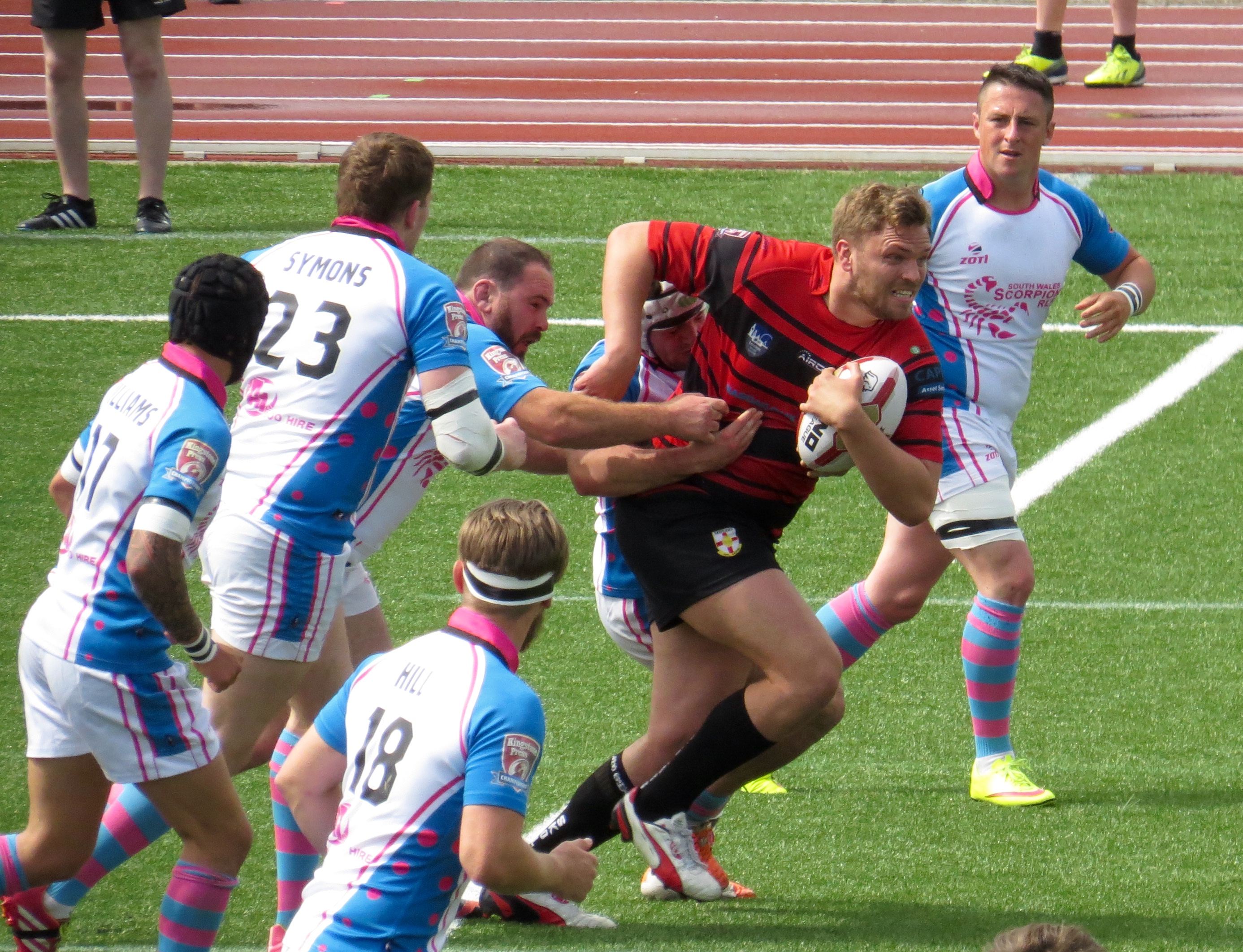 South Wales weren’t too far behind, a clever kick to the corner by Paul Emanuelli was leapt on by Yannic Parker in spite of the attentions of player/manager Jermaine Coleman.  The conversion was a tough one and missed.