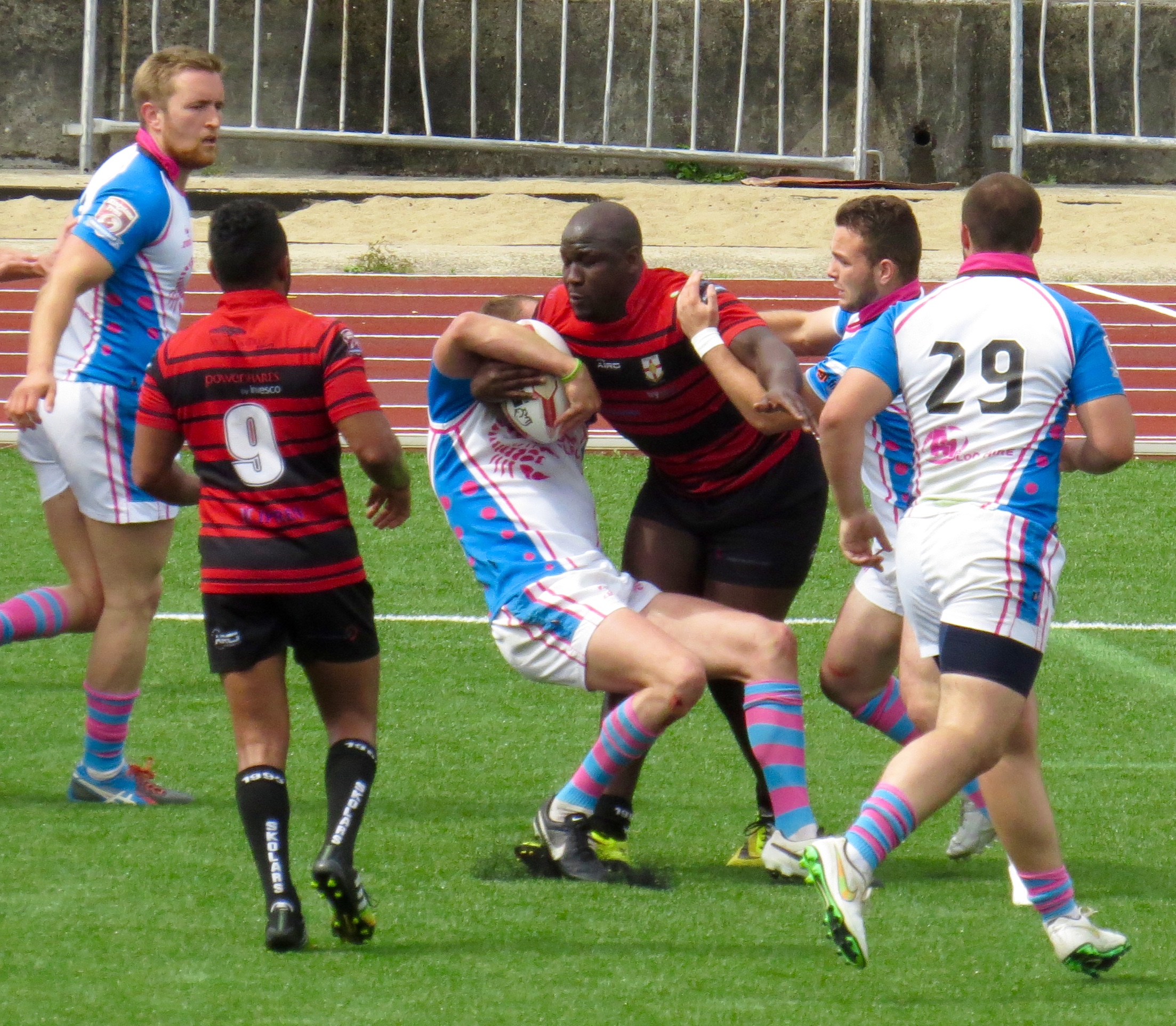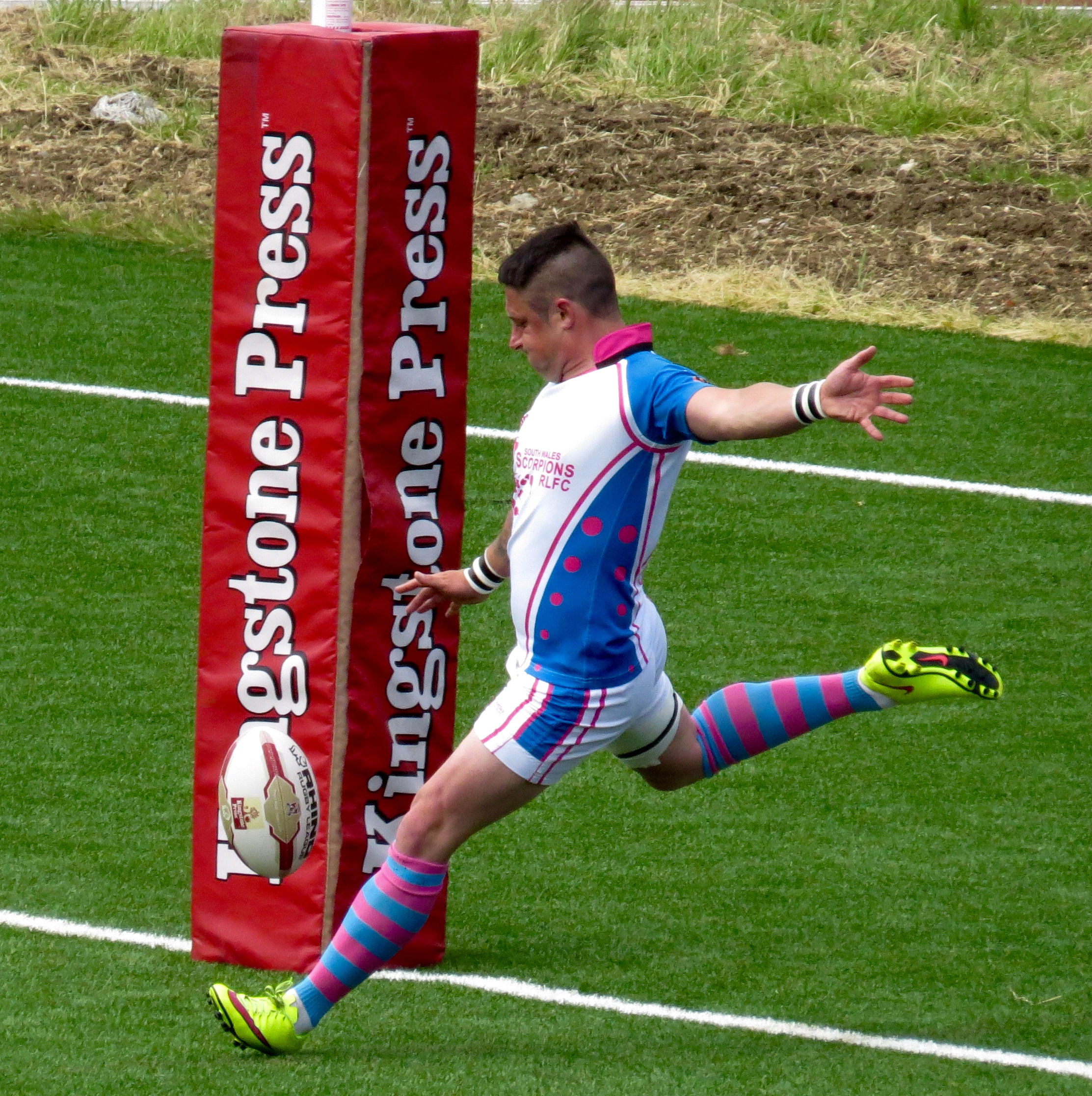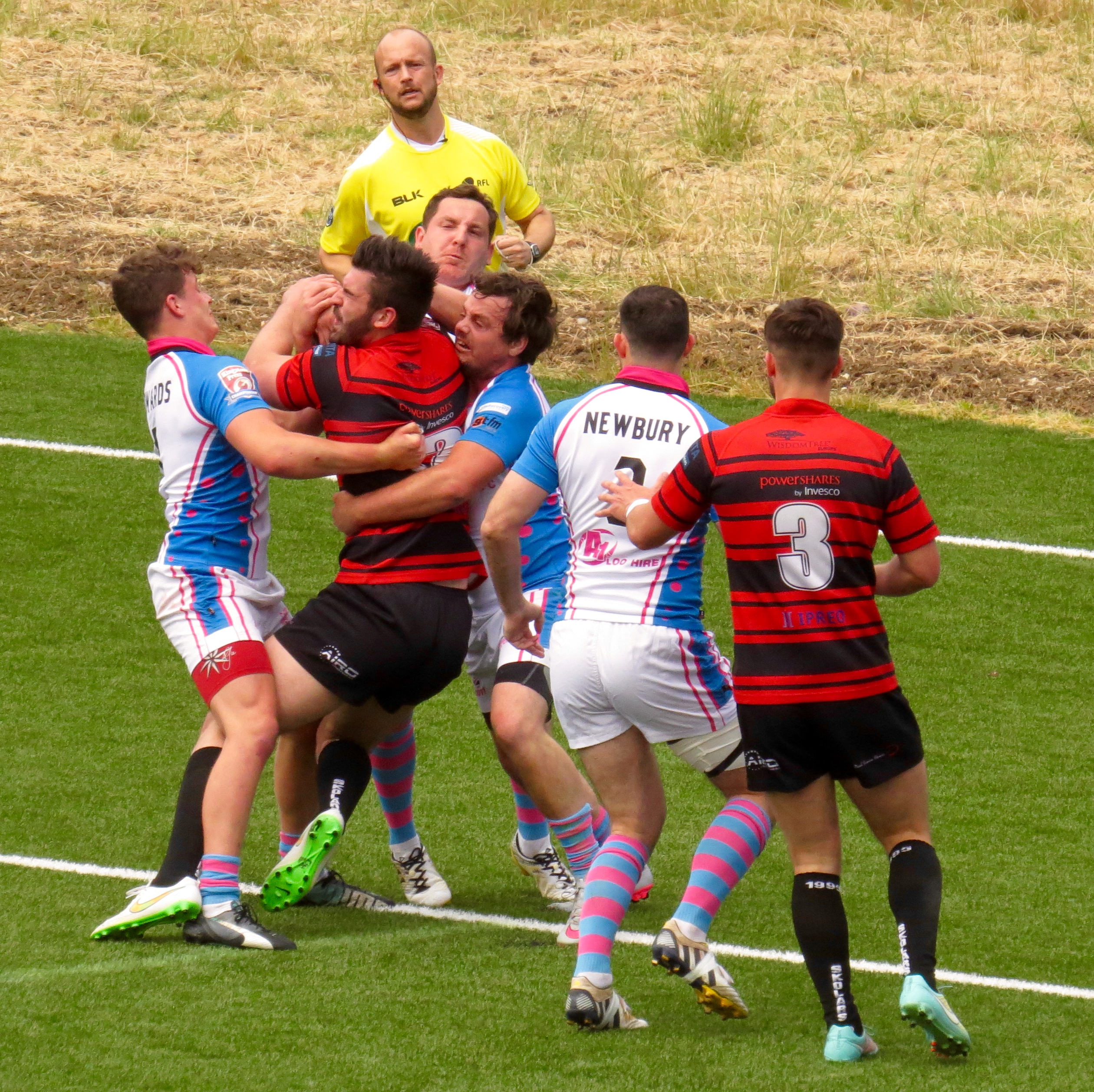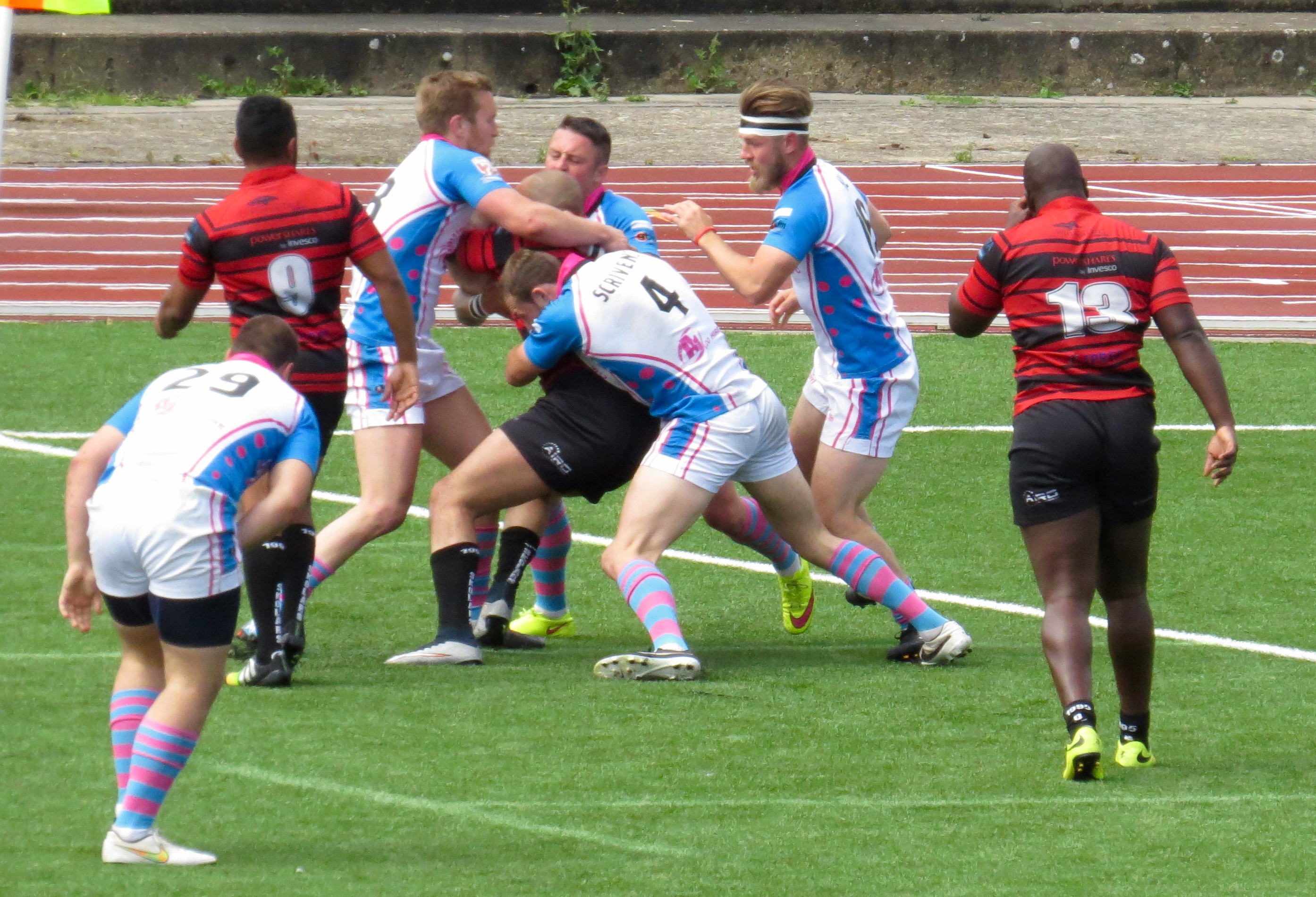 South Wales weren’t too far behind, a clever kick to the corner by Paul Emanuelli was leapt on by Yannic Parker in spite of the attentions of player/manager Jermaine Coleman.  The conversion was a tough one and missed.
