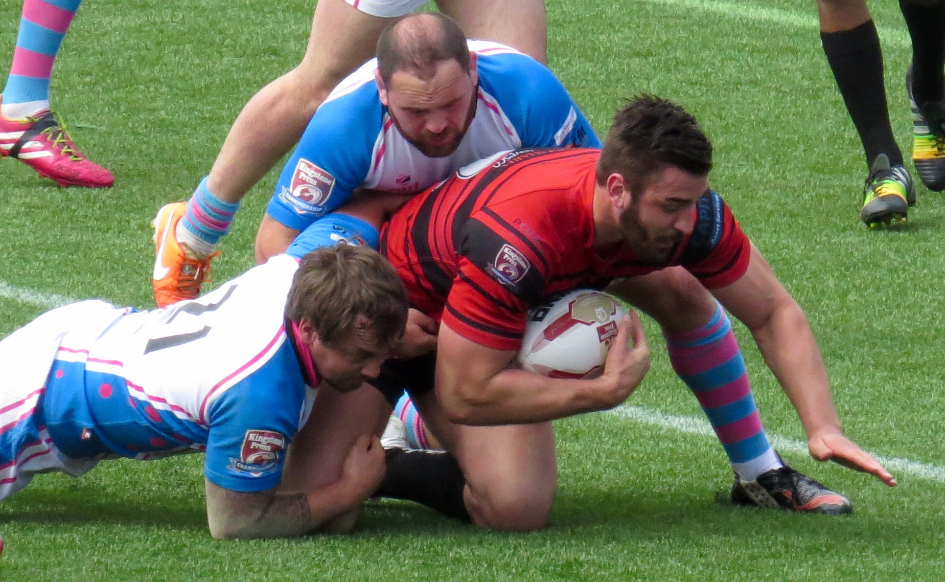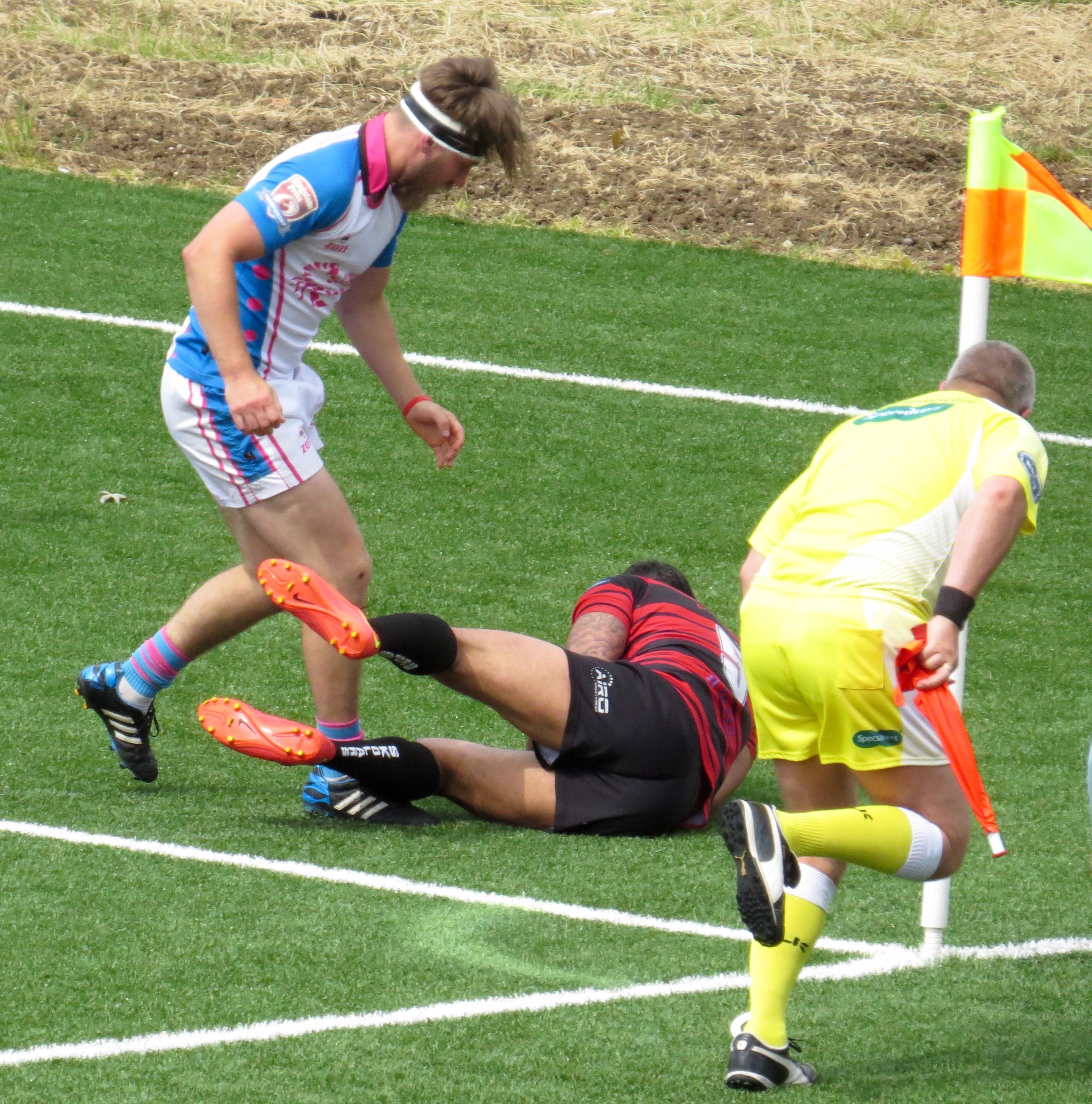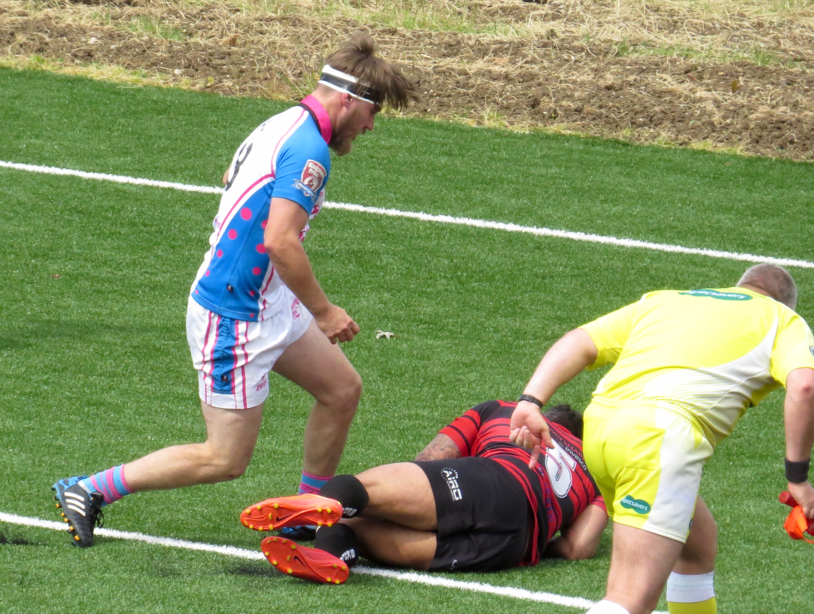 Skolars made a great break with Aaron Small racing after a kick, he was prevented from getting up after the tackle.  I’d judge that a yellow card wouldn’t have been harsh, it was to all intents and purposes a professional foul.