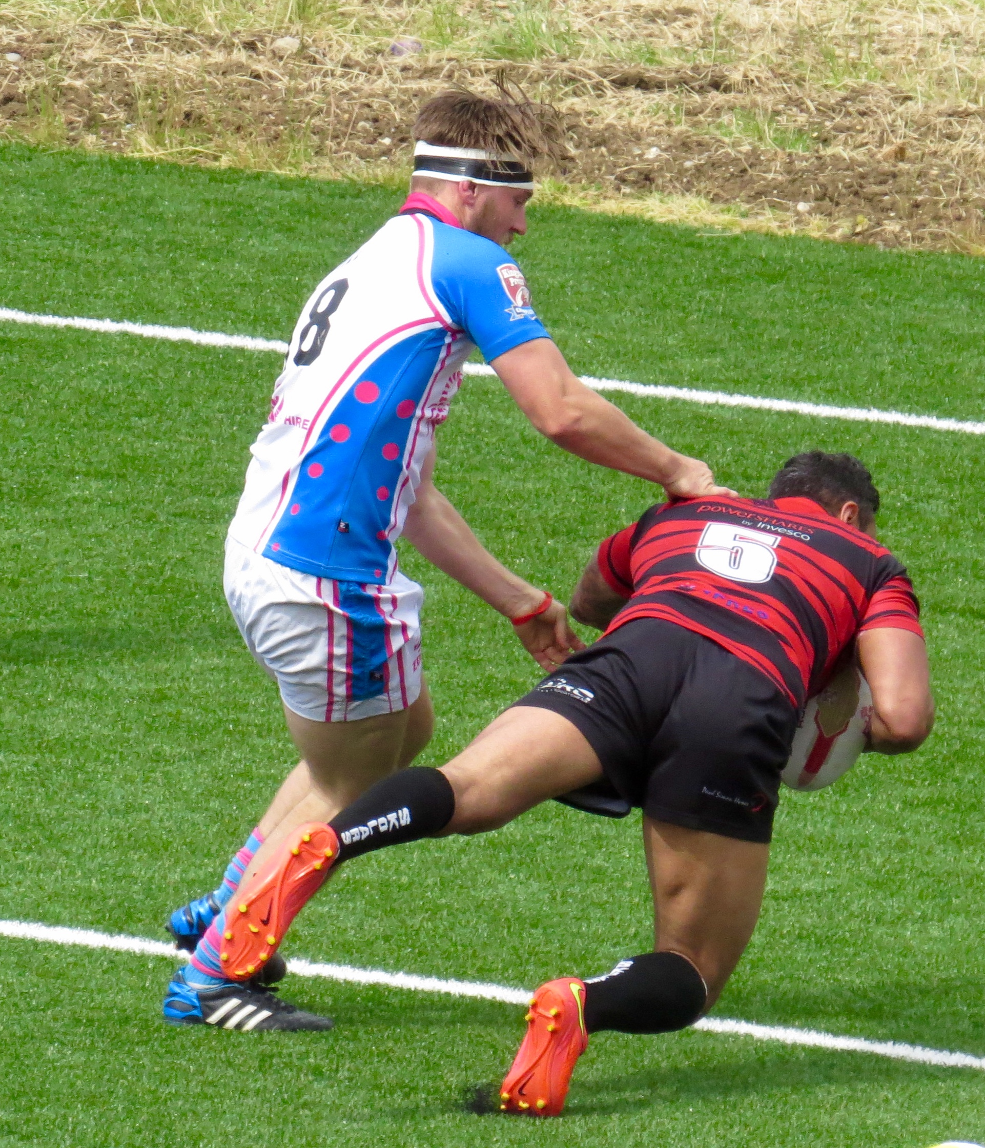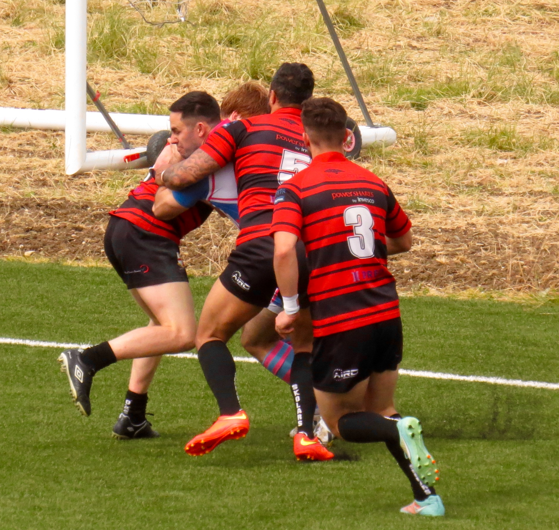 That lead swapped hands again after an error in dealing with a kick into the goal area, Tala Petelo made no mistake grounding the ball in some style.  Emanuelli again added the 2.