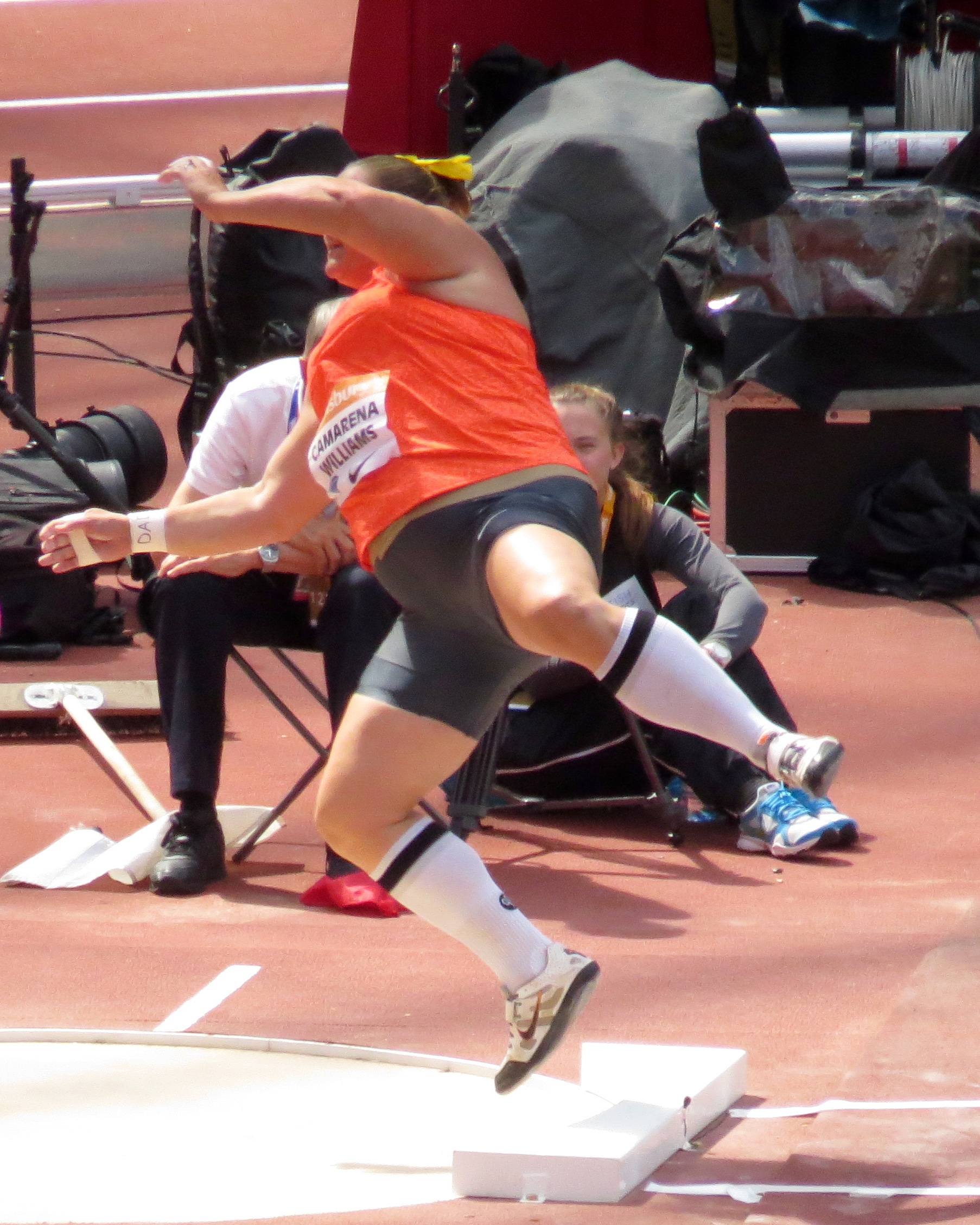 Shara Proctor broke the GB record in winning the Long Jump – There was a good atmosphere with lots if crowd involvement yet it had to keep stopping when a race happened. That was the same for all the field events. The Pole Vault, Shot Put and Javelin got next to no attention.