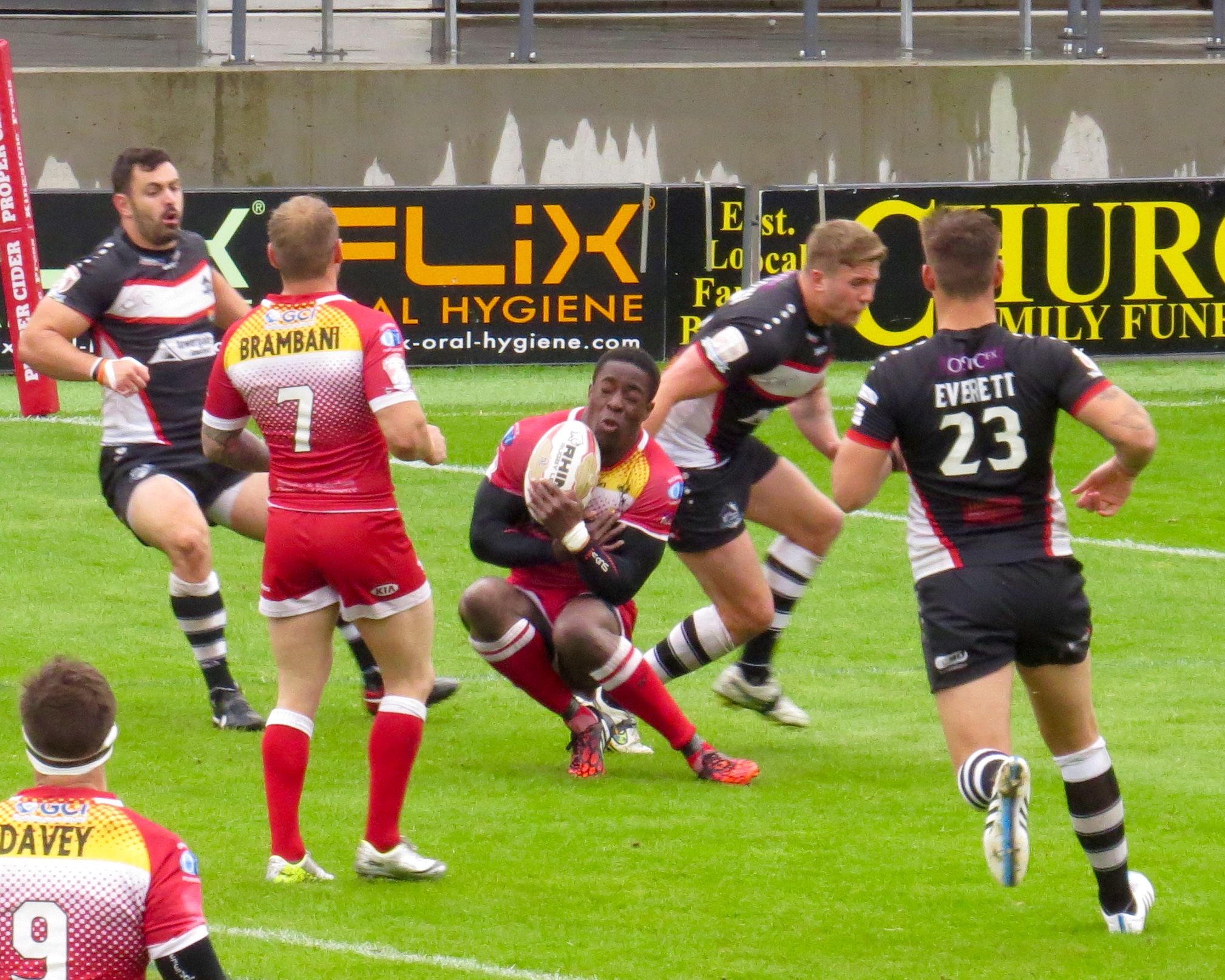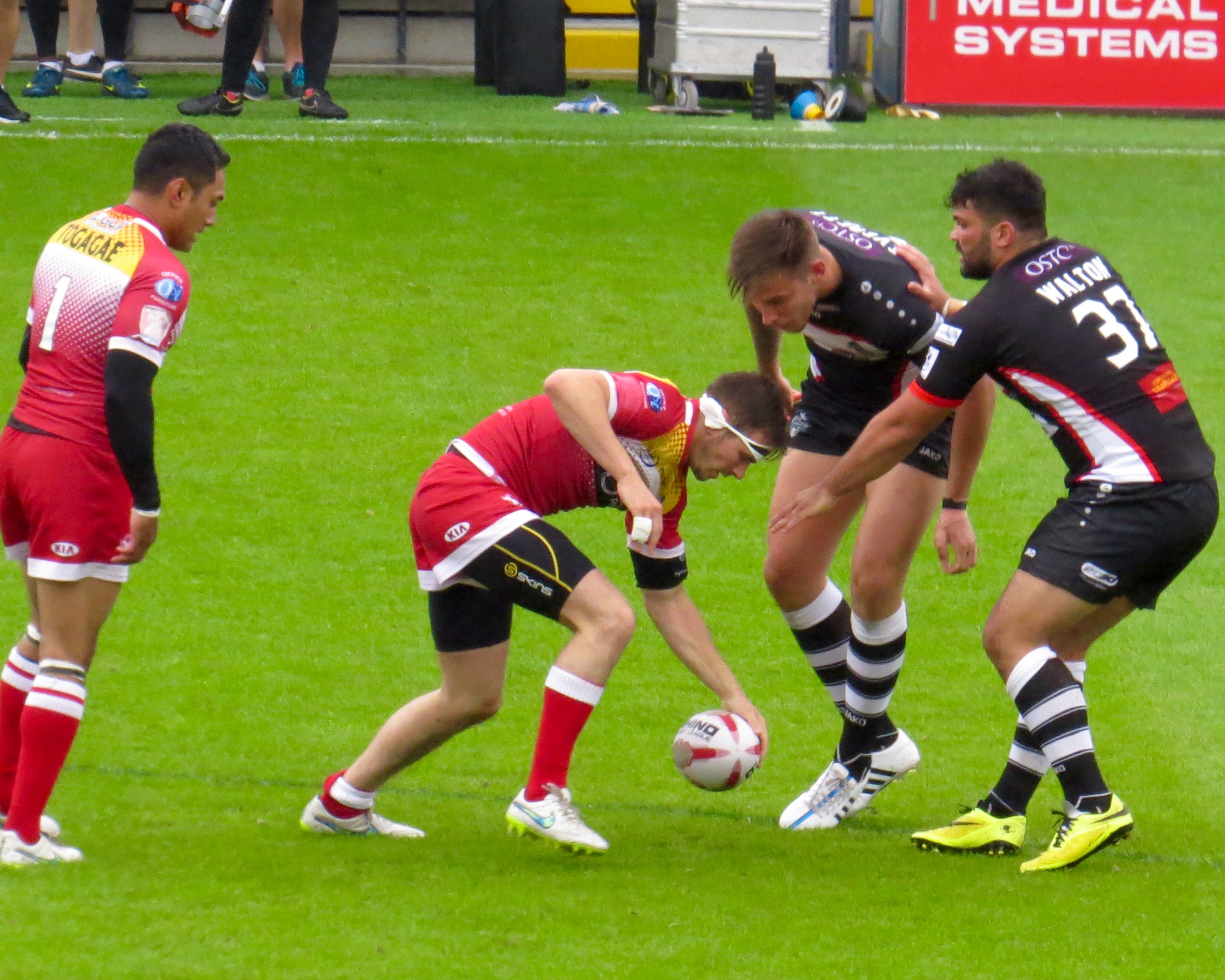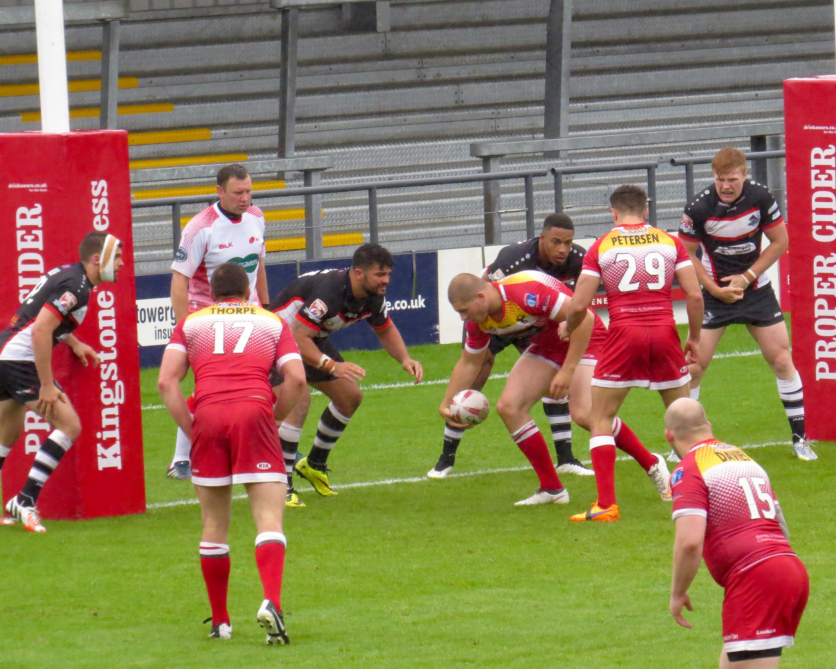 Having had a day in the sun at the Anniversary Games it was back to summer rugby – rugby league. The only snag is no one had told the weather, a cold, wet, blustery afternoon was the scene for the visit of the Sheffield Eagles to The Hive.