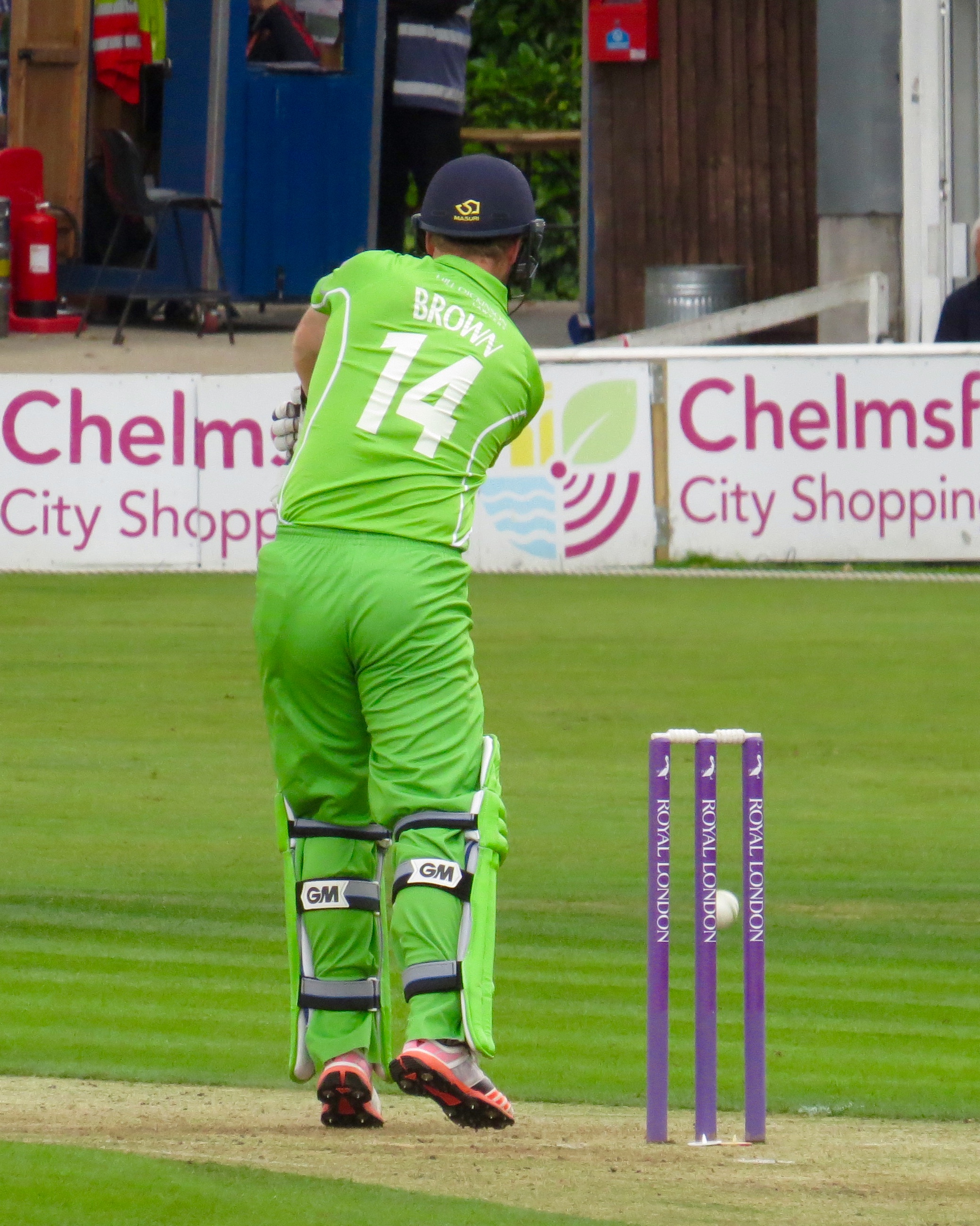 Alviro Pieterson joined Karl Brown at the crease – They put on 40 runs before Brown was given out LBW from the bowling of Graham Napier, he’d contributed 21 runs to the total.