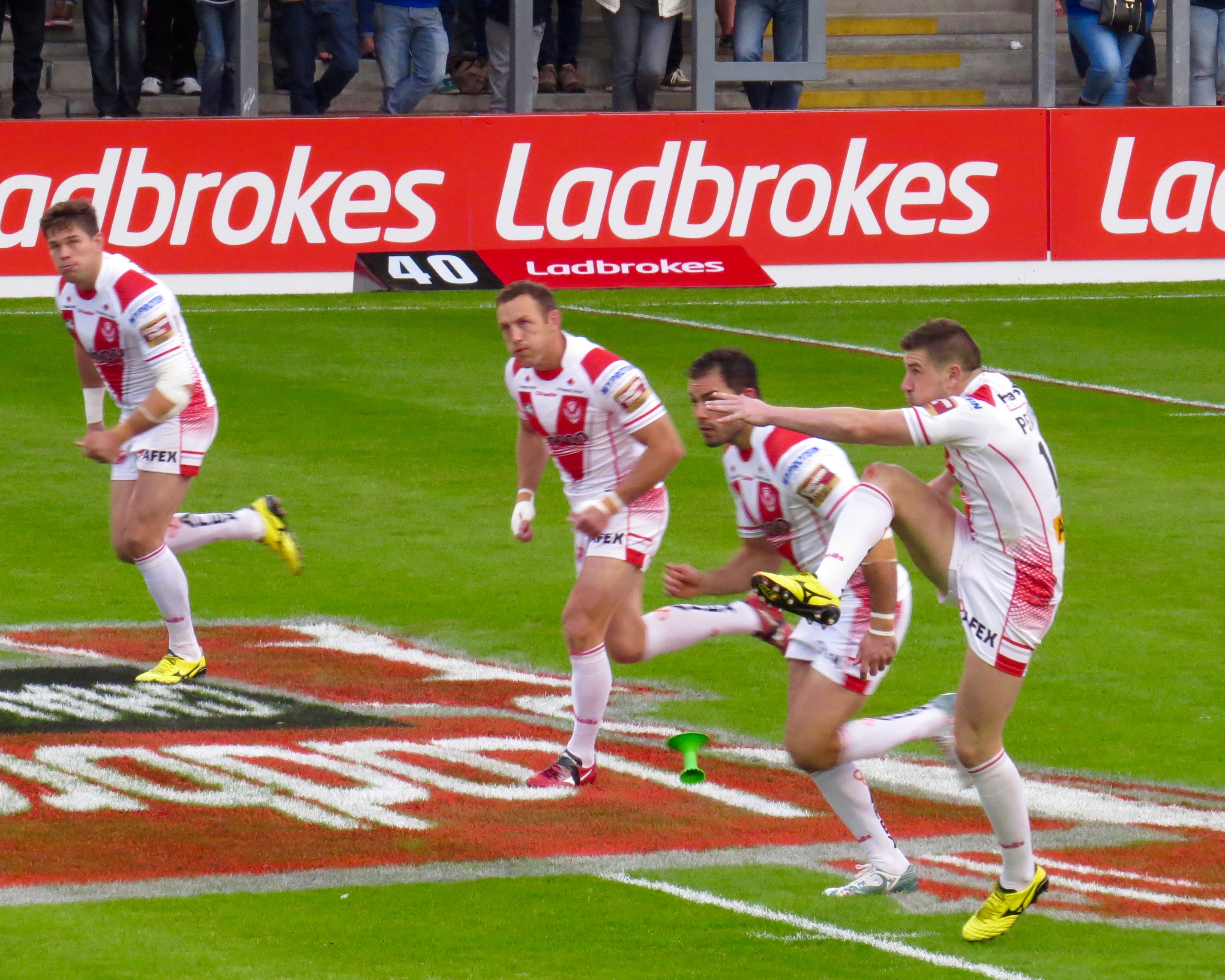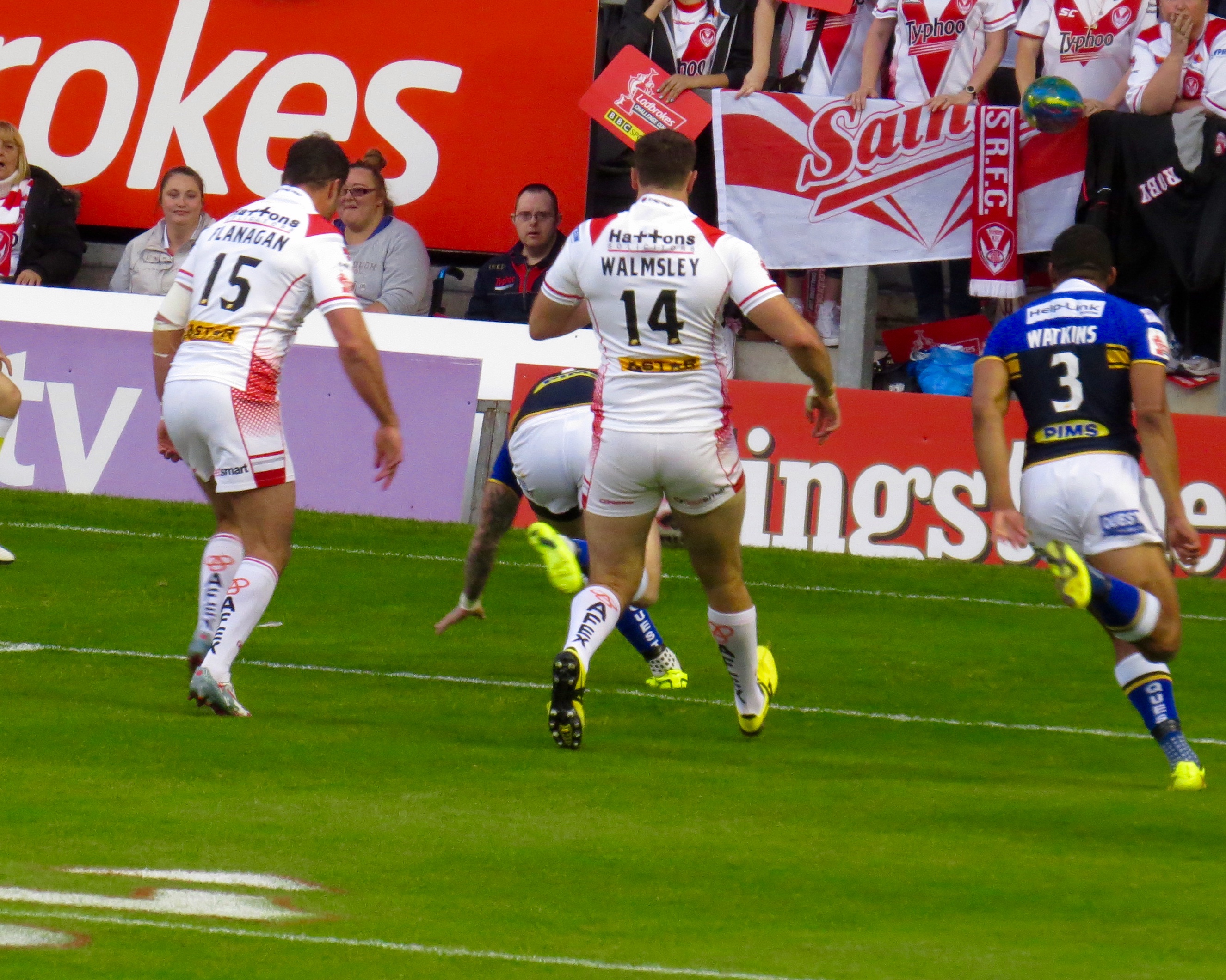 Leeds made territory on every set whereas Saints seemed to be struggling to get out go their own half. It felt that this could well be a rout!