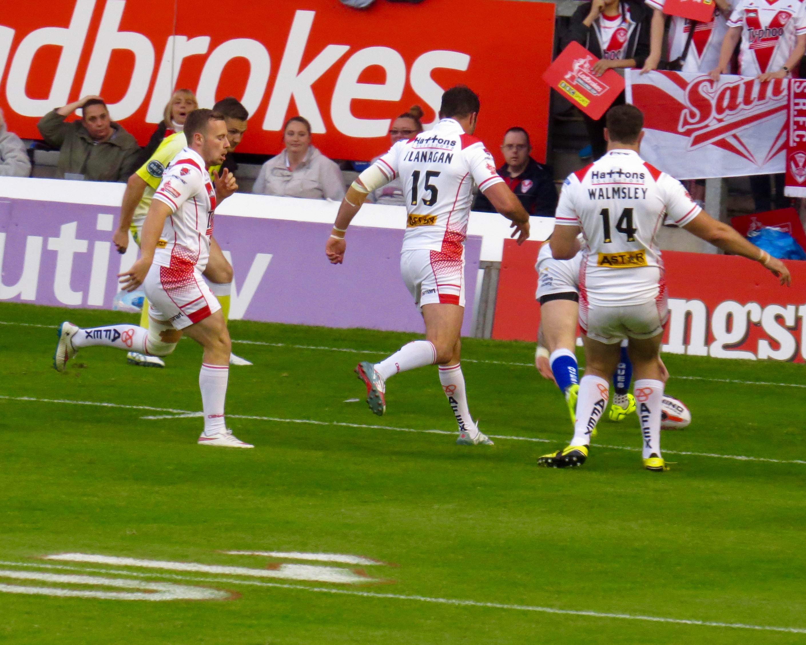 Saints decided to turn up as the 2nd half progressed and made several forays into the Leeds half, 2 of those saw tries scored. Firstly by Andre Savelio who caught the ball after a very lucky bounce from a James Roby kick.