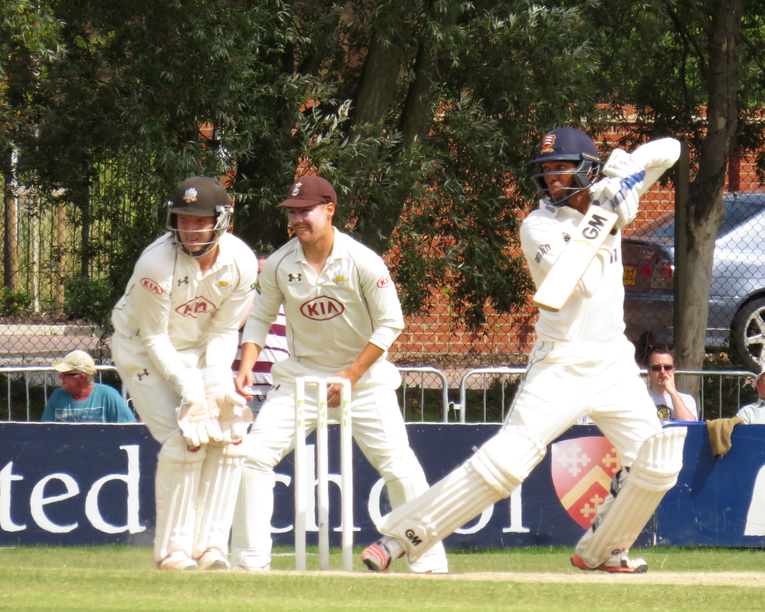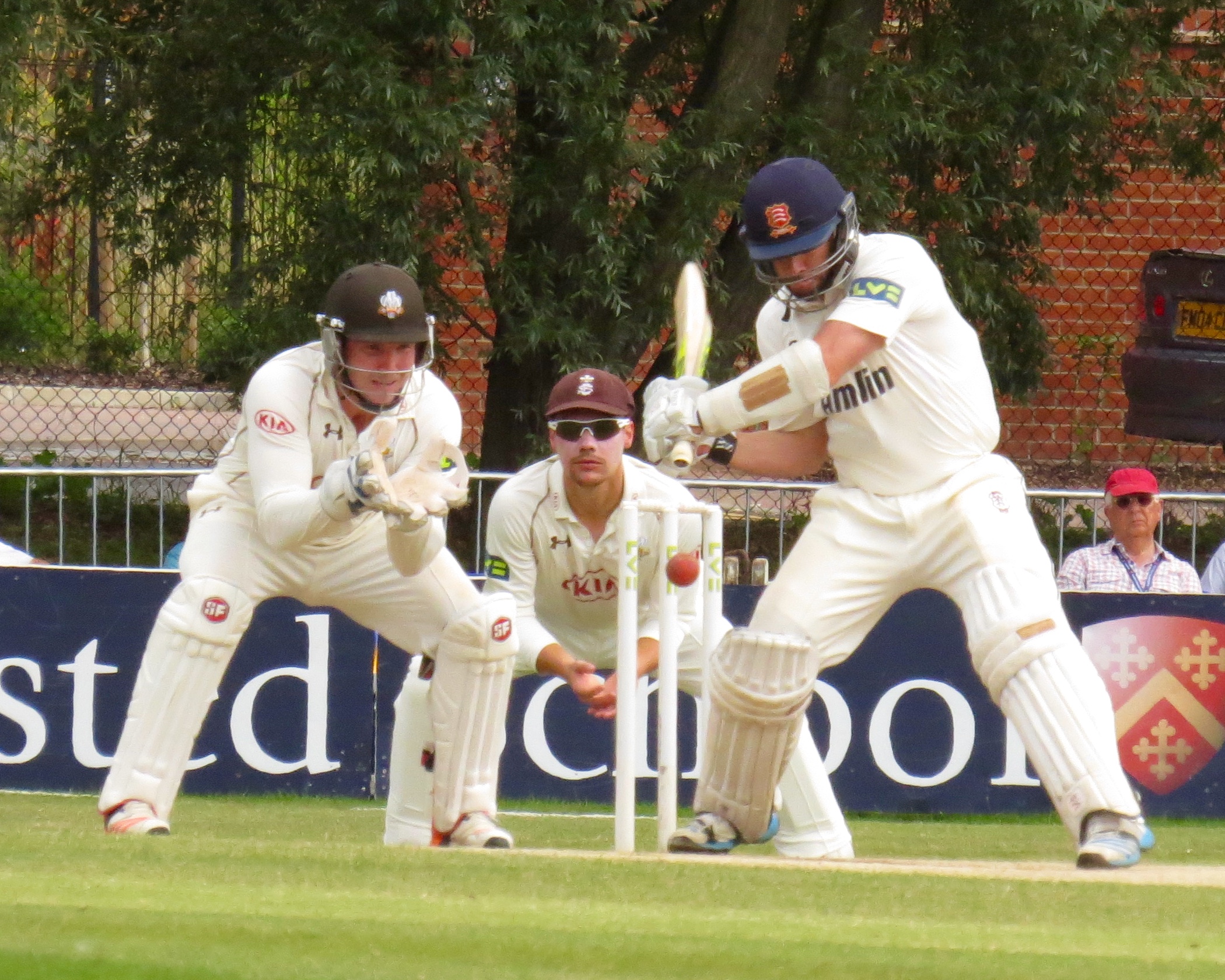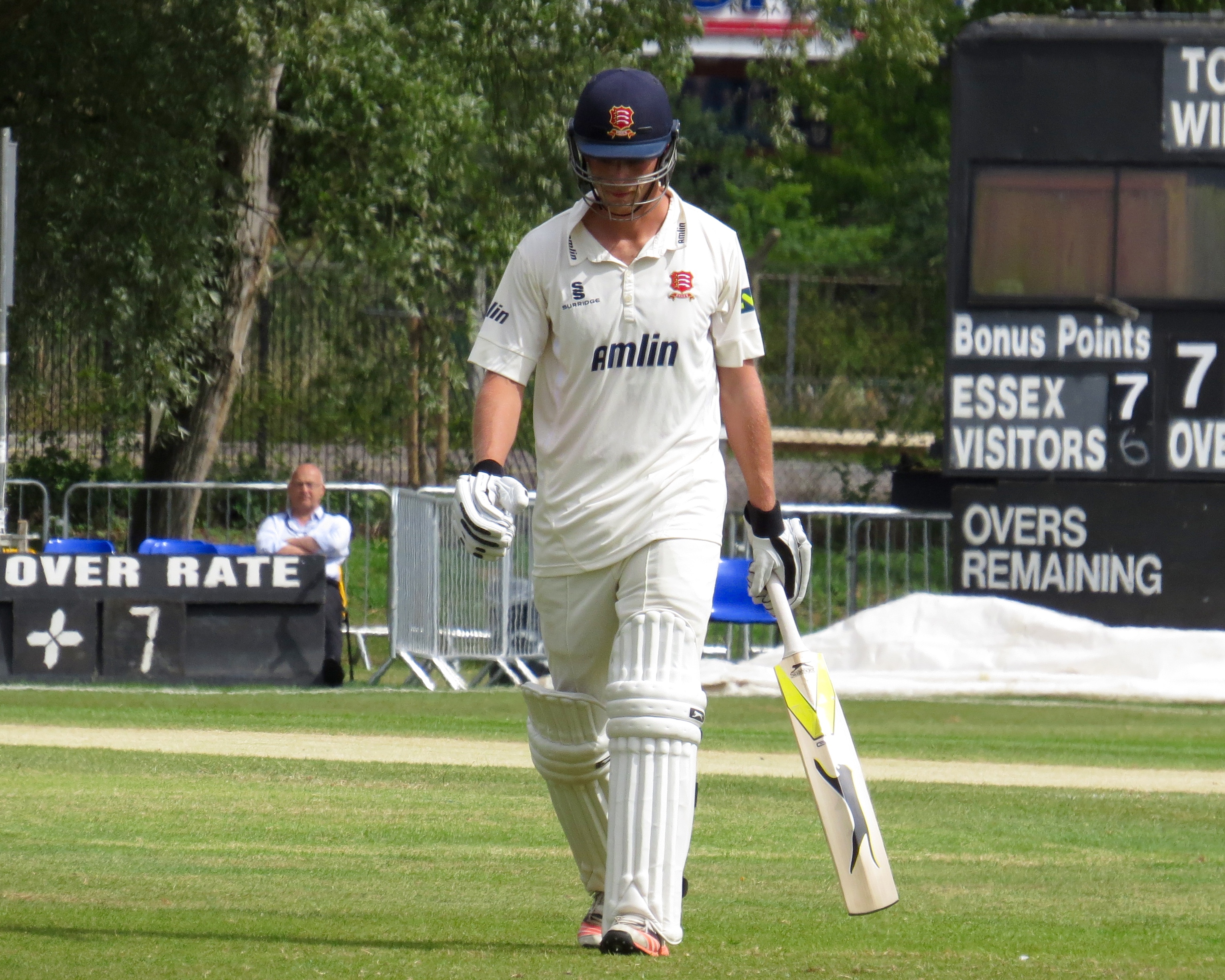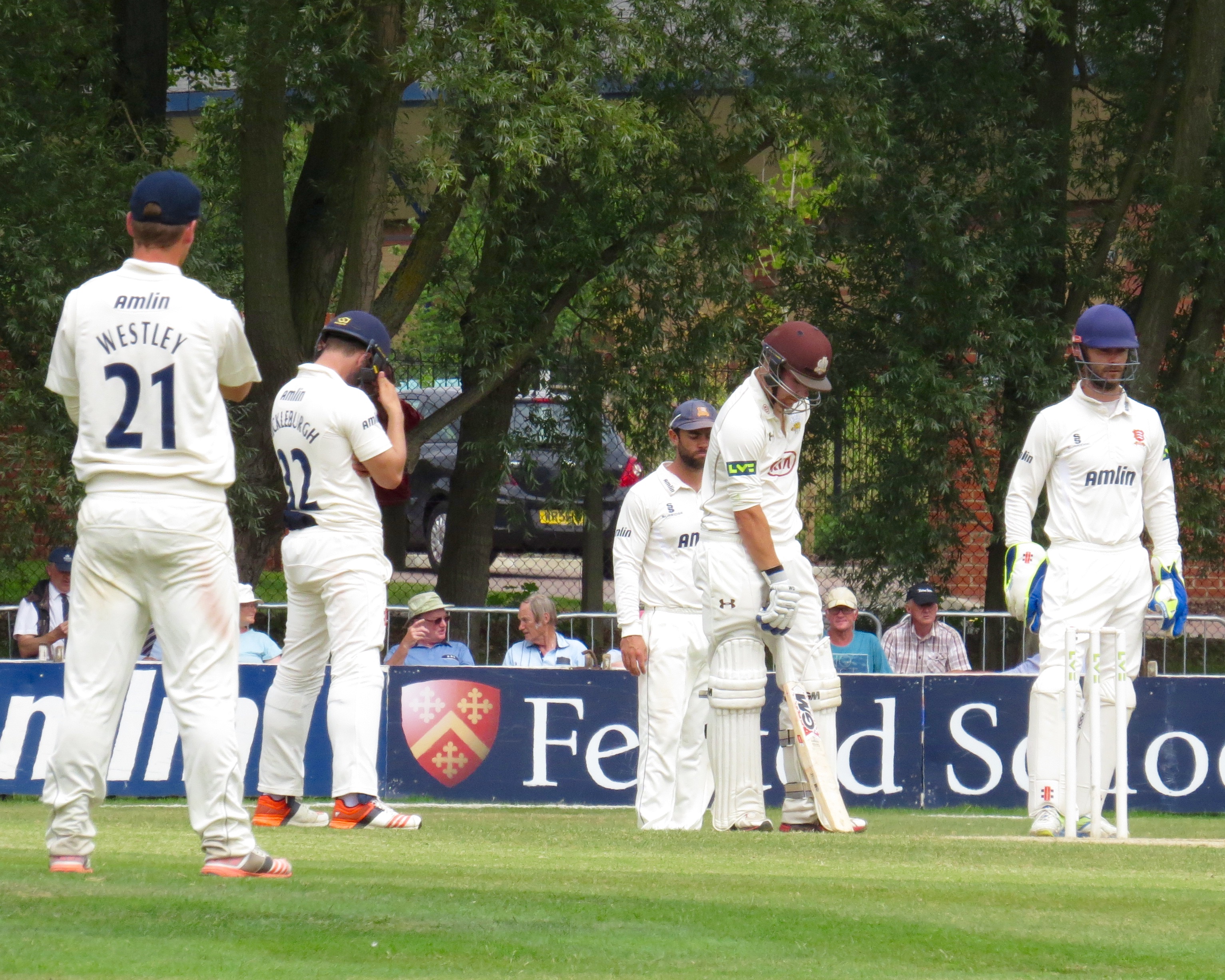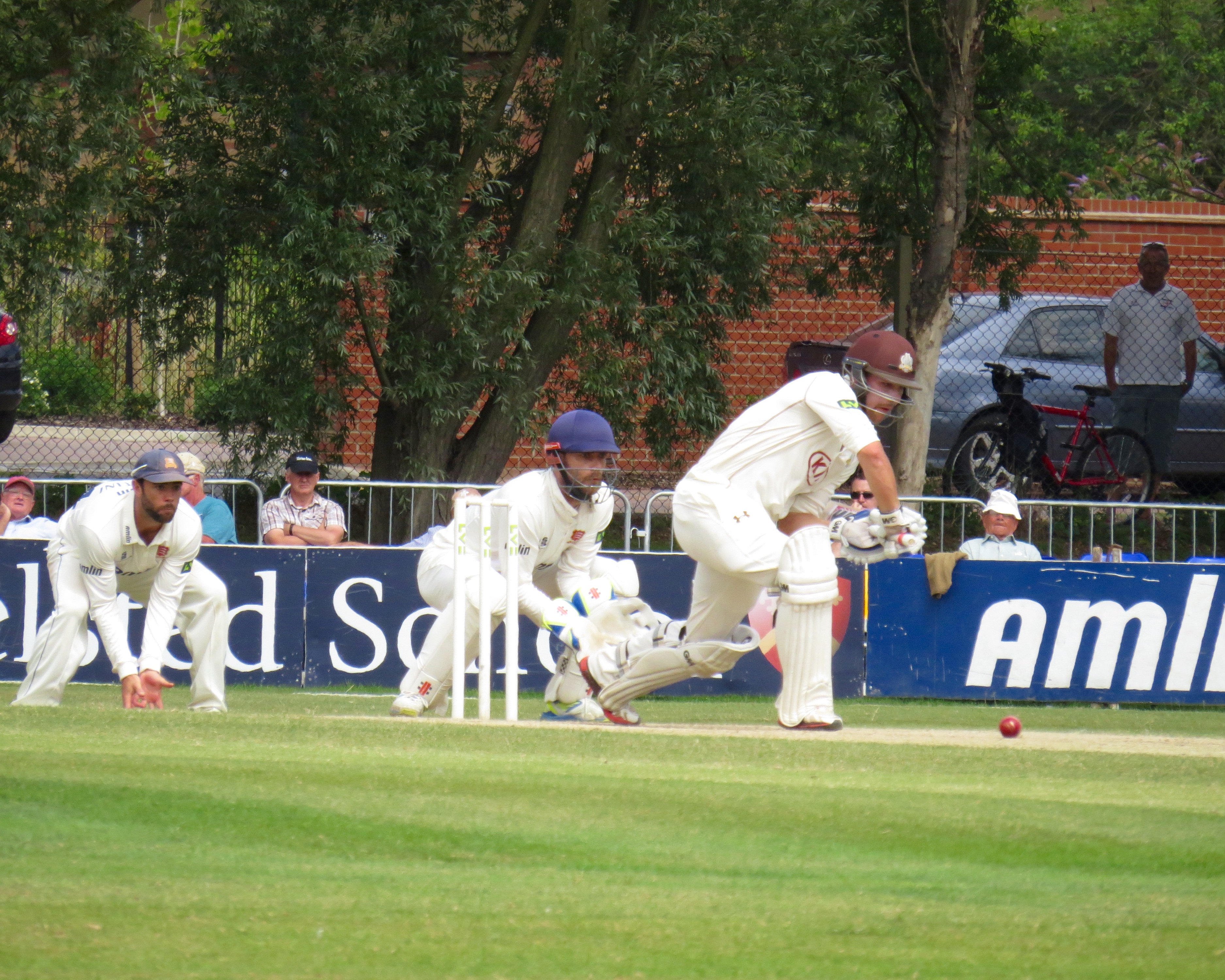 I’m beginning to think I’m bad luck for Tom Westley – he was out having not added a single run by a catch that was almost a comedy catch – It seemed to bounce off all sorts of things before landing in Jason Roy’s hands from the bowling of Surrey captain Gareth Batty.