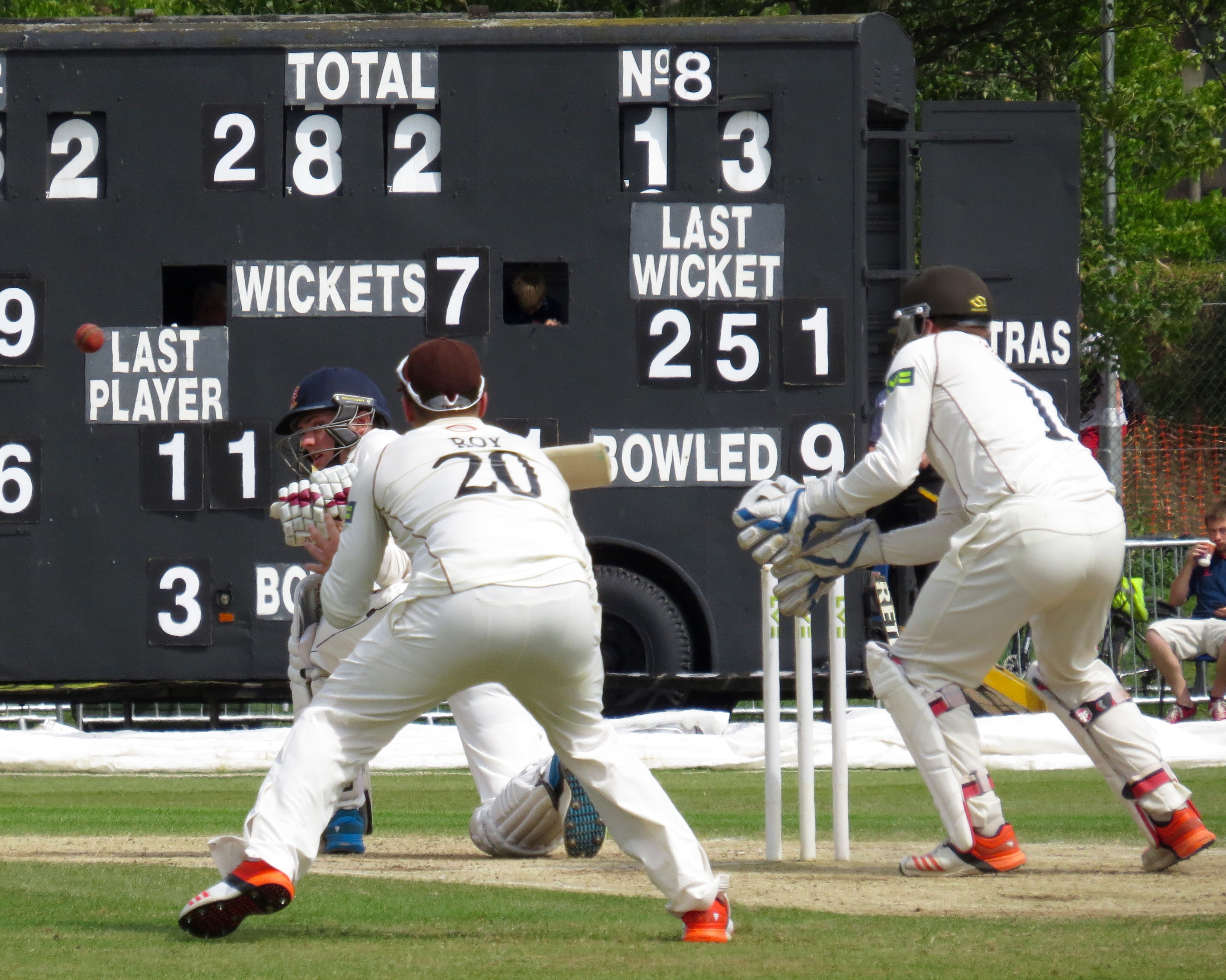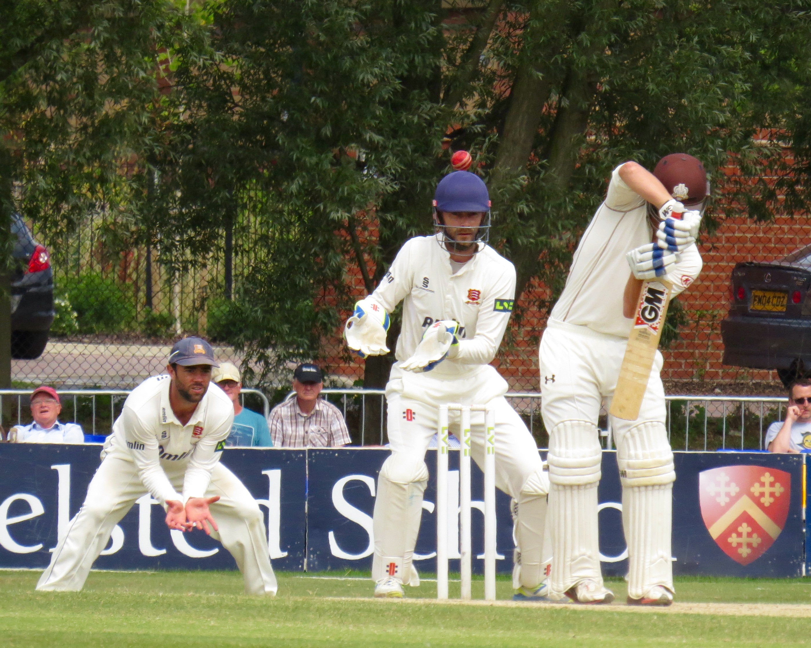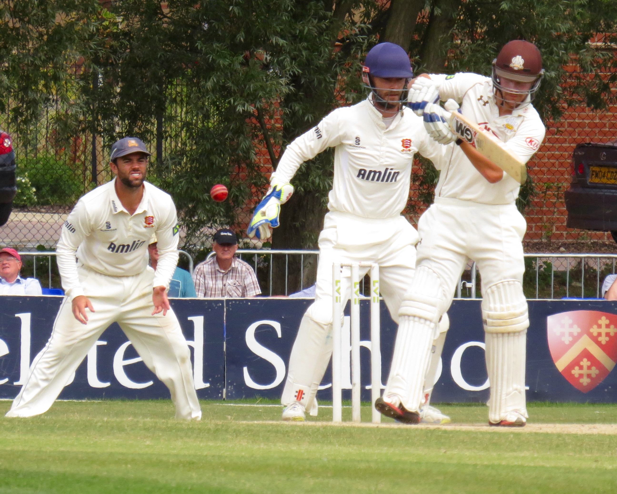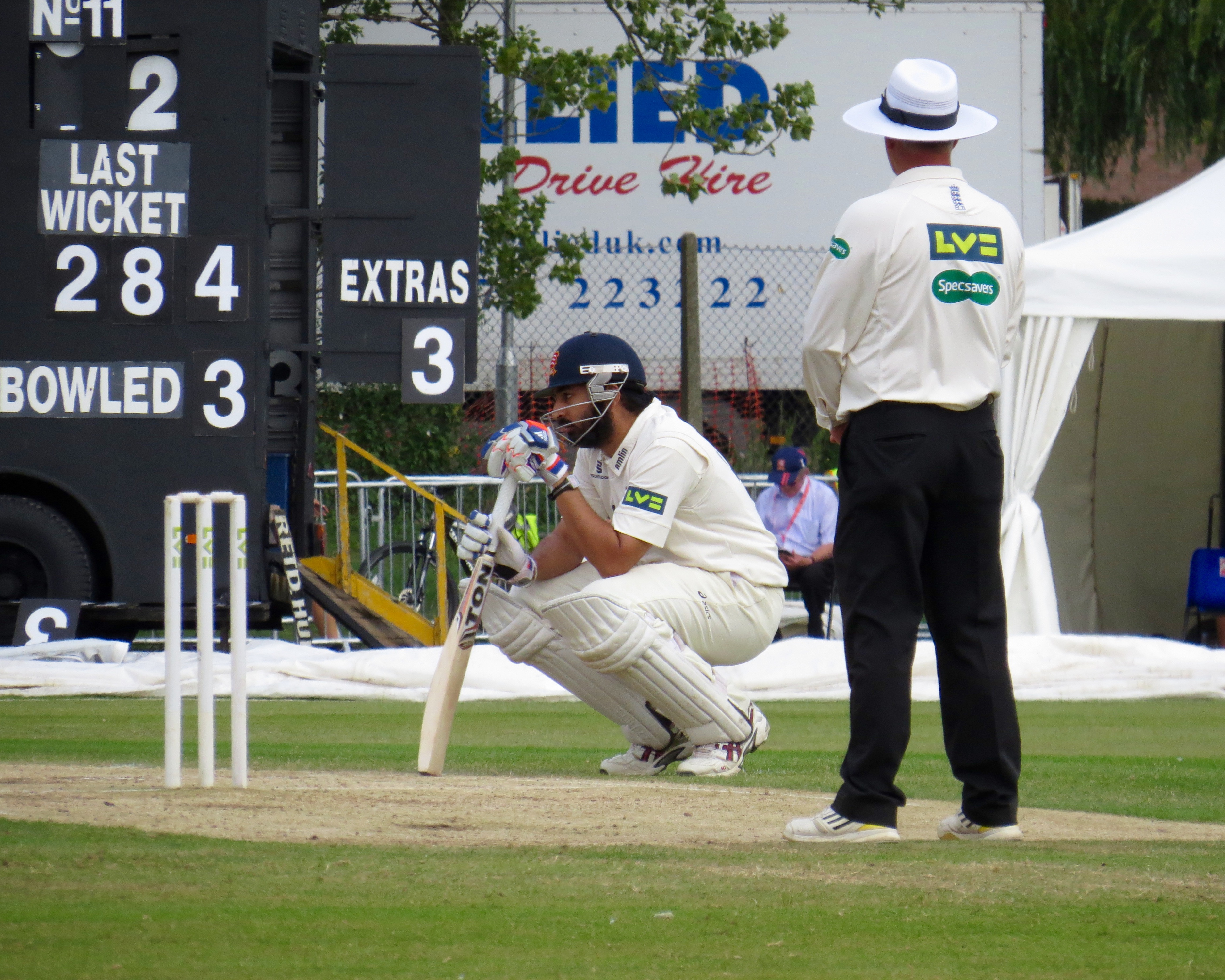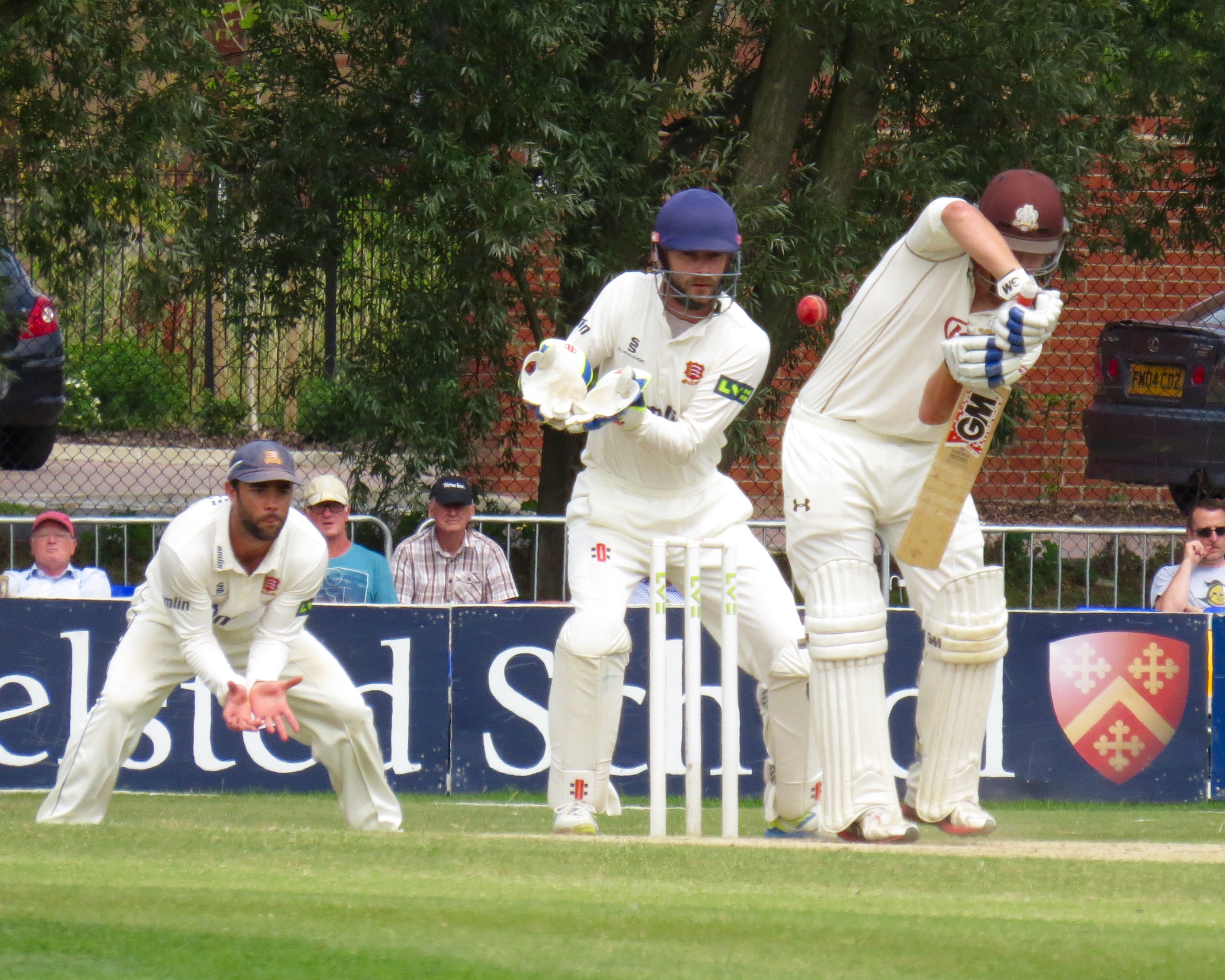 I’m beginning to think I’m bad luck for Tom Westley – he was out having not added a single run by a catch that was almost a comedy catch – It seemed to bounce off all sorts of things before landing in Jason Roy’s hands from the bowling of Surrey captain Gareth Batty.
