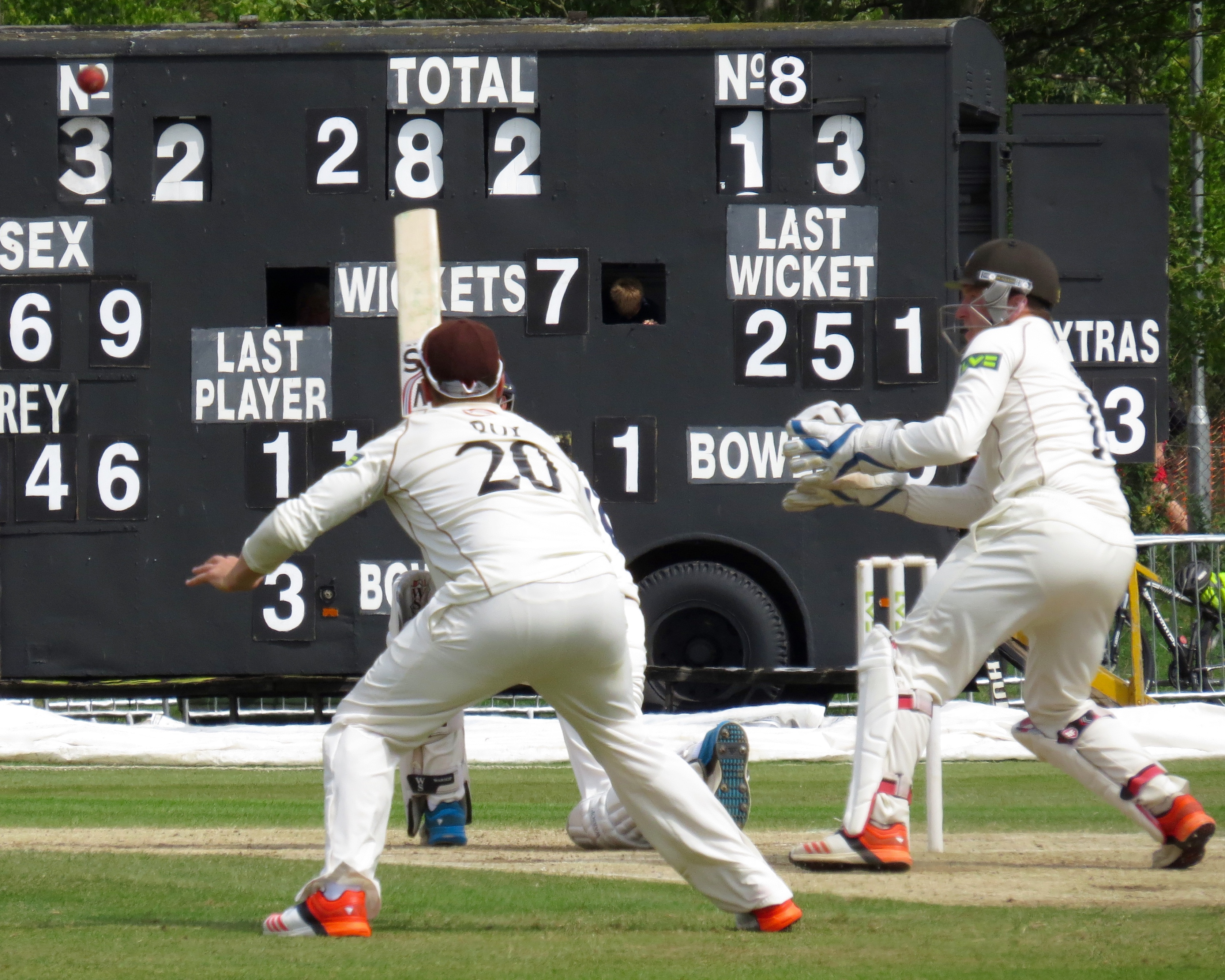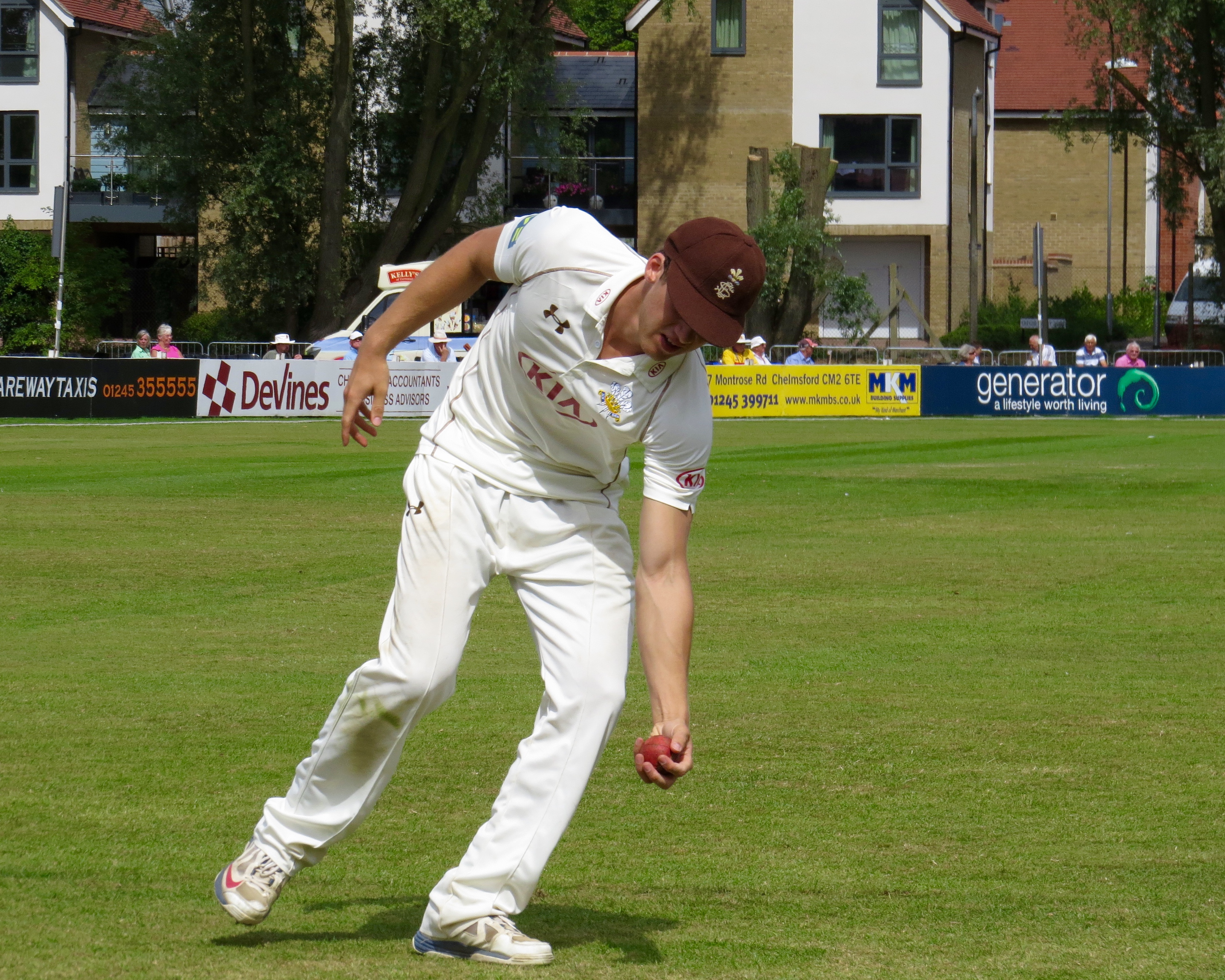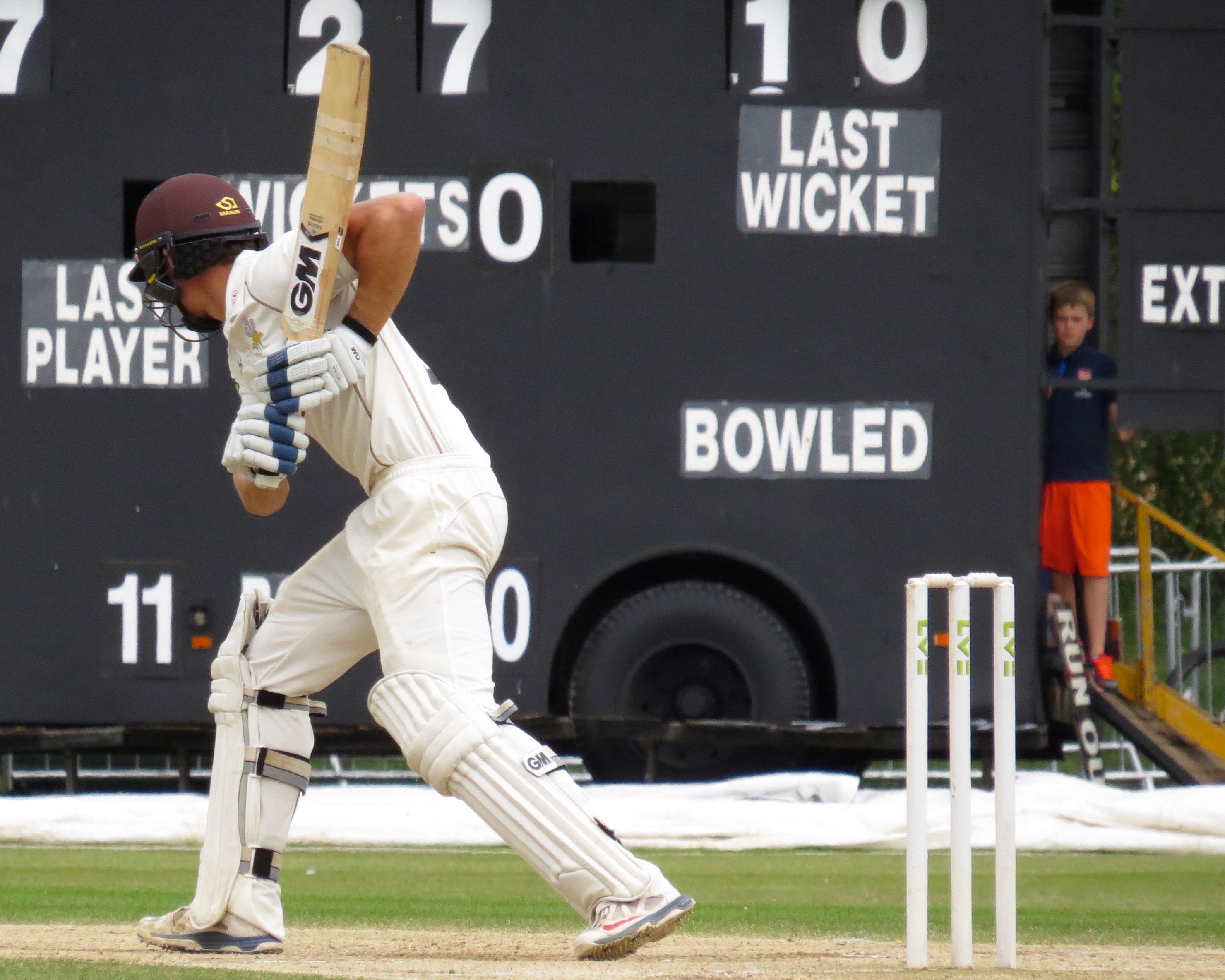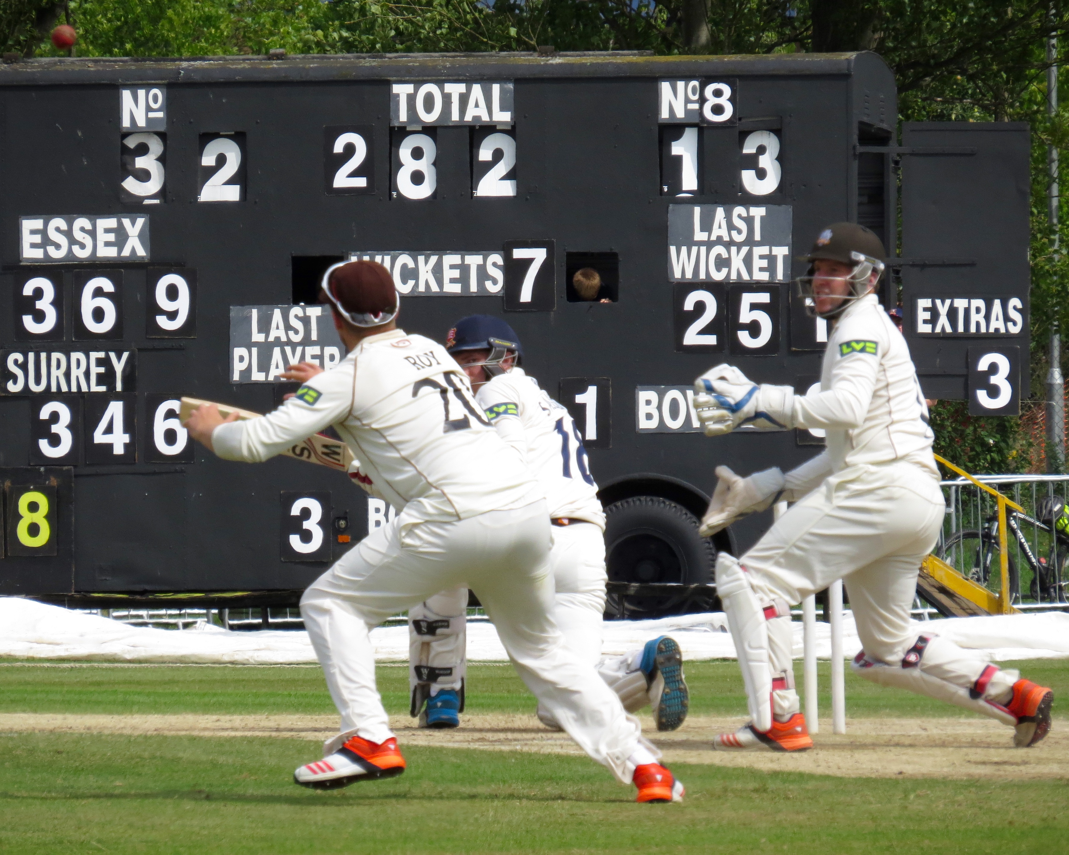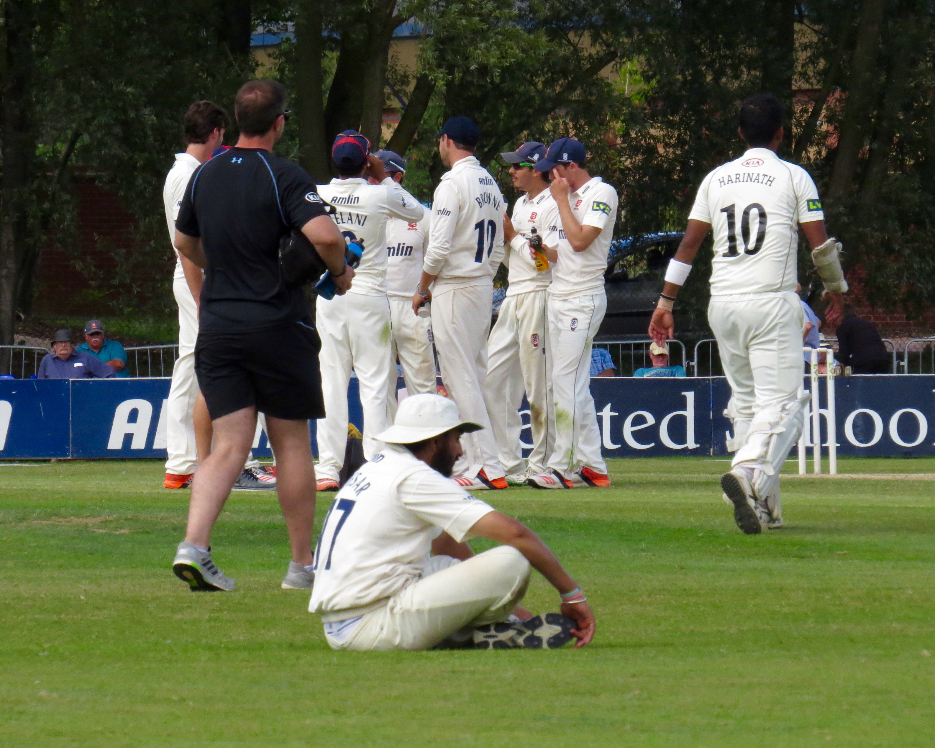 I’m beginning to think I’m bad luck for Tom Westley – he was out having not added a single run by a catch that was almost a comedy catch – It seemed to bounce off all sorts of things before landing in Jason Roy’s hands from the bowling of Surrey captain Gareth Batty.