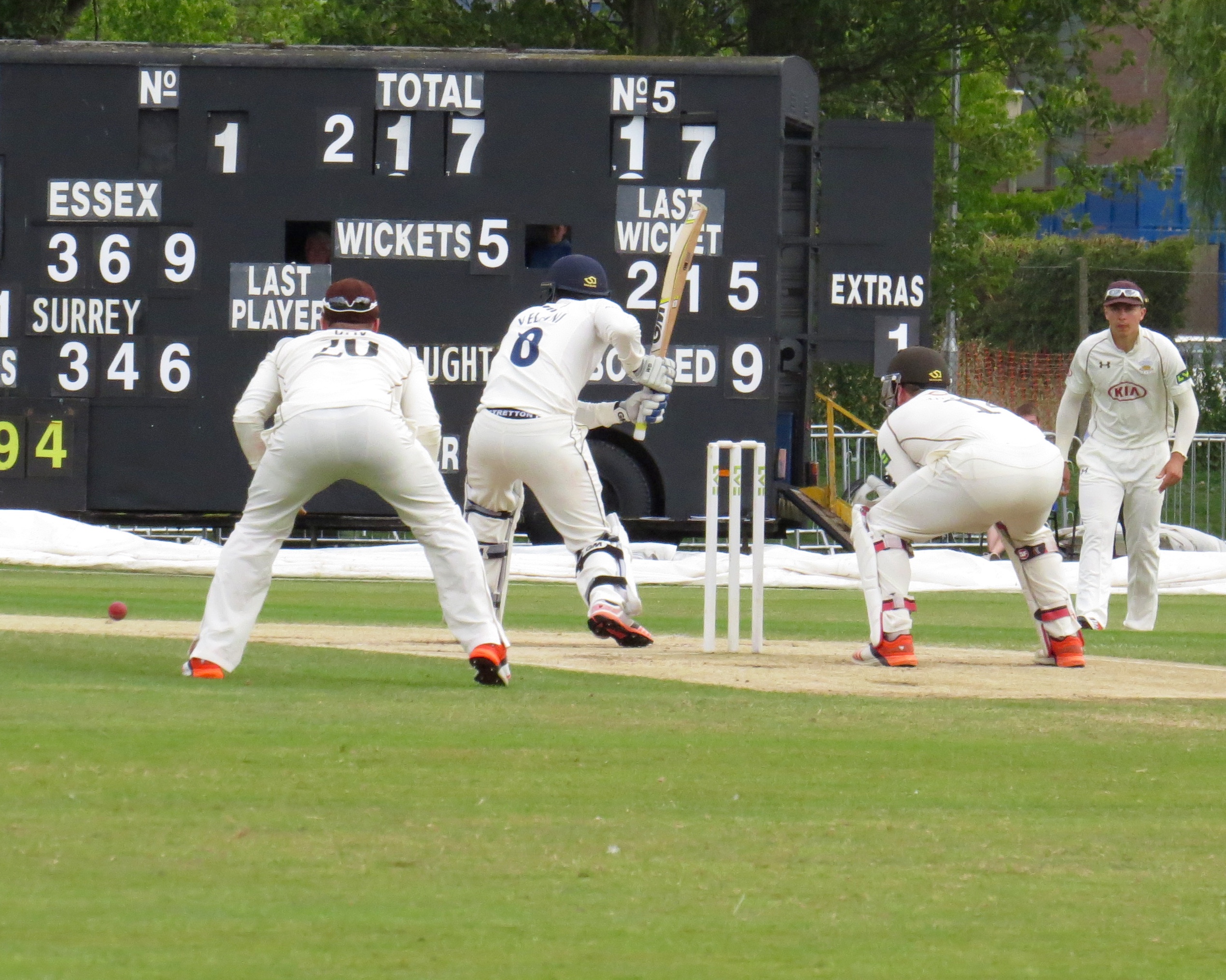 Essex had scored a decent 369 in their first innings with Nick Browne opening and scoring 114, Mark Pettini went in to bat at number six and scored a huge 134. Zafar Ansari was the pick of the Surrey bowler taking 5 for 108.