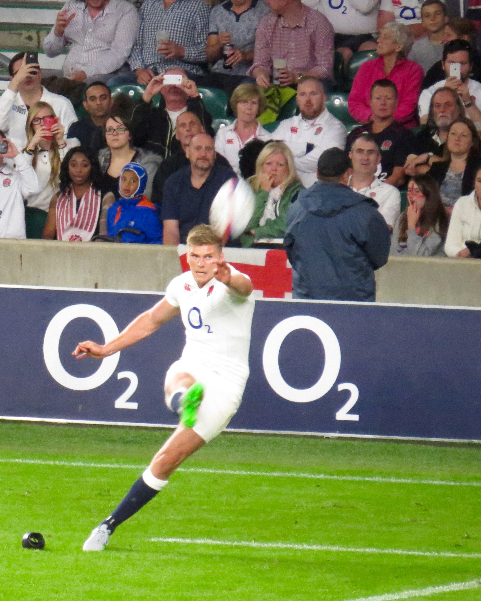That meant the ladies missed a Beautifully worked try for England Henry Slade made a neat pass to Alex Goode who showed his number 10 credentials with a neat chip kick for Jonny May to take. May caught the ball and ran into space to score, cue much shouting and jumping out of seats! Owen Farrell converted another kick from the sideline.