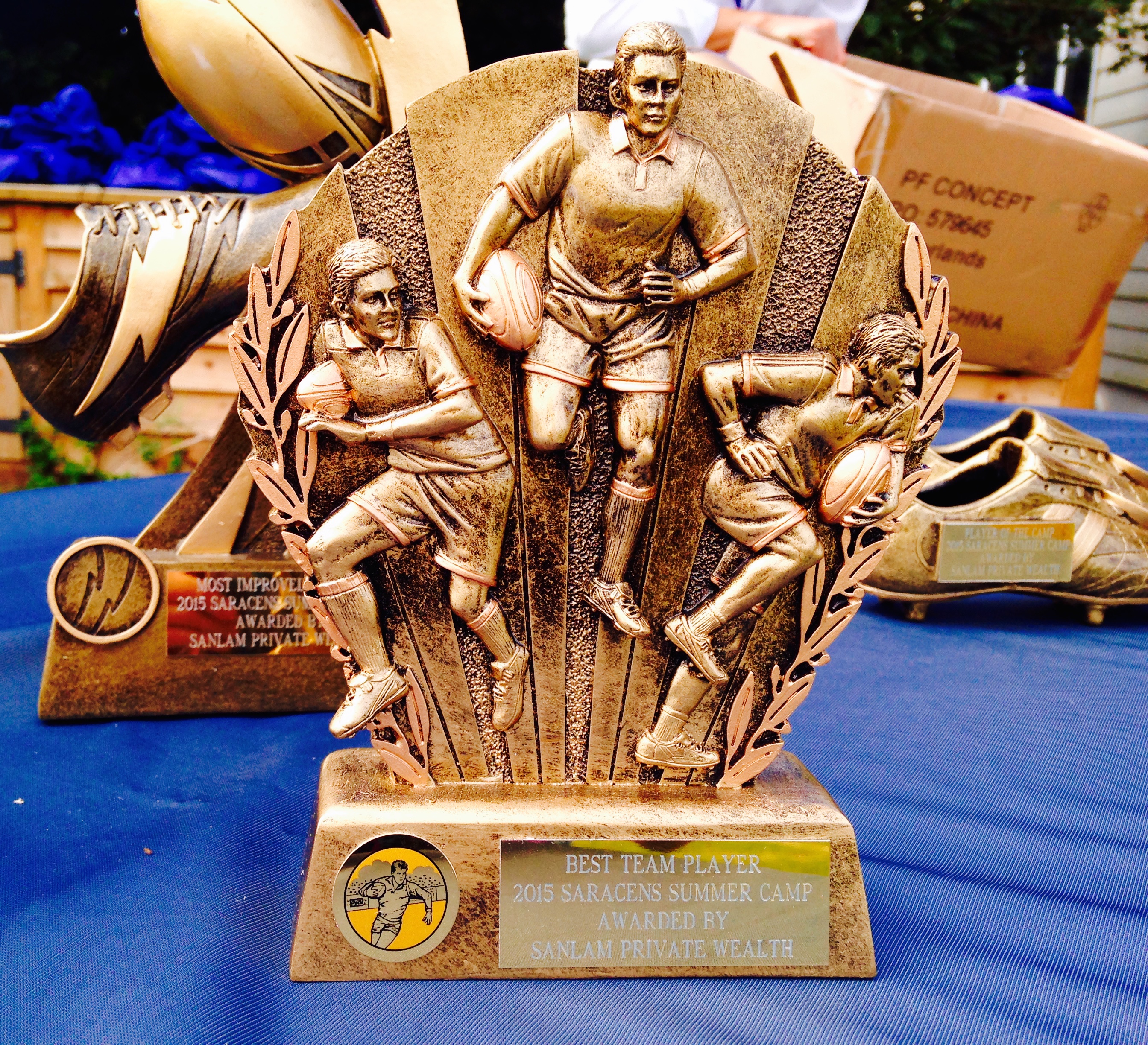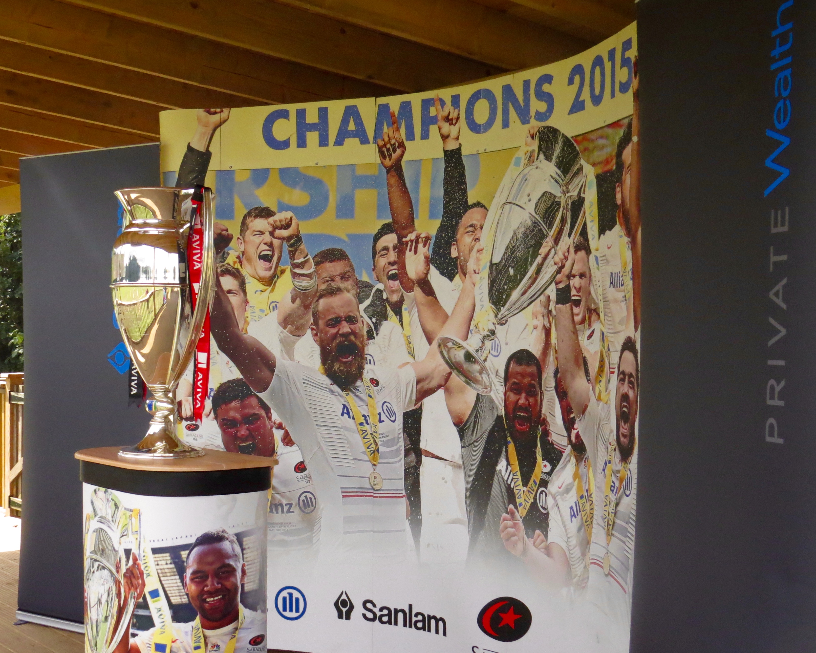 I had to get away to get to the Premiership 7’s but not before I saw the impressive array of prizes on display; I can only imagine the local Sanlam office was empty that afternoon, several members of staff had come down to support the day and award trophies. We also had the company of a certain Premiership Rugby Trophy decked out in Saracens colours of course!