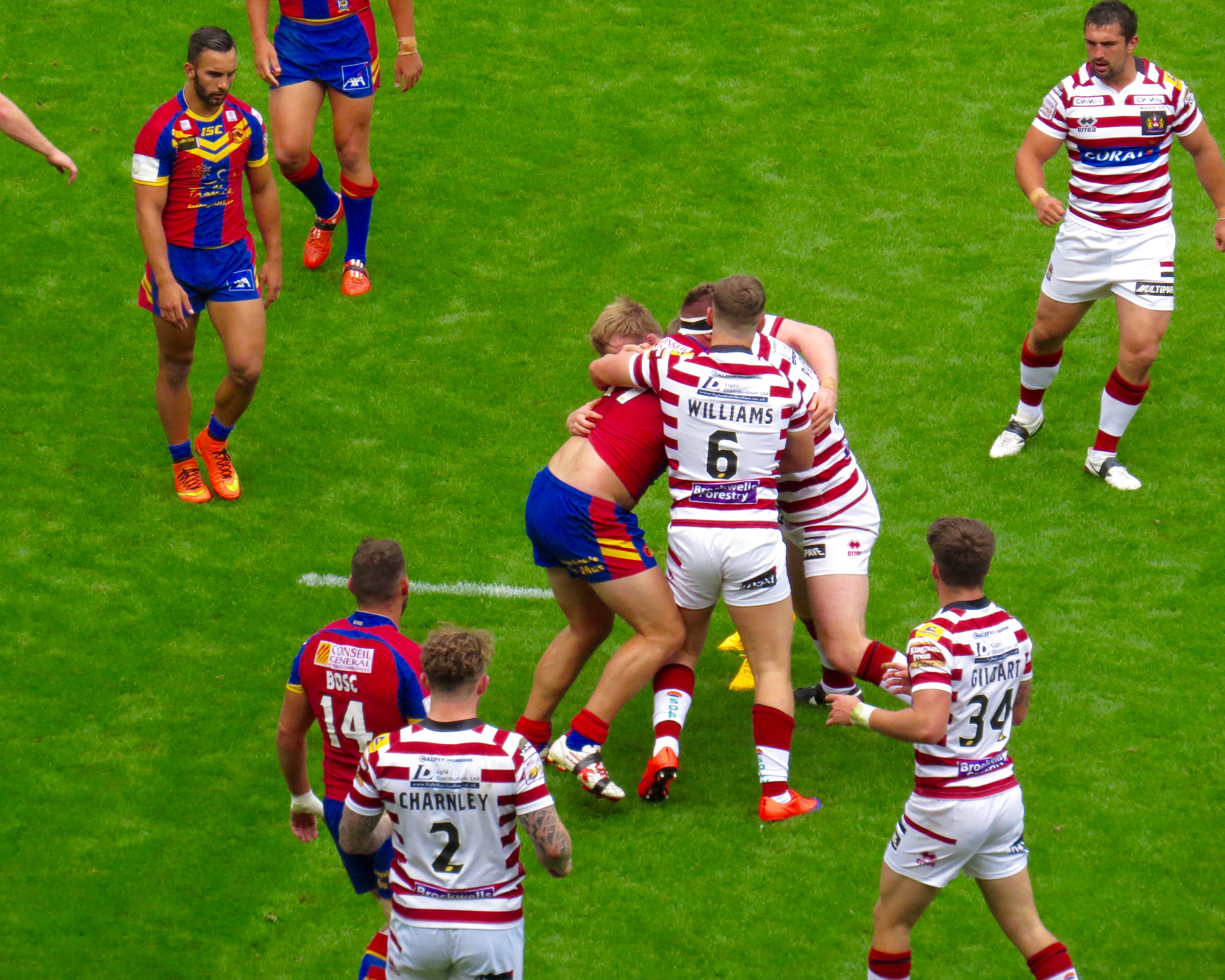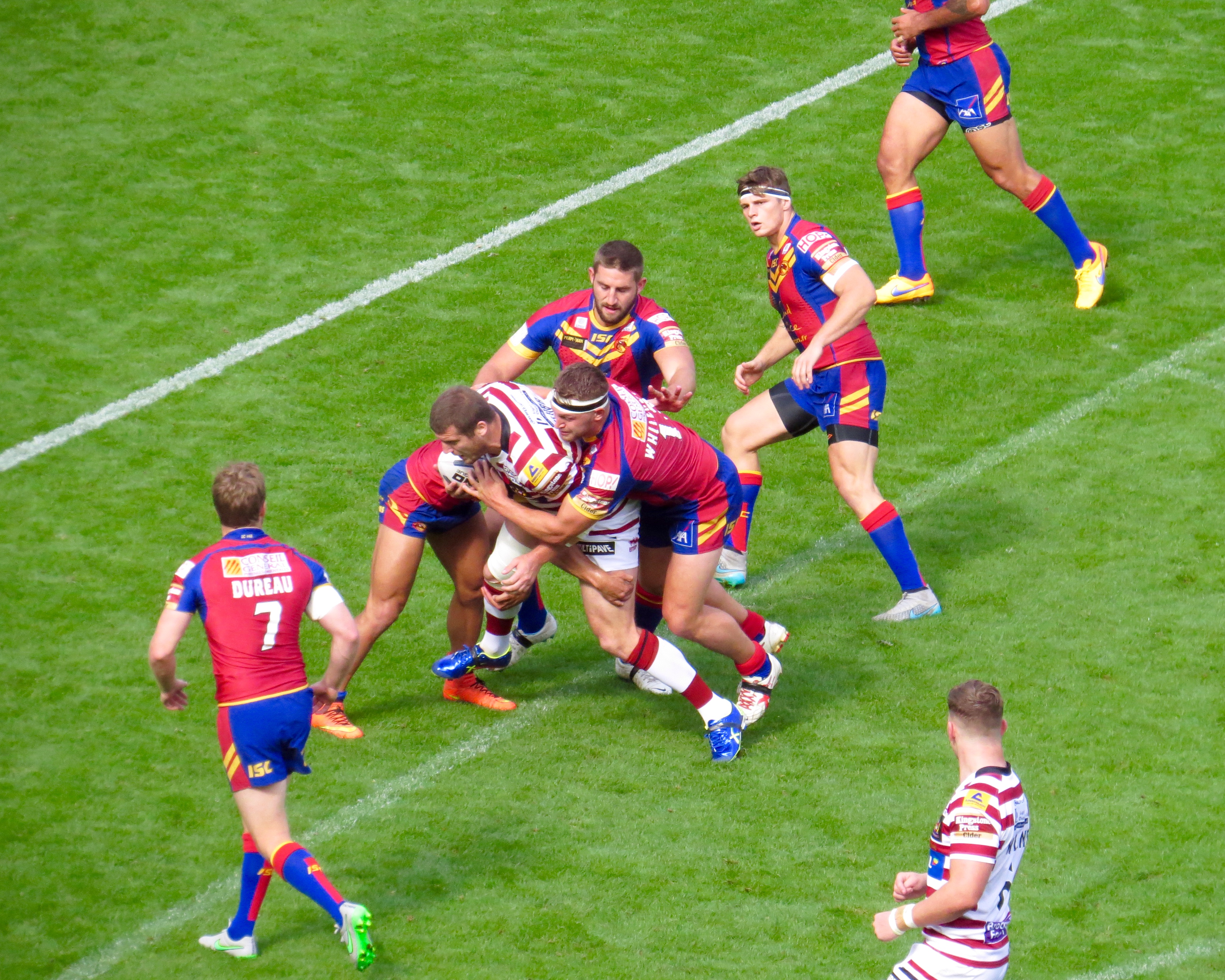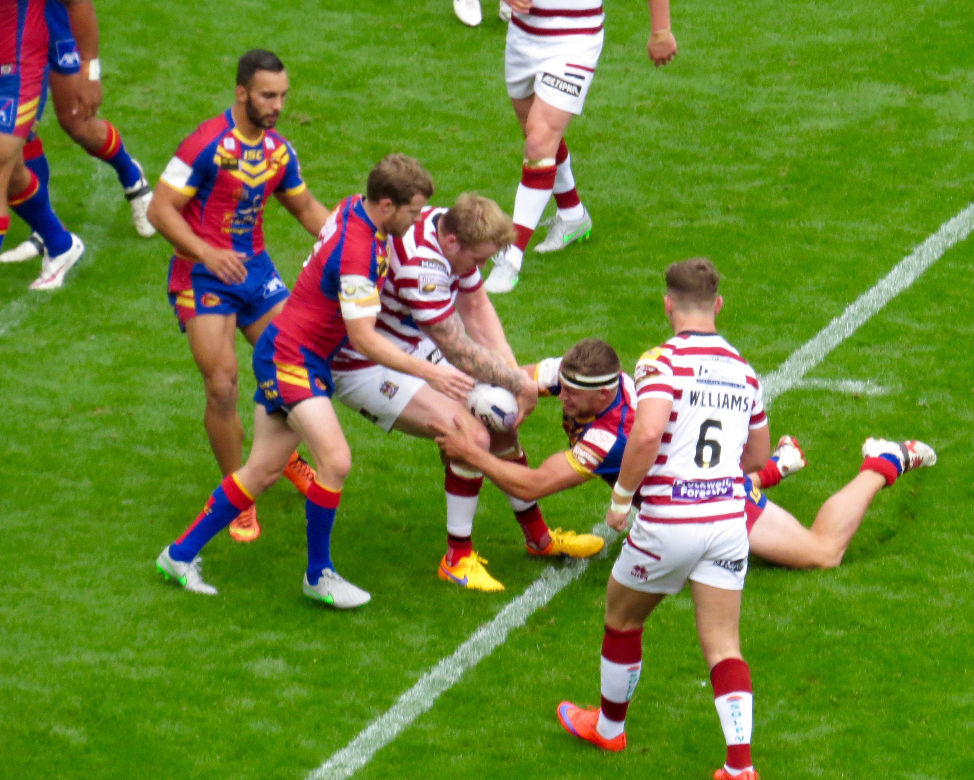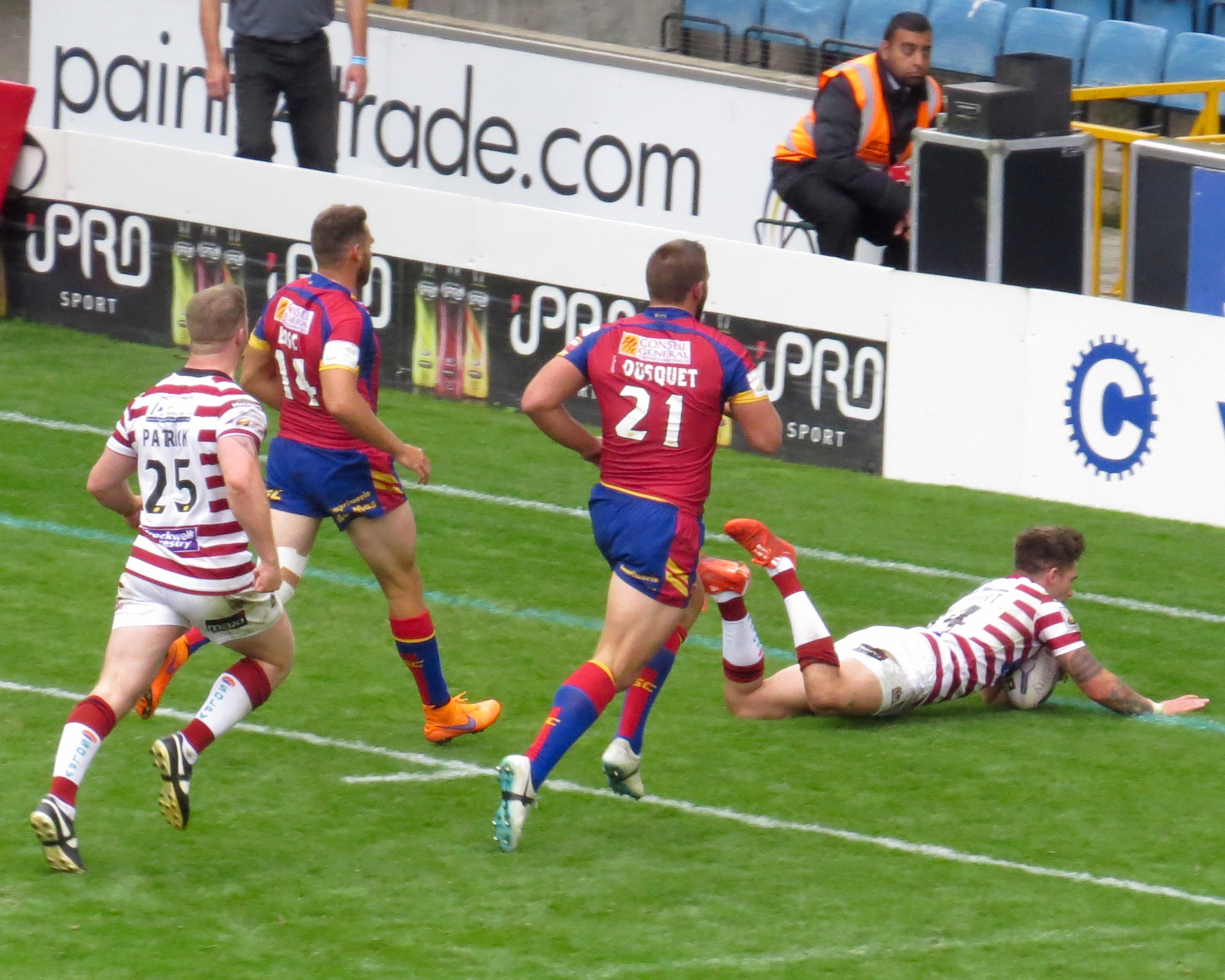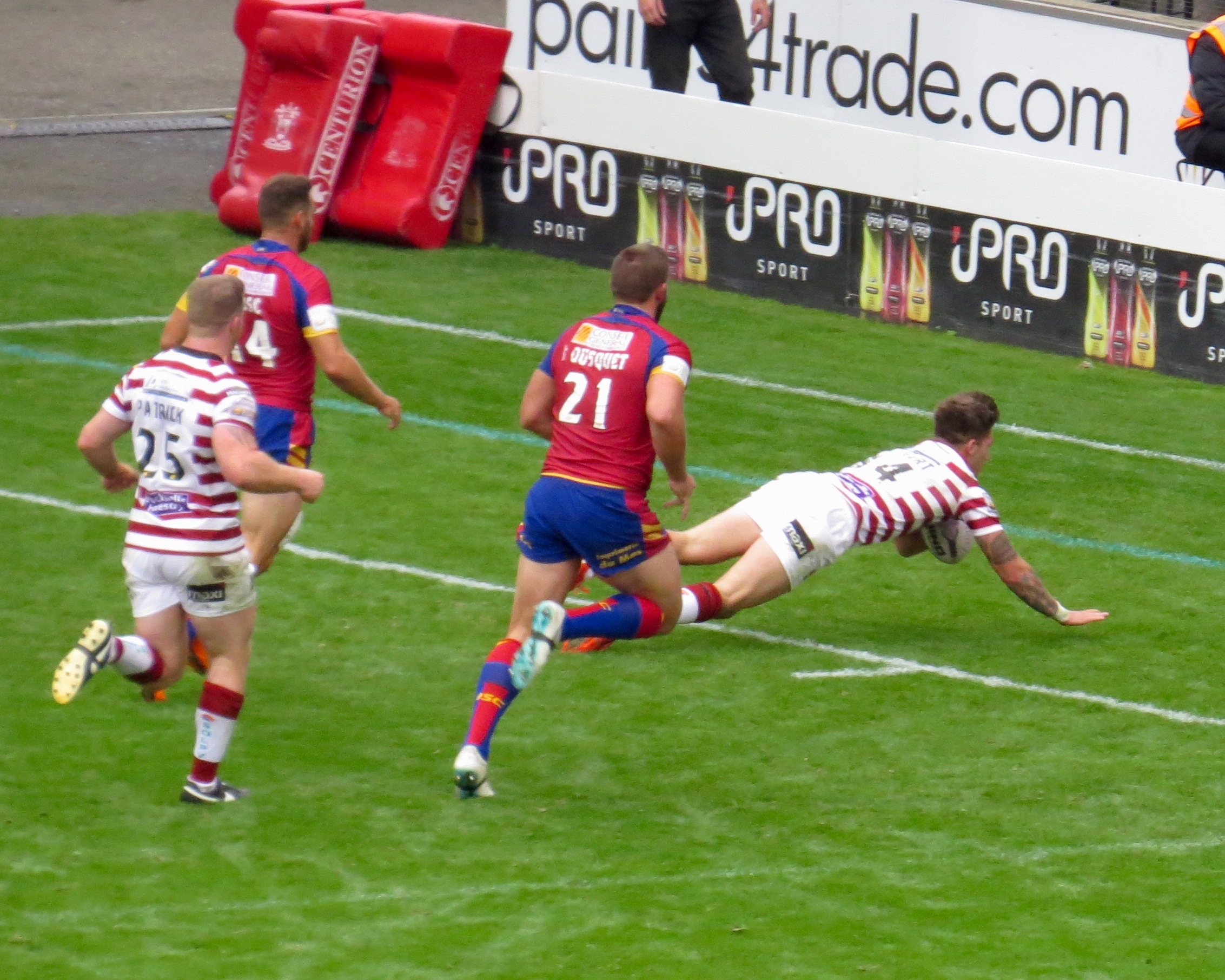 Les Catalans squeezed another try into the midst of Wigans’ try fest – but ended the match on the end of a heavy defeat – the score being Wigan Warriors 42 Les Catalans 16.