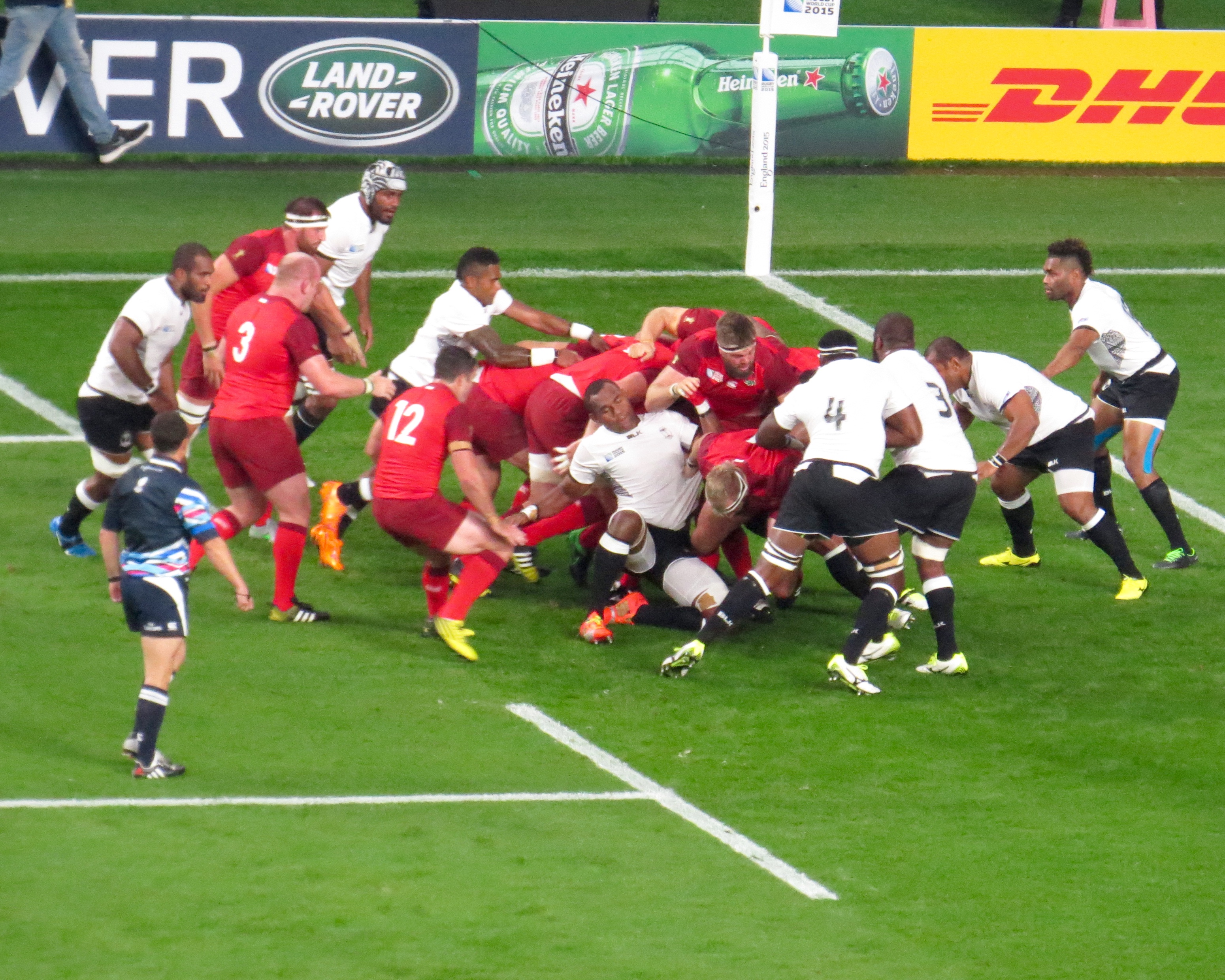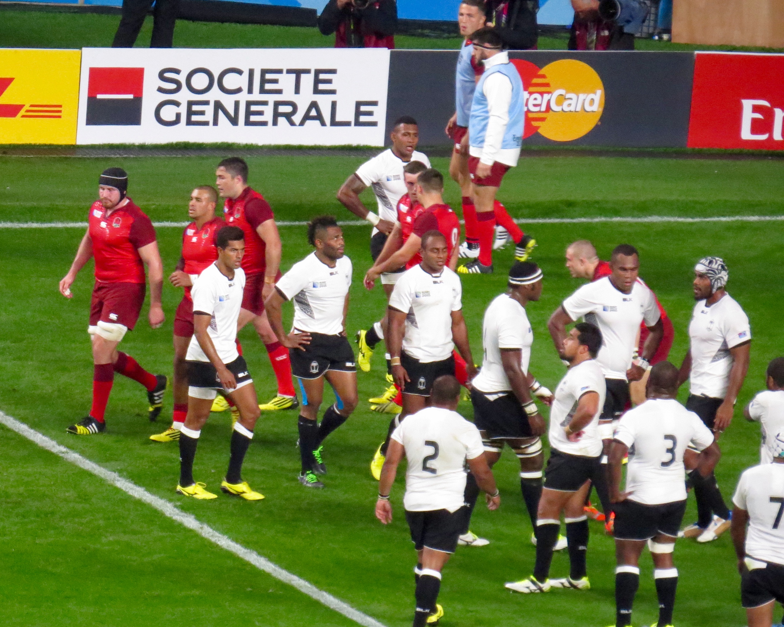 Ford extended the England lead with a penalty on 33 minutes, keeping the scoreboard ticking over. Fiji responded in kind with poor play in the ruck, Nadolo stepped up and casually kicked the ball over with ease. Things were to say the least looking rather ragged as far as England were concerned and after another missed penalty from Ford, the teams went in at half time with the scores on England 18 Fiji 8. The hosts knew they were in a game!