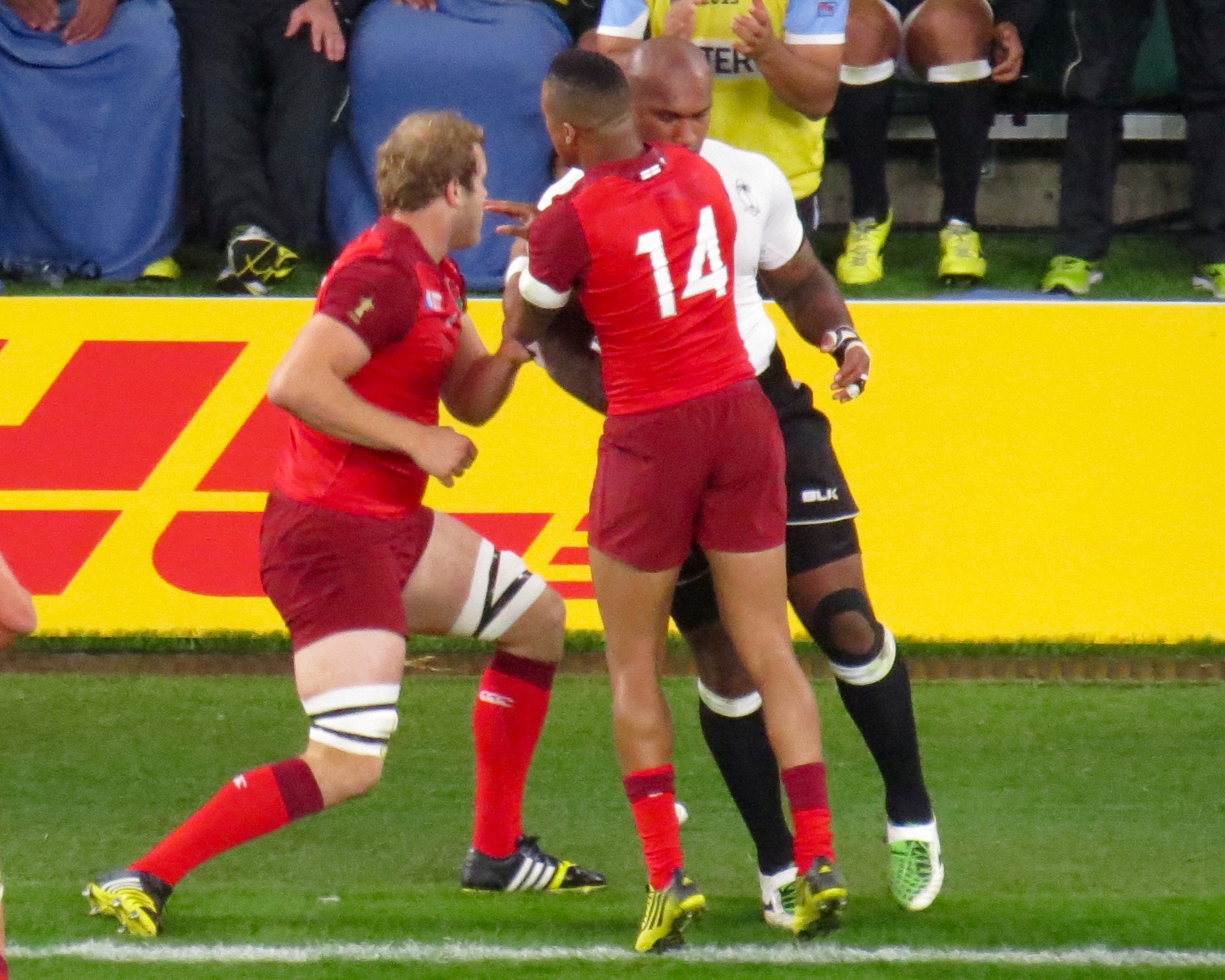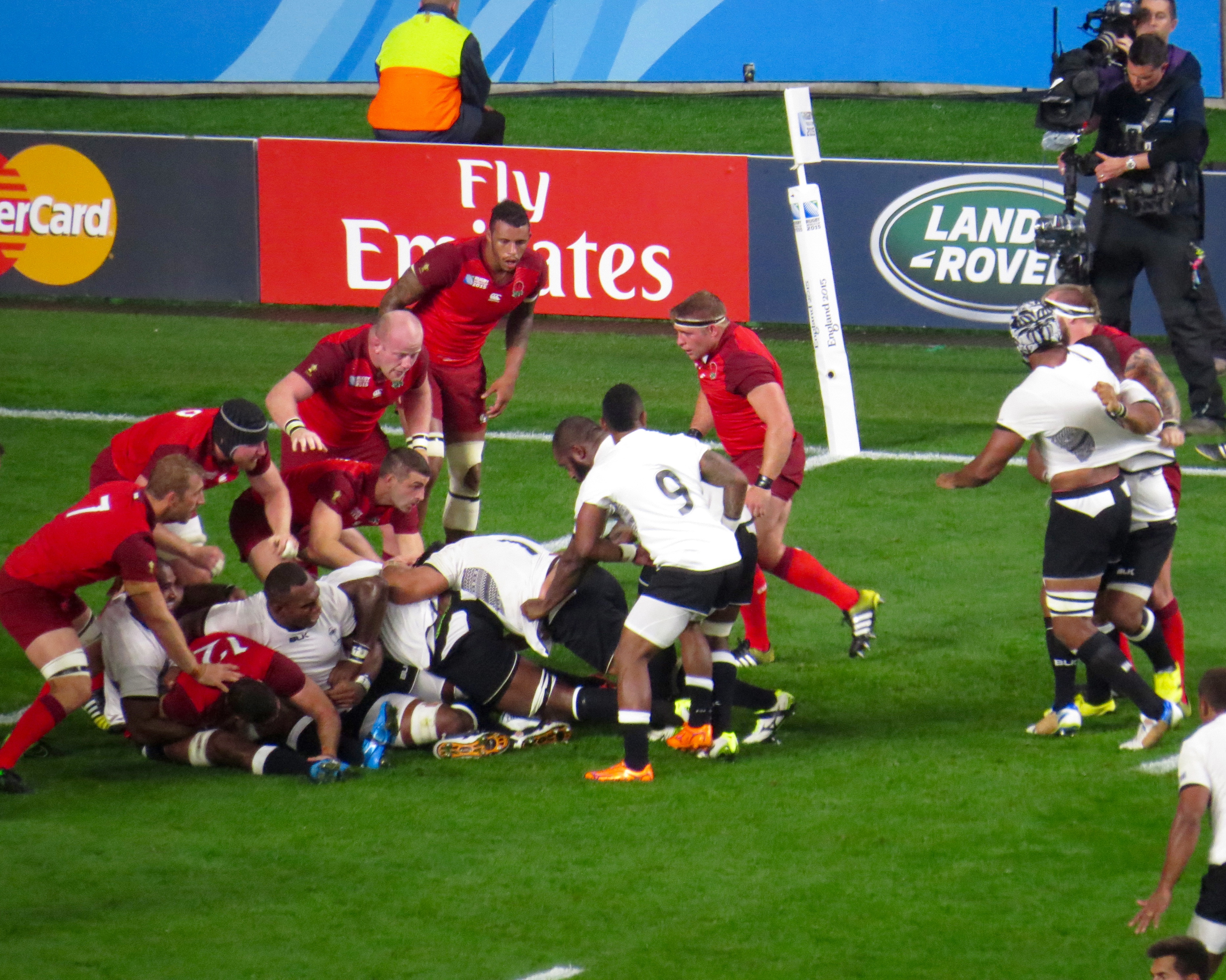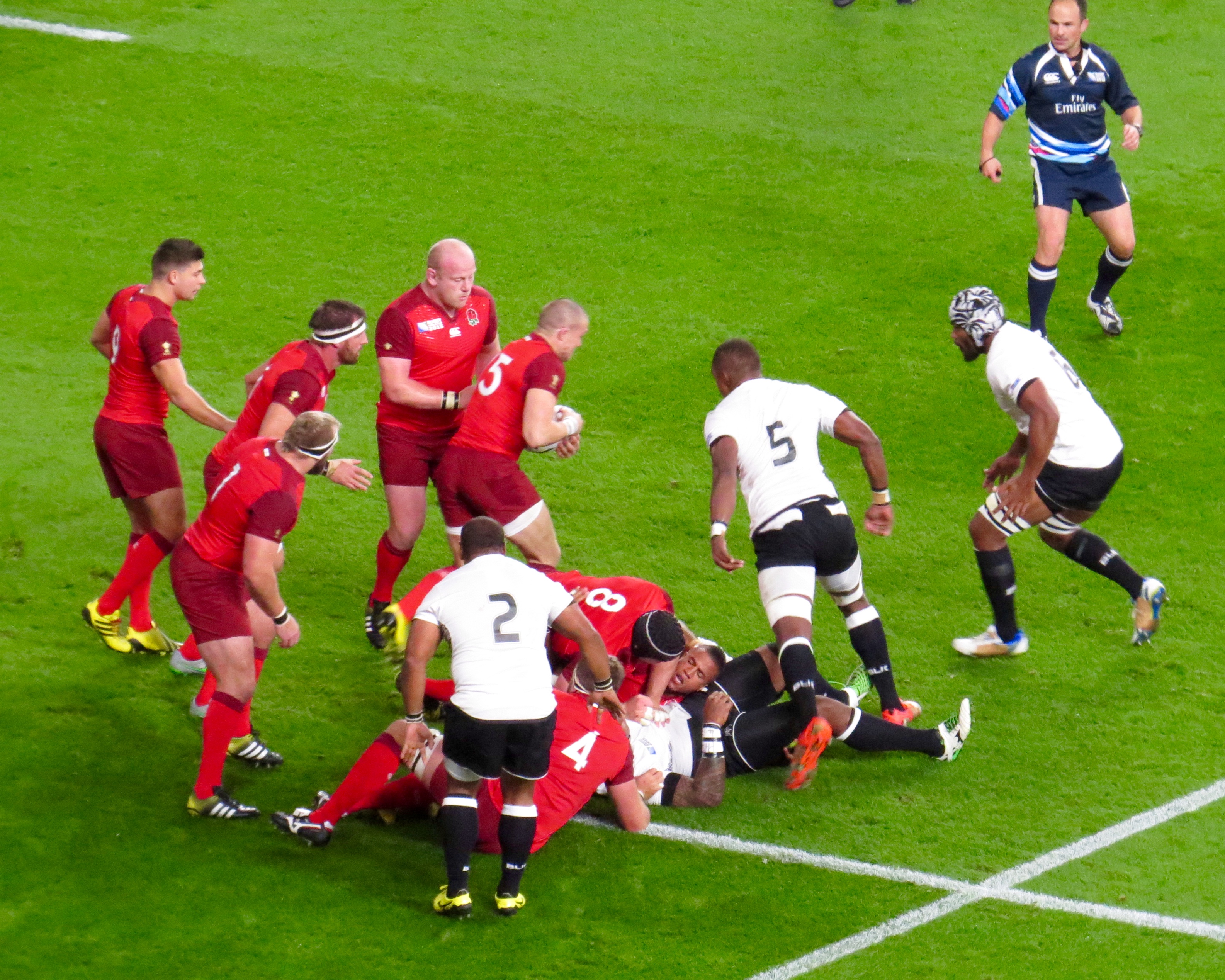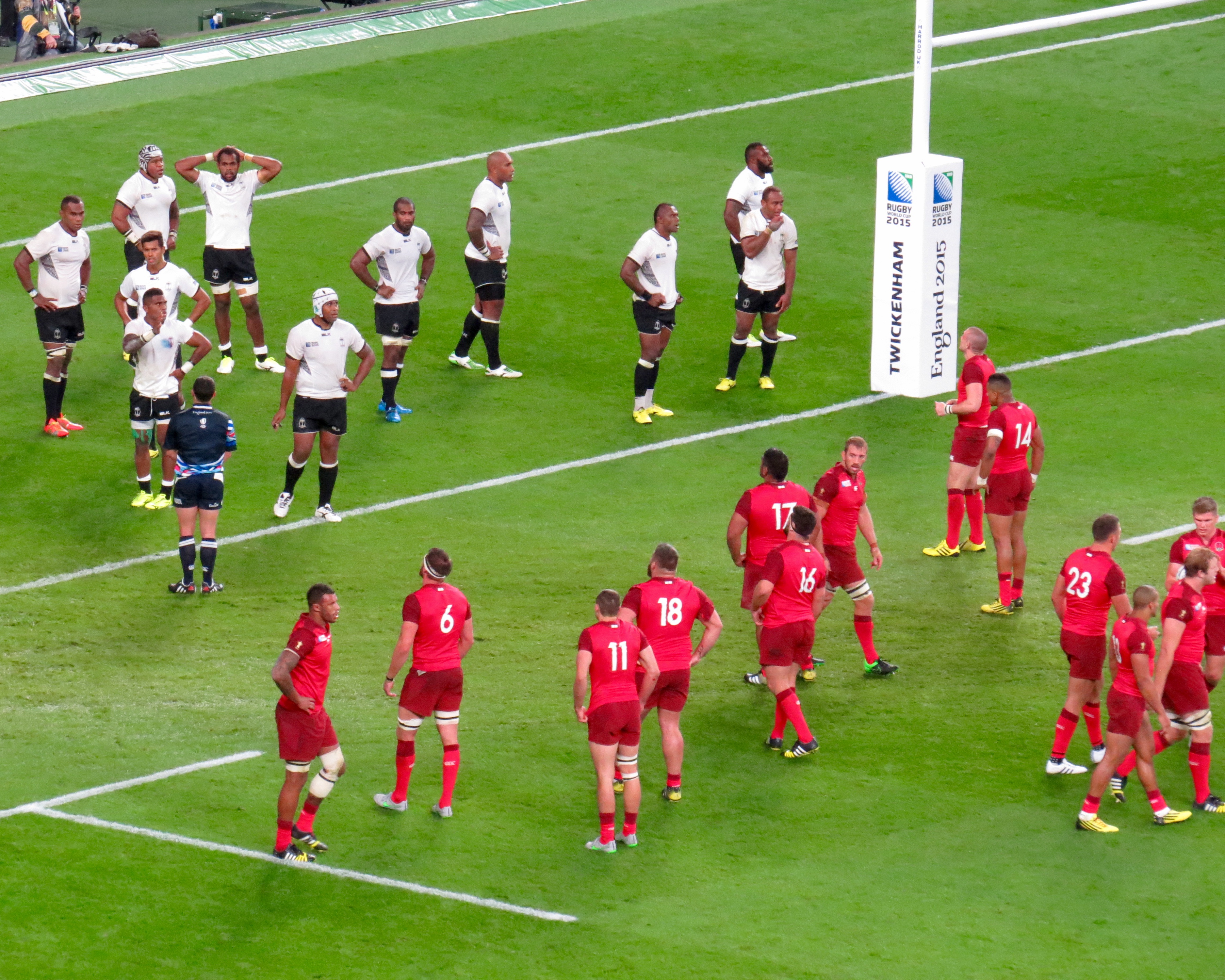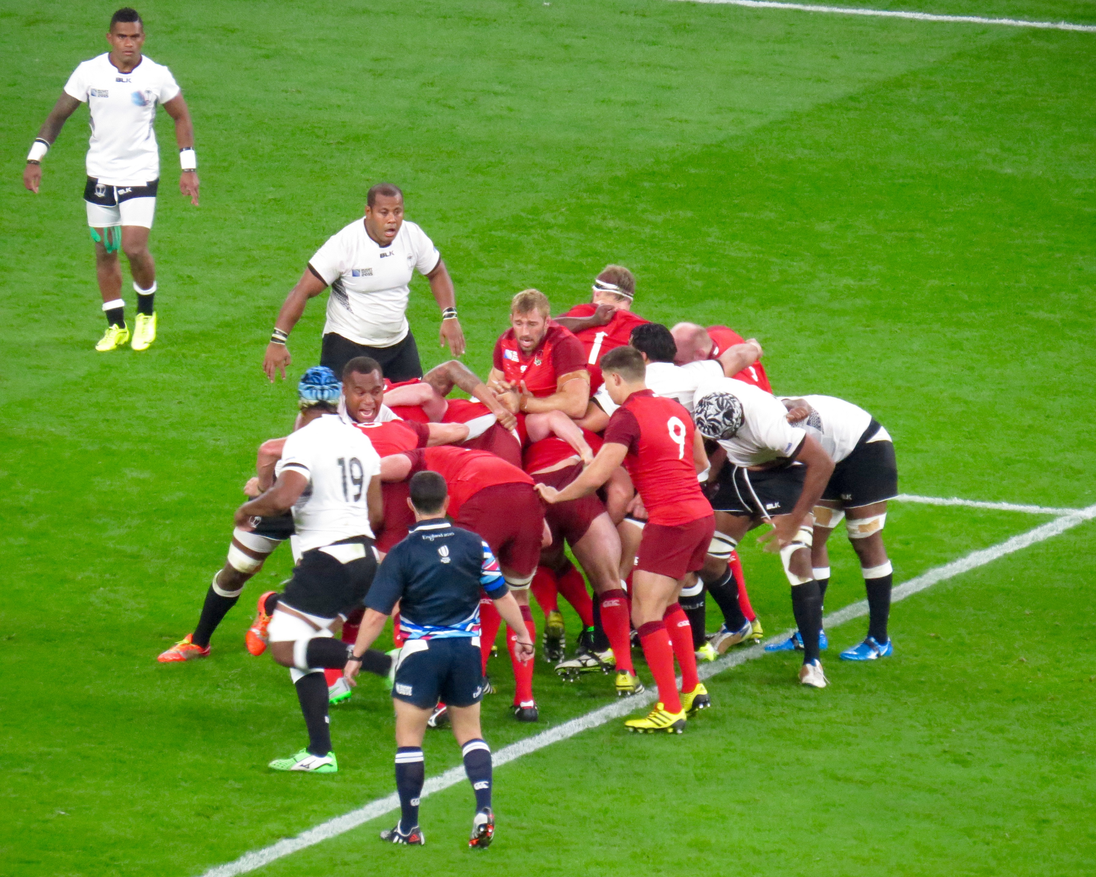 The first moment of controversy came in the 12th minute when Masi Matadigo and Dominiko Waqaniburuto lifted Jonny May above the horizontal, the result on the evening was a penalty to England, subsequently Waqaniburoto has received a one week ban. England kicked to touch rumbling over the line to score, the referee however awarded a penalty try snatching the points away from Tom Youngs. Nikola Matawalu was shown yellow and sent for a 10 minute rest.