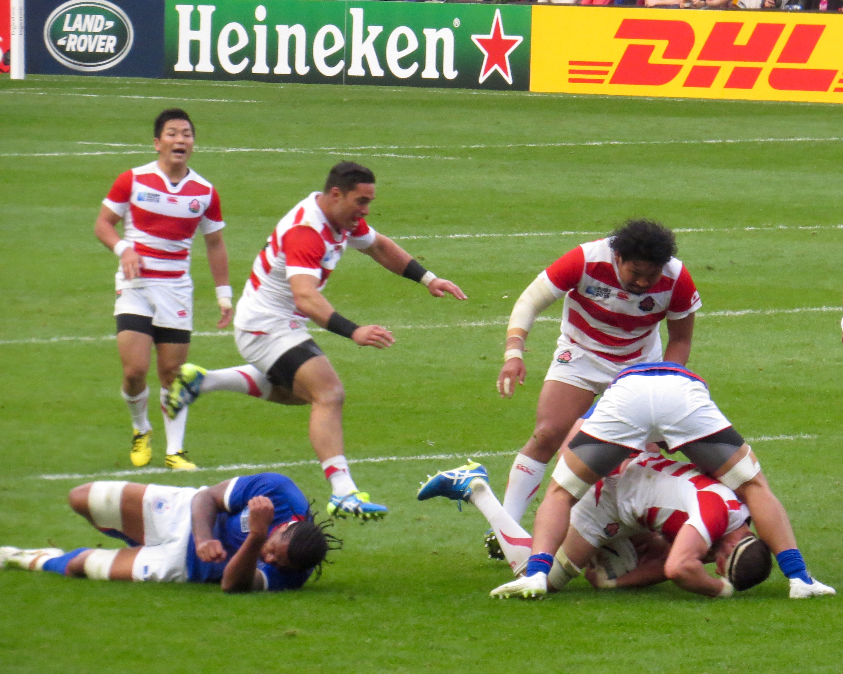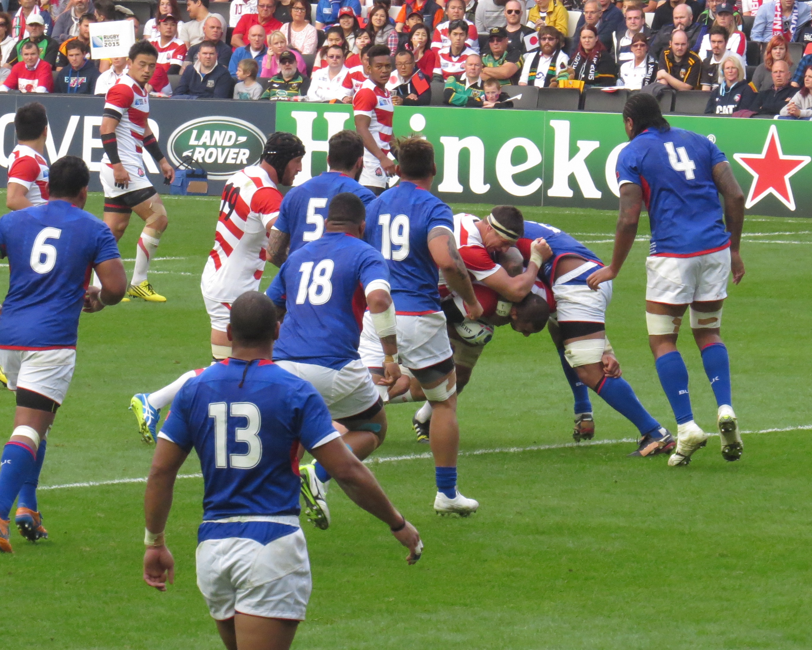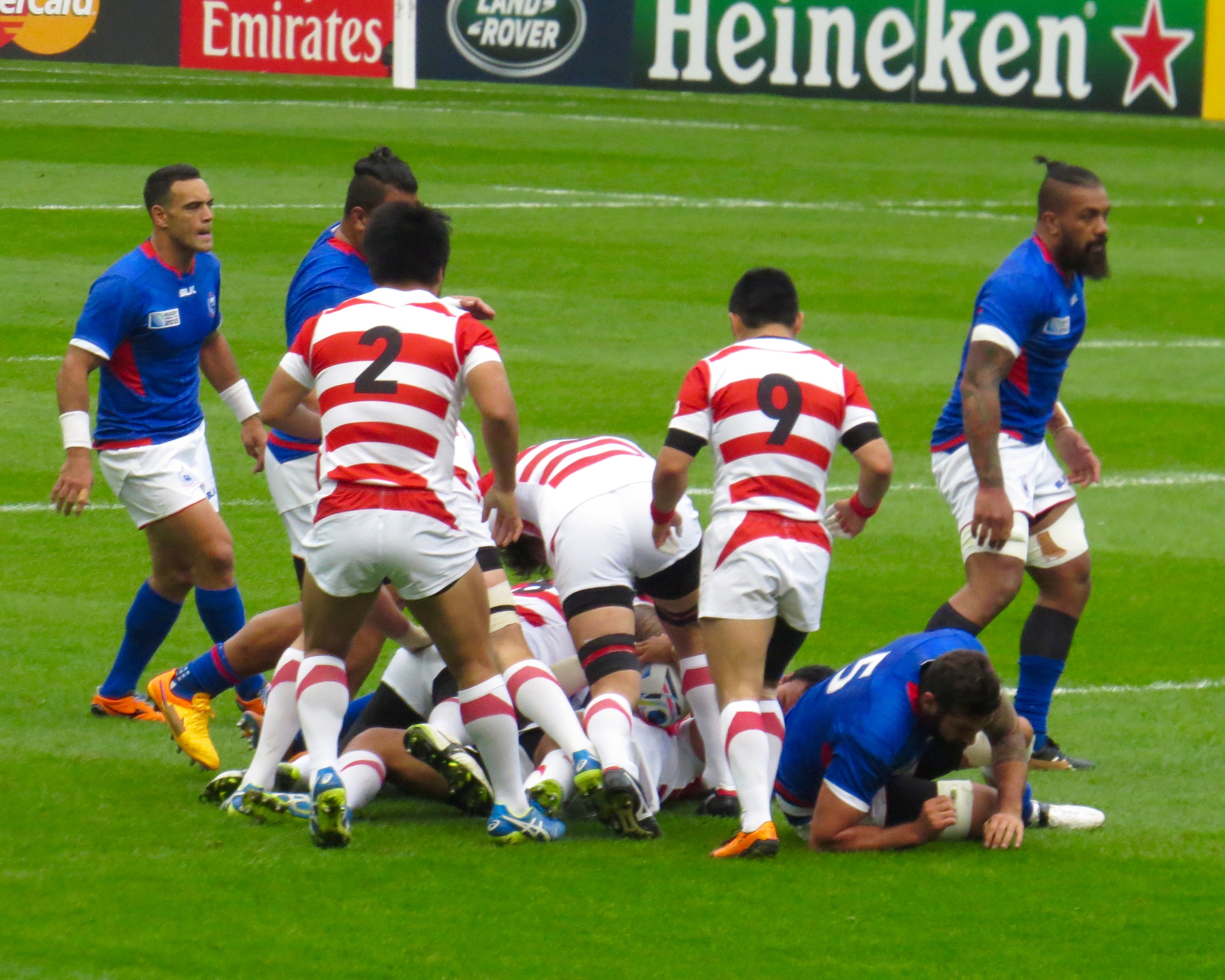 I had an idea that Japan might be a team to watch in this World Cup and so bought a ticket to watch them play in Milton Keynes. Their opposition Samoa have a fair few top class players amongst their ranks, I was expecting a balanced hard fought match, especially after the Samoan performance I’d seen against South Africa.