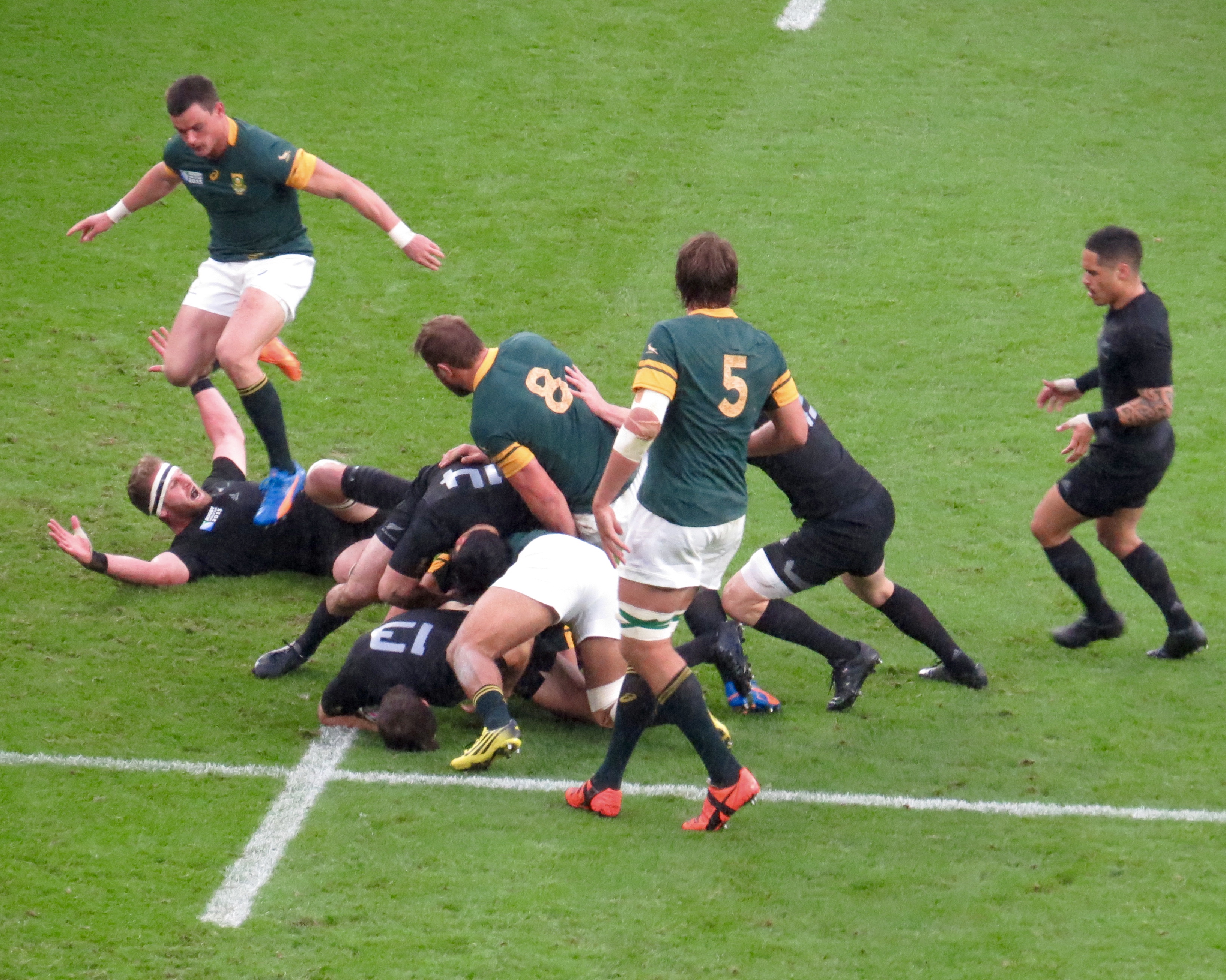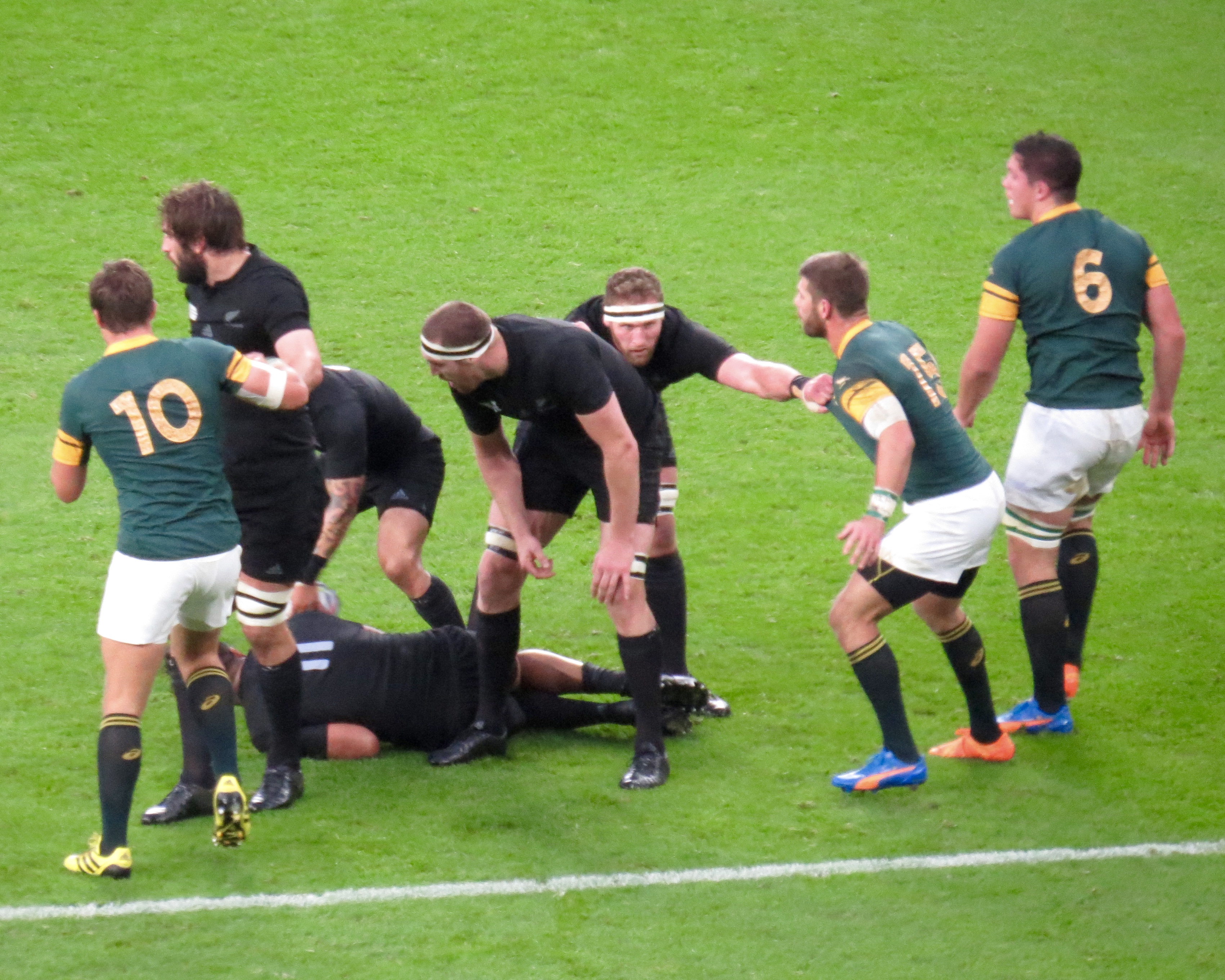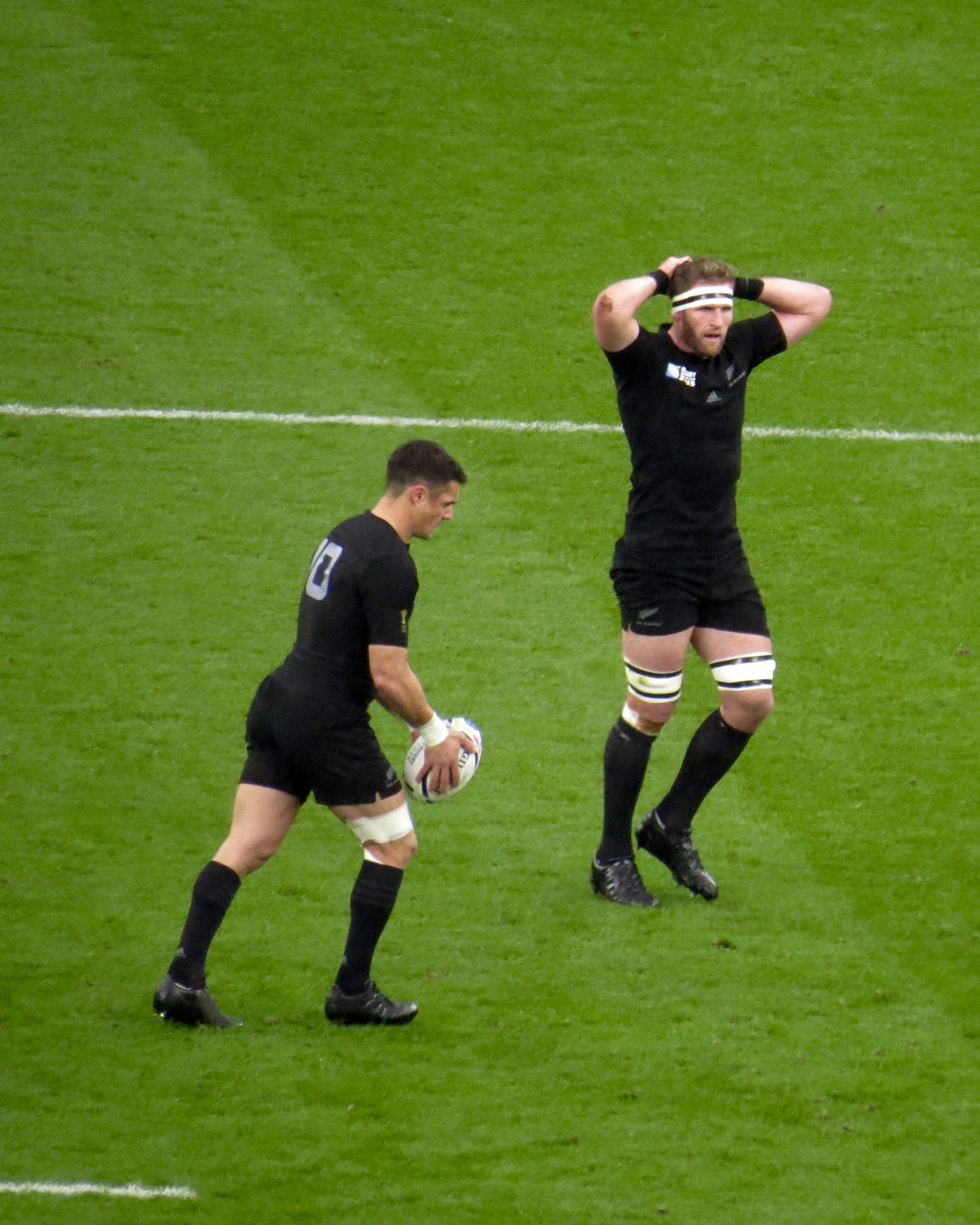 The All Blacks were looking less than slick and the South African defensive effort was immense – could the final be slipping away from them? Pollard kicked his 4th penalty to take the score to New Zealand 7 South Africa 12 at half time.