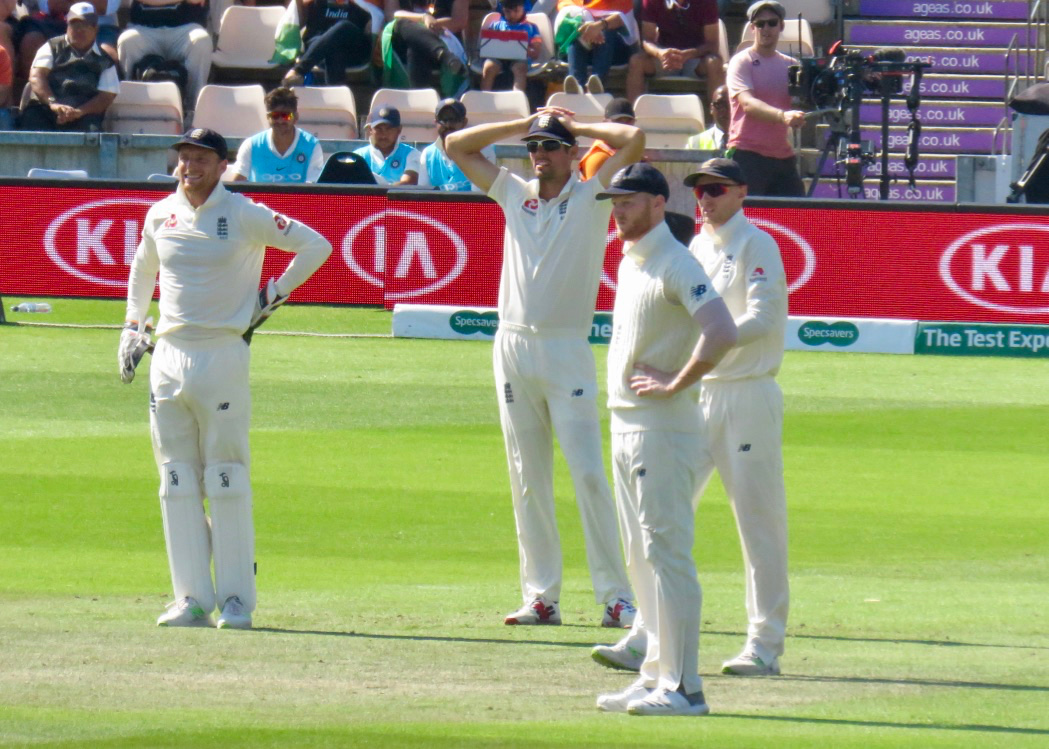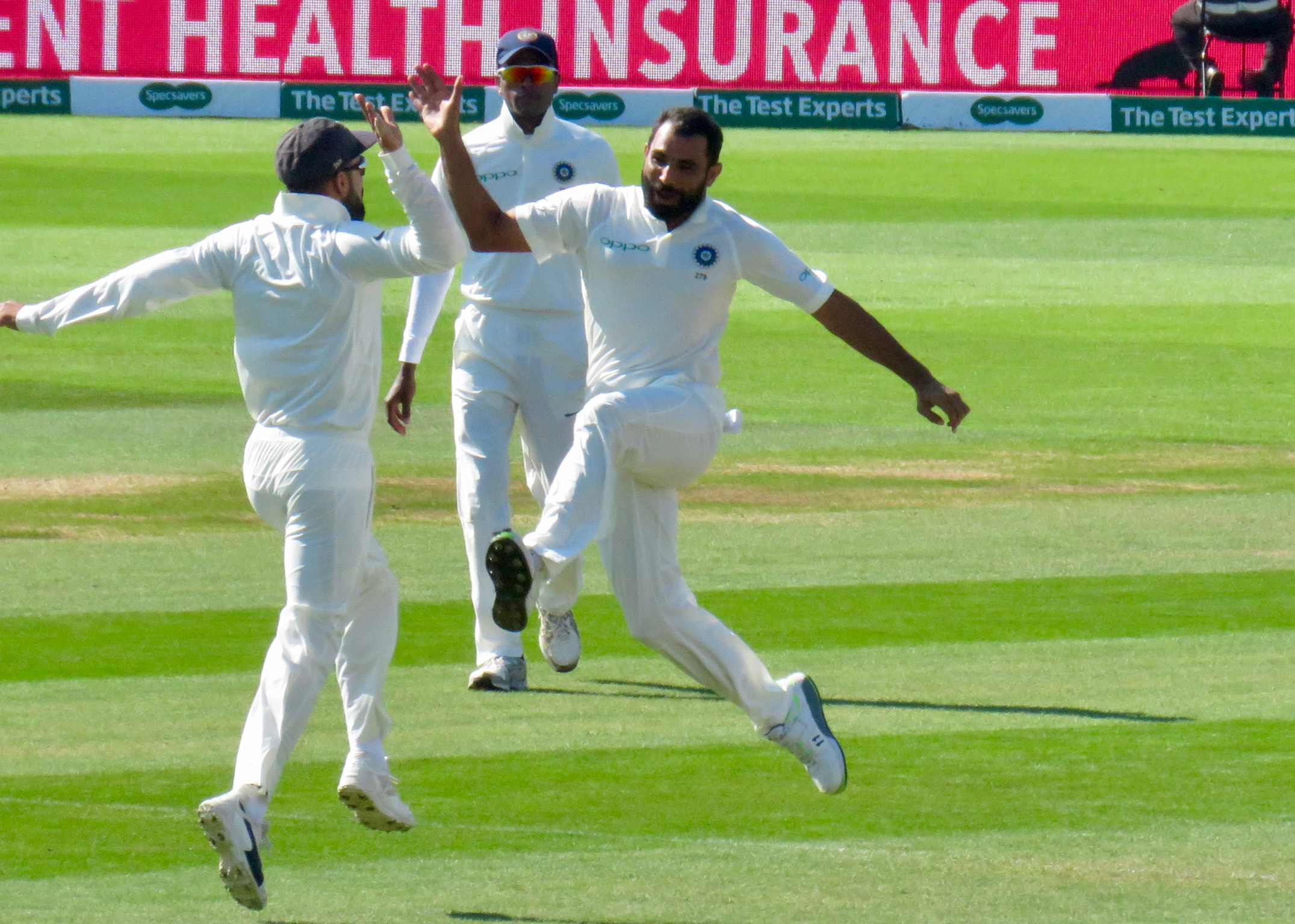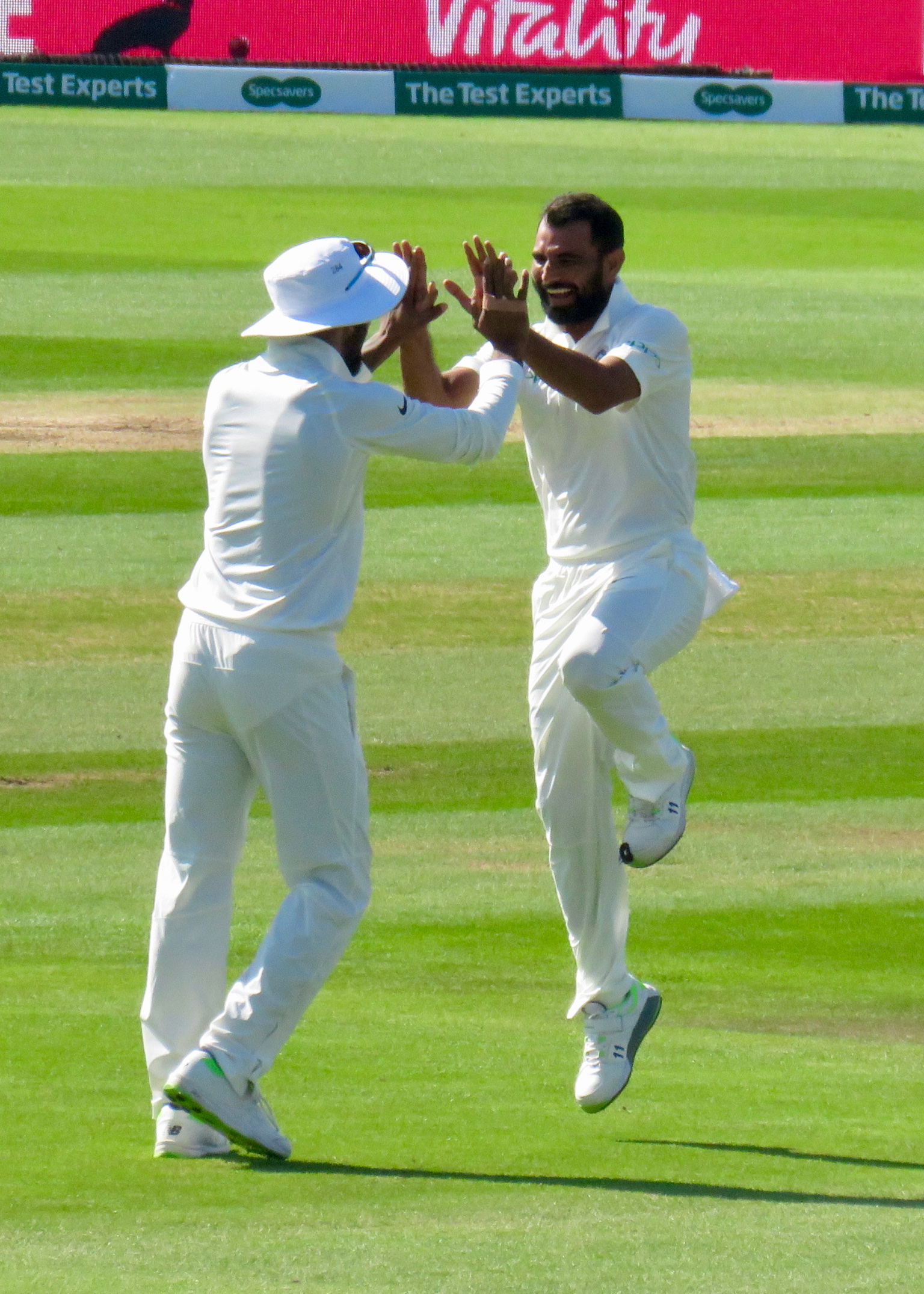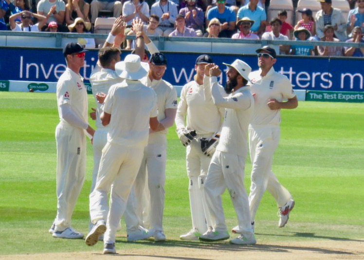 Ishant Sharma lasted only 5 balls before he was deemed to be LBW to a ball from Ben Stokes, with no reviews remaining he had no choice than to walk, he was out for a Duck. Mohammed Shami faced 11 balls in 11 minutes, scoring 8, before he was caught by Anderson from the bowling of Moeen. That gave Moeen 4 for the innings and 9 for the match.