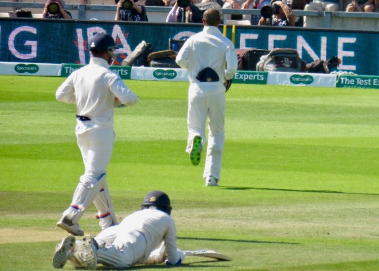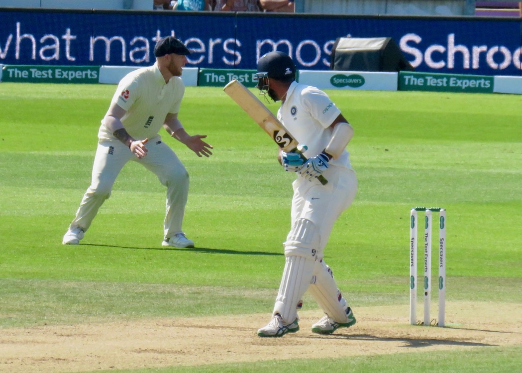 Hardik Pandya came in to join Rahane, he suffered the disappointment of a pair of Ducks when he was caught by Joe Root from the bowling of Ben Stokes. That subject caused some hilarity in BBC TMS when Aggers discovered that Geoff Boycott had suffered the same fate and he hadn’t. He’s so good at winding Boycott up and had ideal material with this one!