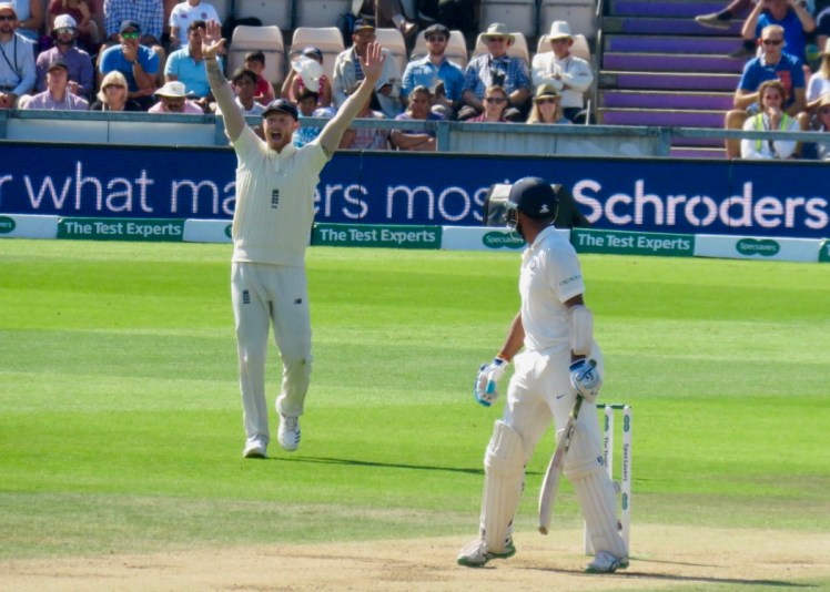 Shikhar had been dropped for Lord’s, a fact I’m sure he’s not too unhappy with in retrospect, he had an average of just under 26 going into this innings, the highest of the openers from both teams. But, a ball from Anderson had his name on it, a great diving catch from Ben Stokes and Shikhar was out for 17. India were in some trouble on 22 for 3.