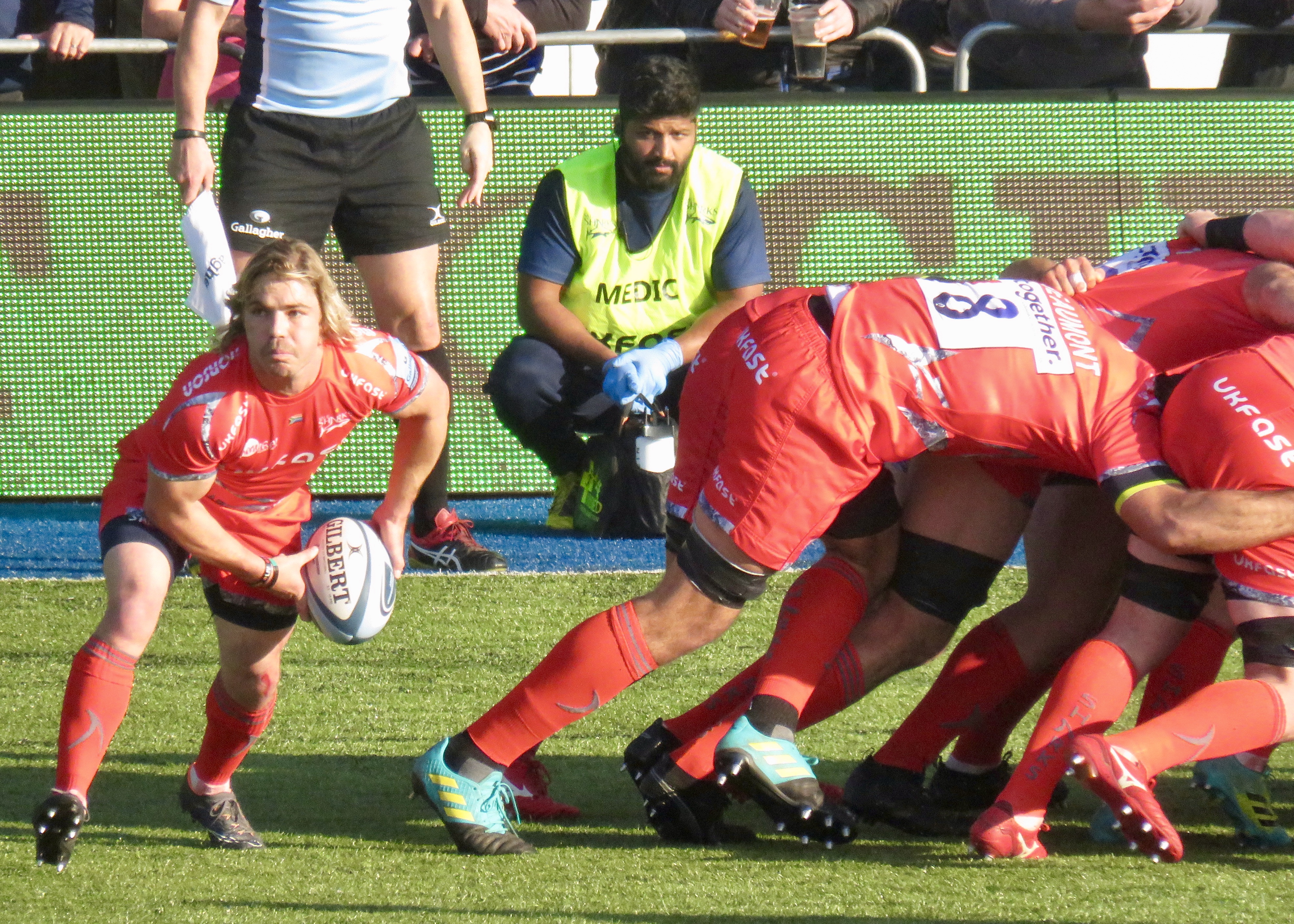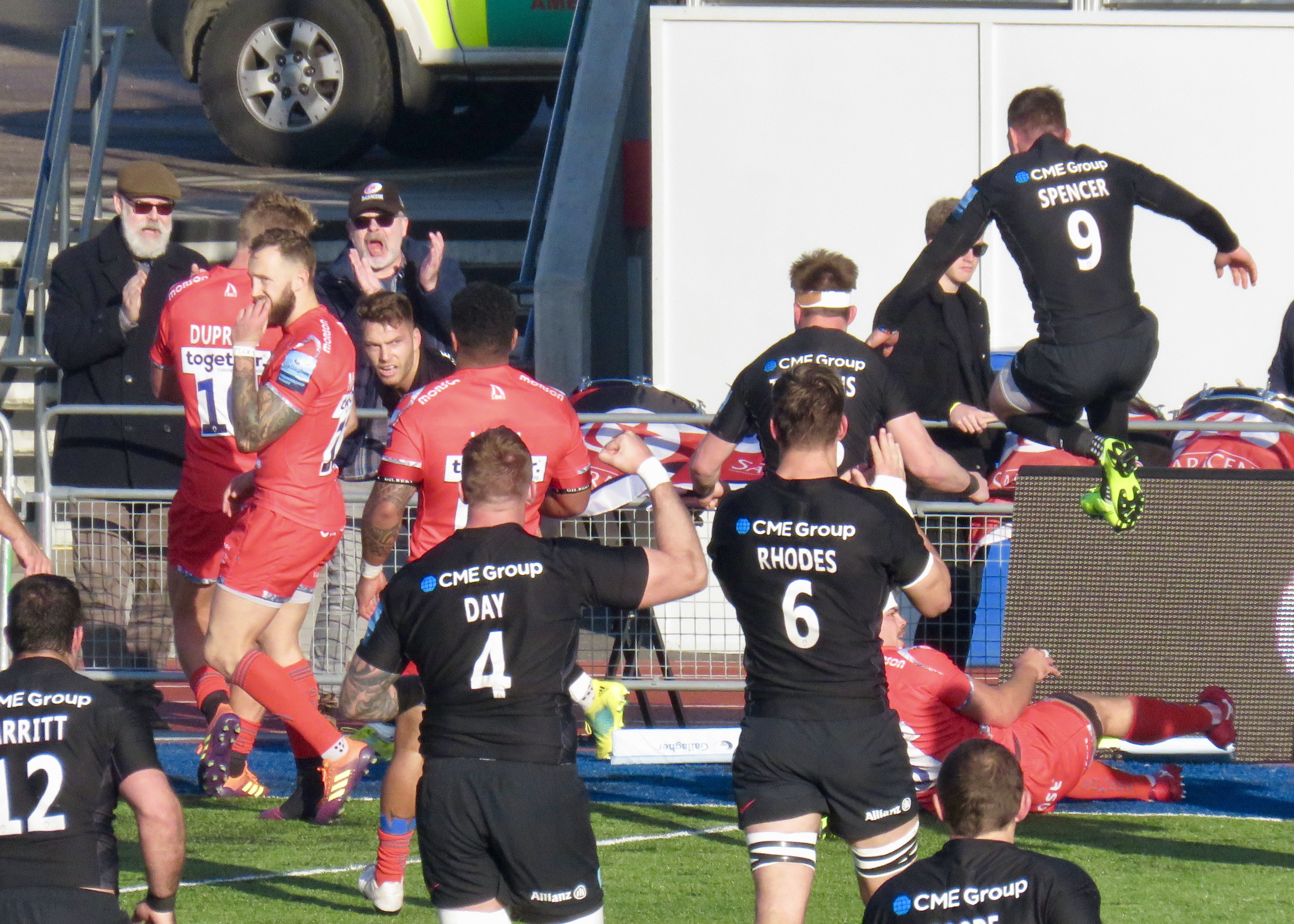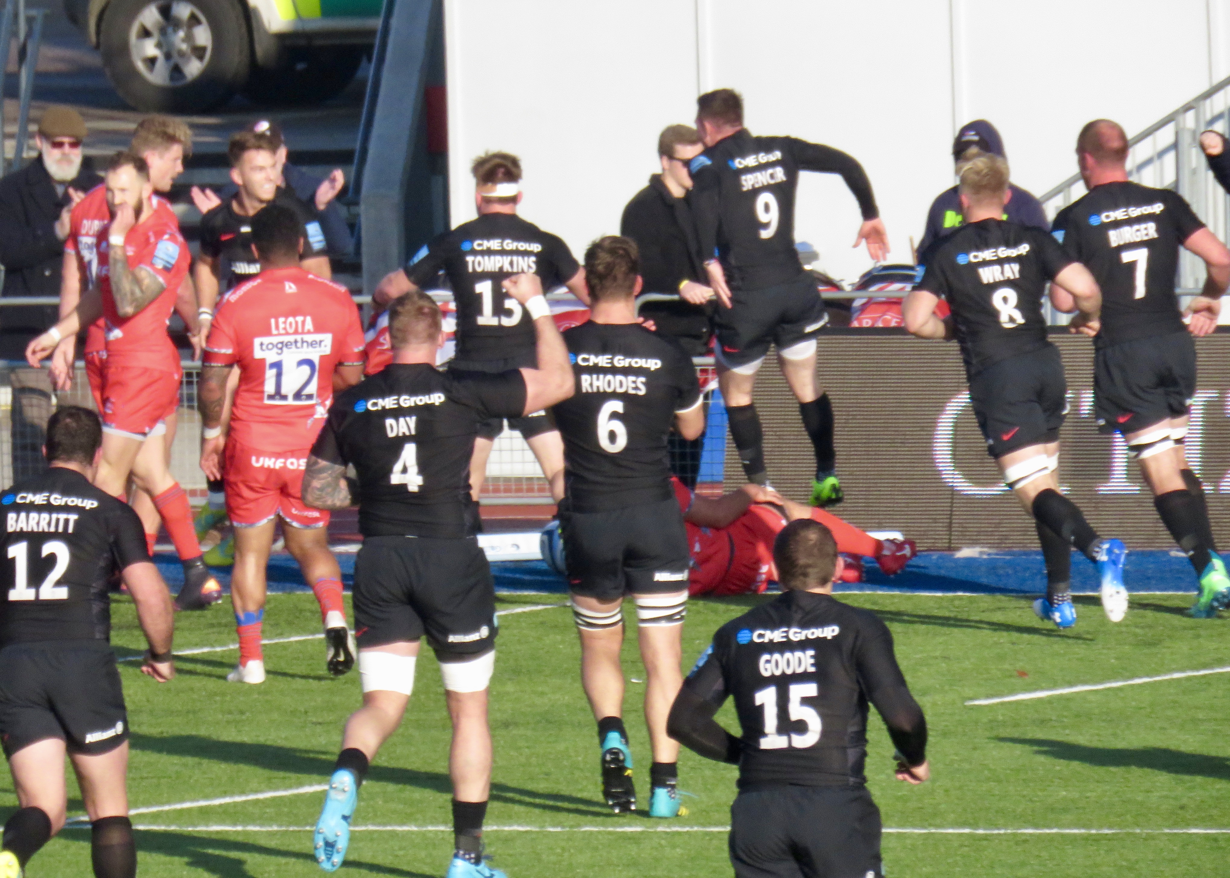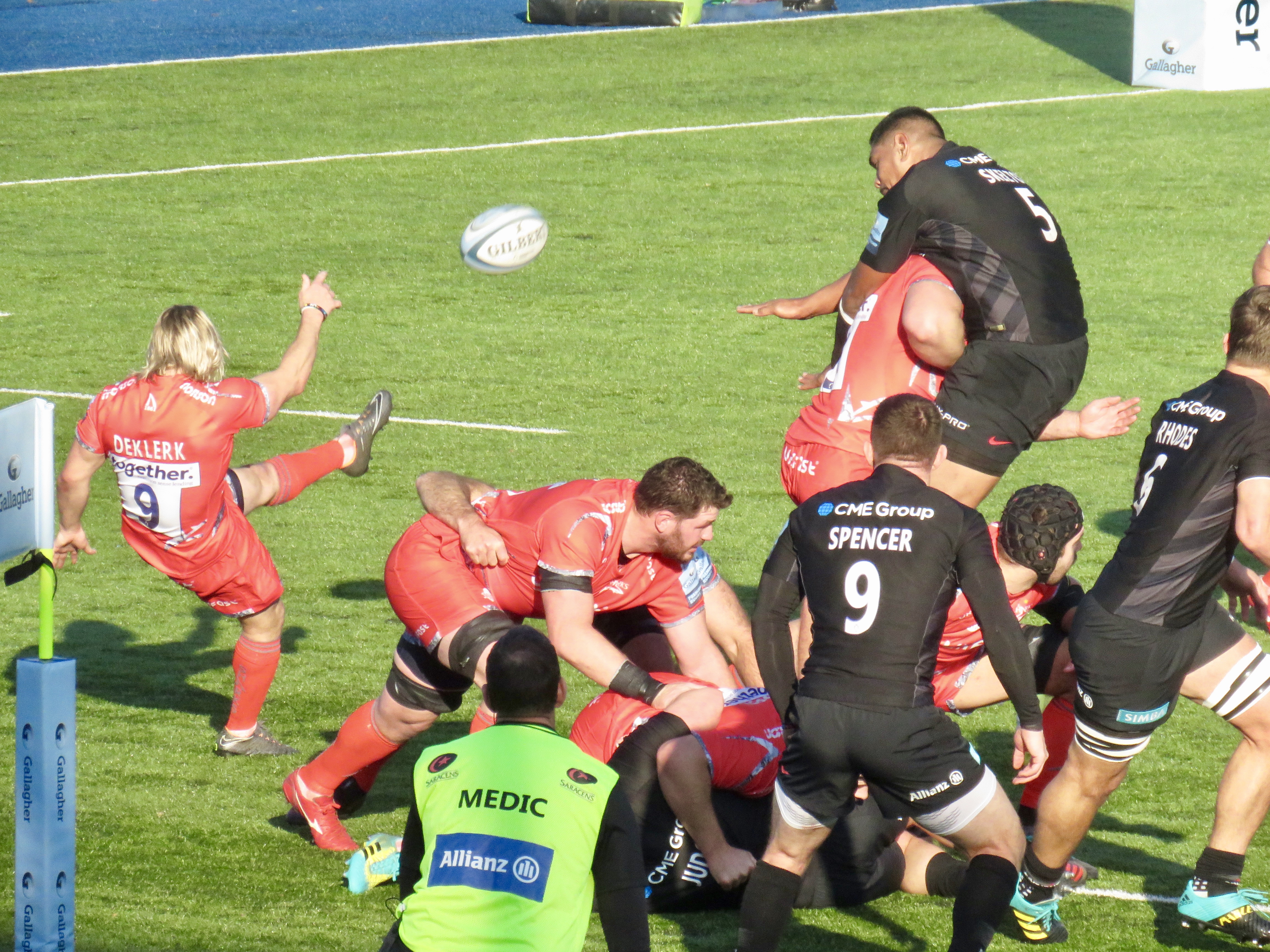 From the goings on in the second half it felt like Saracens had a bit of a snooze at half time and Sale had an inspirational shouting session! Sale took the lead with a succession of penalties, du Preez had his kicking boot on and took his team to 25, ahead of the home team. Ben Spencer, on kicking duty for the day, took the differential to a single point with a penalty of his own.