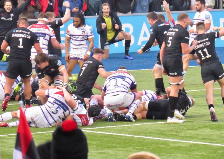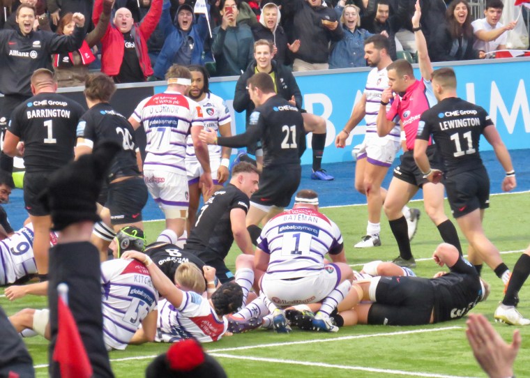 I now sit in the West Stand and have got to know my fellow fans, we did have to laugh at Lawrence Dallaglio, I’m surprised he needs to use a Mic, he literally shouts his commentary, we can hear every word! Including his comment when Alex Goode made a great run, apparently made possible by one of his colleagues blocking a Tiger! He finds it really hard to give credit to Saracens.