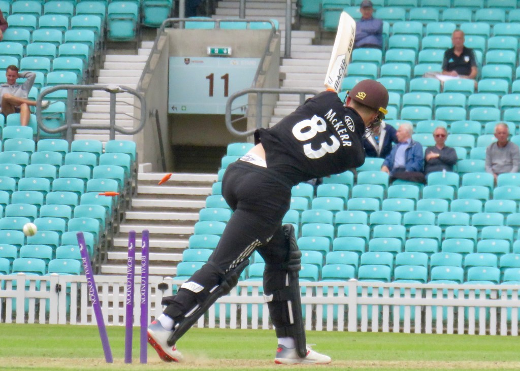 In contrast to the match at The Ageas Bowl 258 runs were scored at the Oval today. Rory Burns won the toss for Surrey and elected to bat. No actual star men by my criteria in this one. But, Dean Elgar certainly shone in what was a dire innings. He scored 62 runs in Surrey’s innings of 127. That innings prolonged his team’s stay at the crease, they lasted for 35.2 overs, or around 2 hours. A mention for Daniel Bell-Drummond, he bowled 7 overs and took 2 wickets! I’d never known him to bowl before!