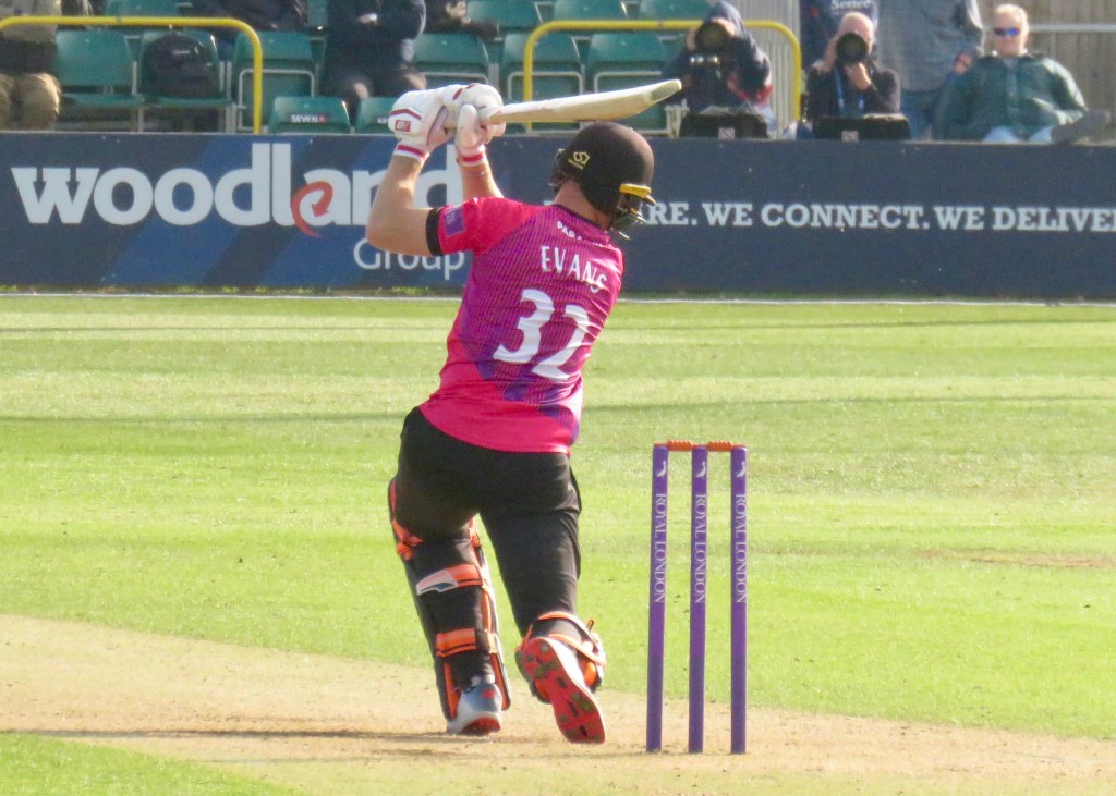 Ben Brown won the toss for Sussex and elected to bat. Phil Salt, available to open for Sussex and Luke Wright opened and put on just 30 for the 1st wicket, Salt made 25 of those and was the man out. Wright saw George Garton and Stiaan van Zyl come and go and Sussex fell to 86 for 3. Wright formed a partnership of 107 with Laurie Evans. Wright wa out just 3 runs short of his century, having made 97 from 103 balls. Evans then put on 121 in partnership with David Wiese. Evans was in a speedier mood than Wright and made 110 from 87 balls. Wiese finished out out 57 from 38 balls and Sussex finished on 347 for 7 from their 50 overs.