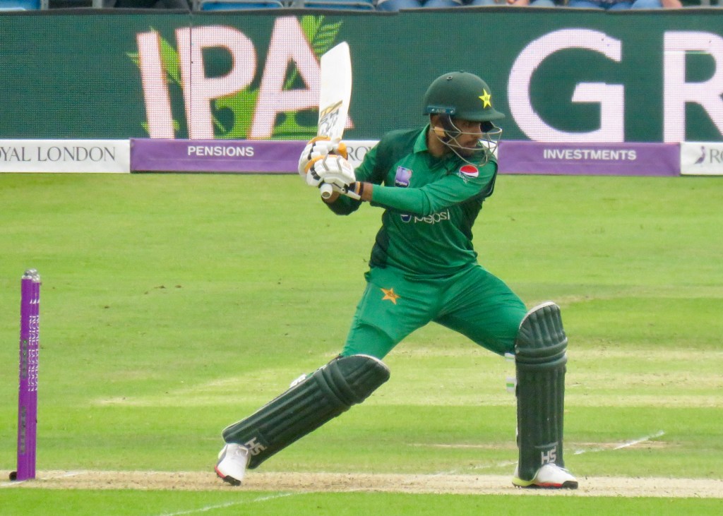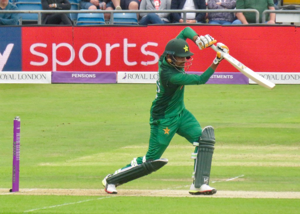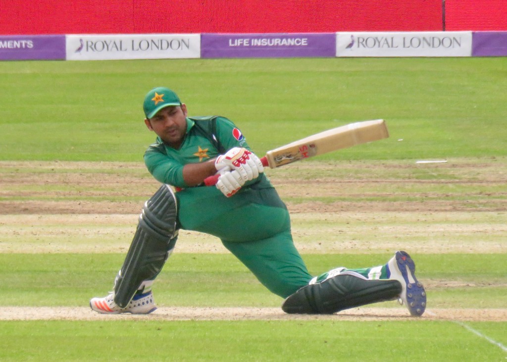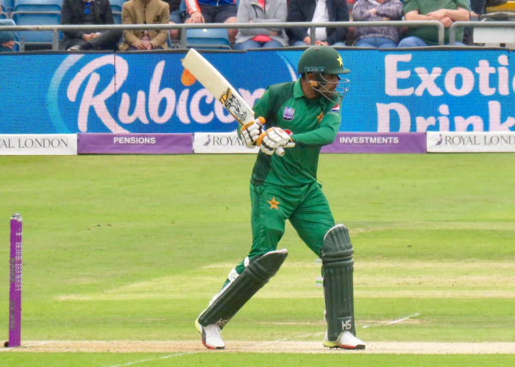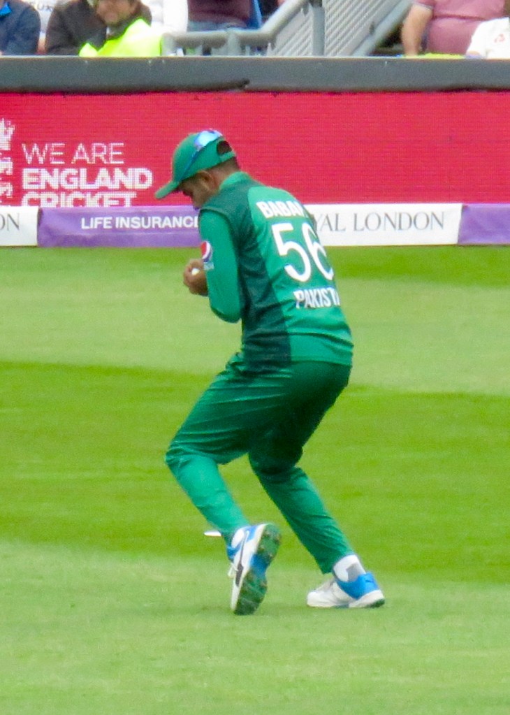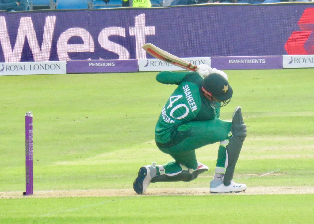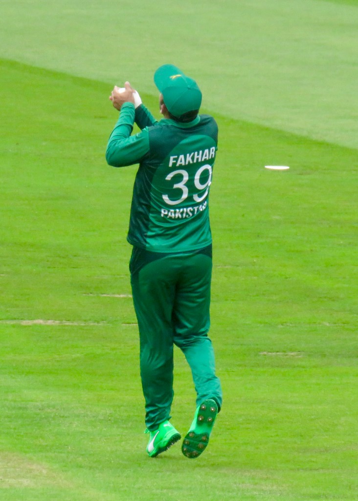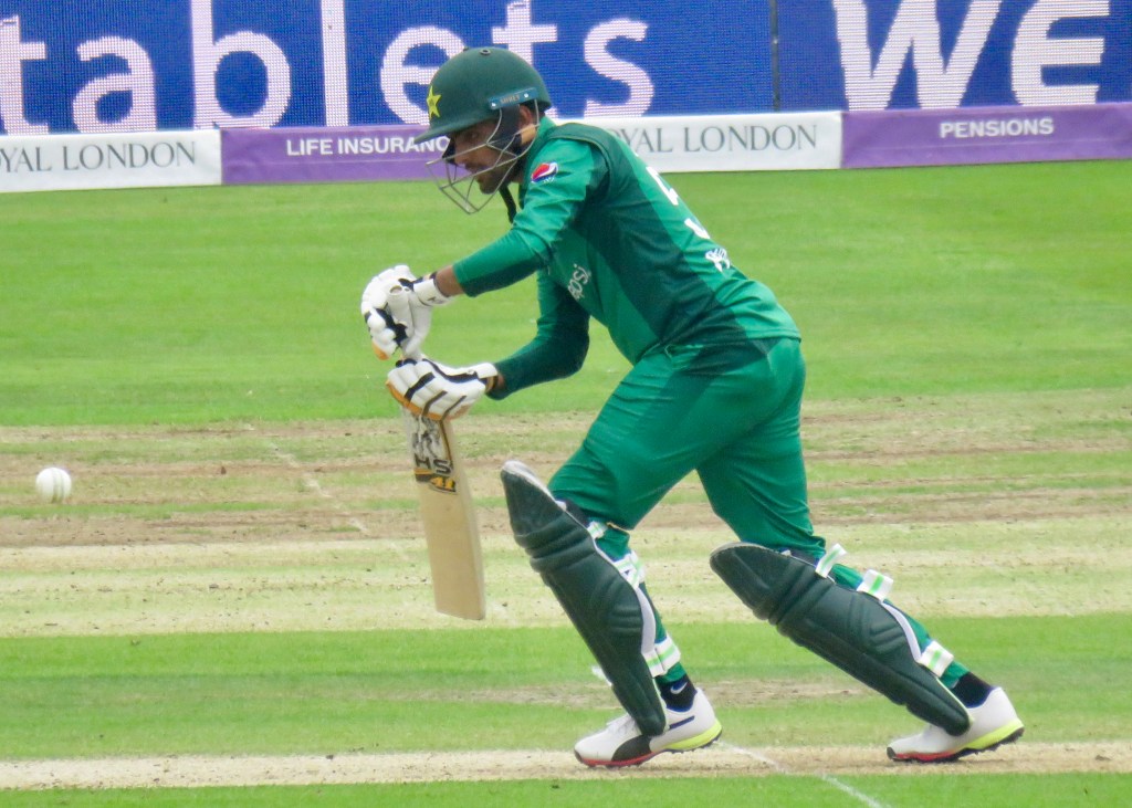 Sarfraz had been batting wonderfully, it was noticeable how far he batted outside of his crease from my viewpoint. He was just 3 away from his century when he misjudged a ball, thinking he’d hit it away he went to take a run, but the ball hit Jos Buttler’s boot and he ran him out. He was out for 97 from 80 balls. Pakistan were 193 for 6 after 31.5 overs.