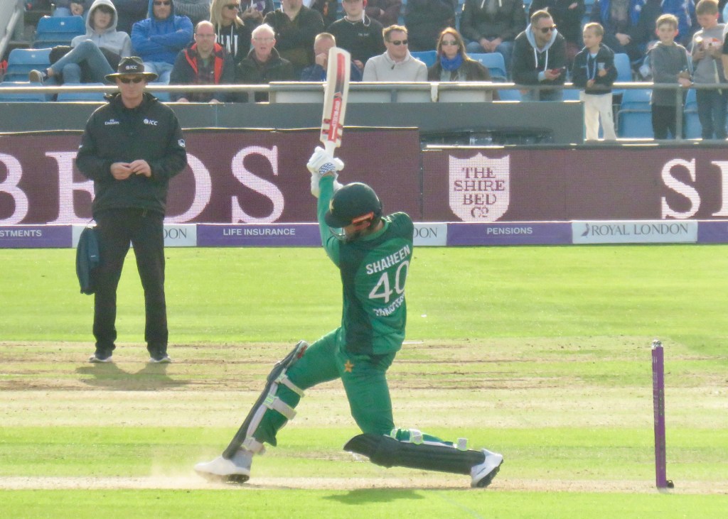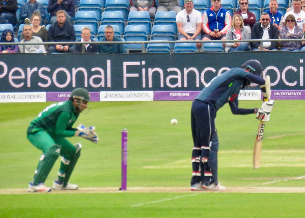 The Pakistan fielding was so much better than it’d been at Trent Bridge, no dropped catches and fumbled fours this time round. Joe Root was approaching a superb century when he went for a ball from teenager Mohammad Hasnain, he knew as soon as he hit the ball he was going to be out, Asif Ali who had been fielding in front of me took the catch. Root had played a highly entertaining innings and made 84 from 73 balls.