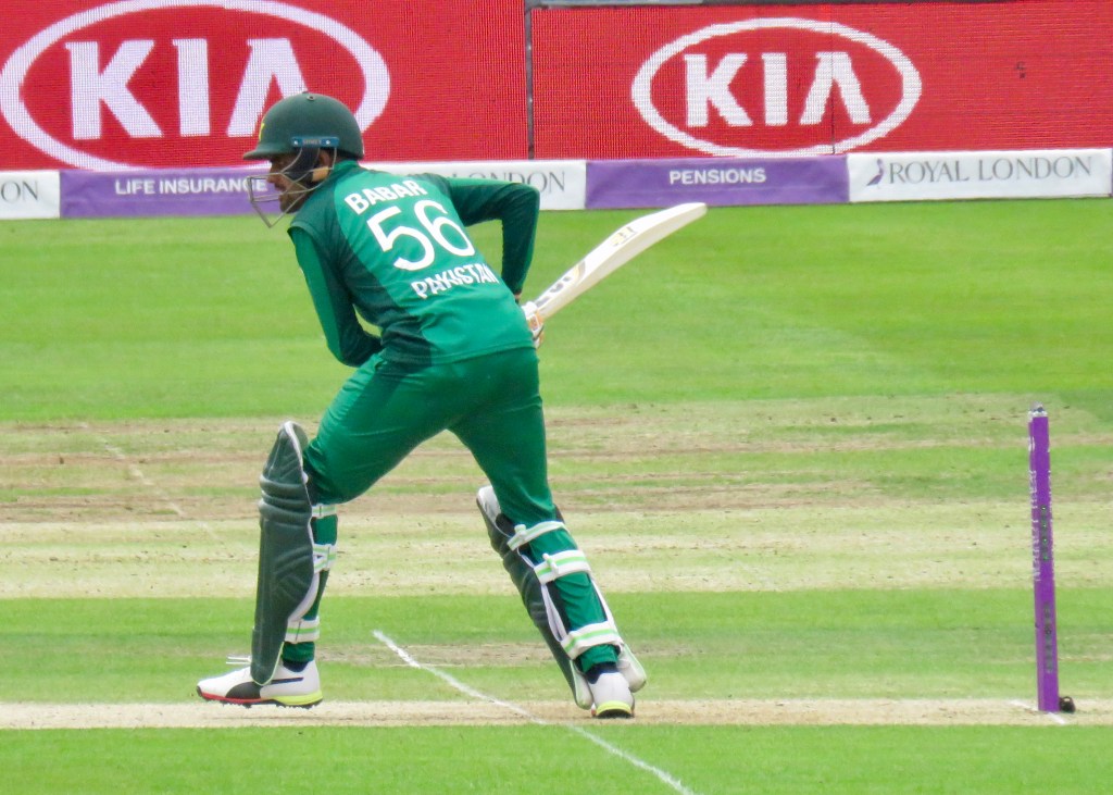 Fakhar was caught by Joe Root from the 3rd ball of the Pakistan innings, 0 for 1. Abid was judged to be LBW on the 15th ball, he reviewed the decision, and the call was deemed, umpire’s call on the ball hitting the stumps, it was literally skimming the bails.