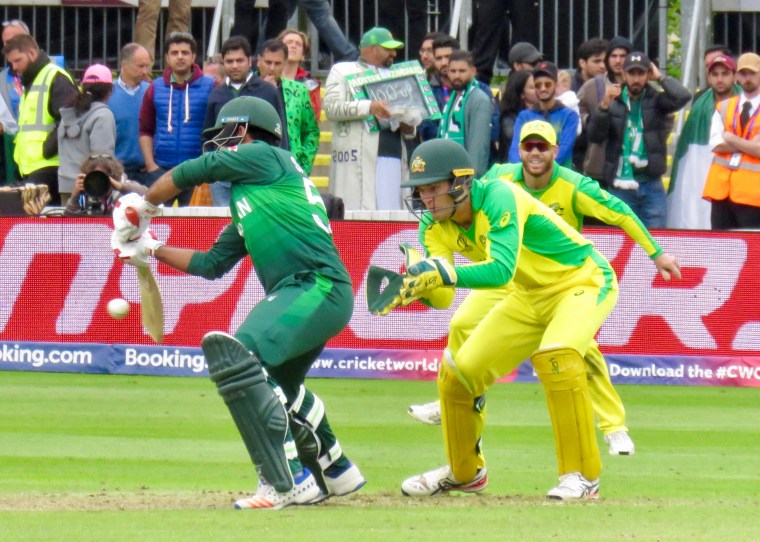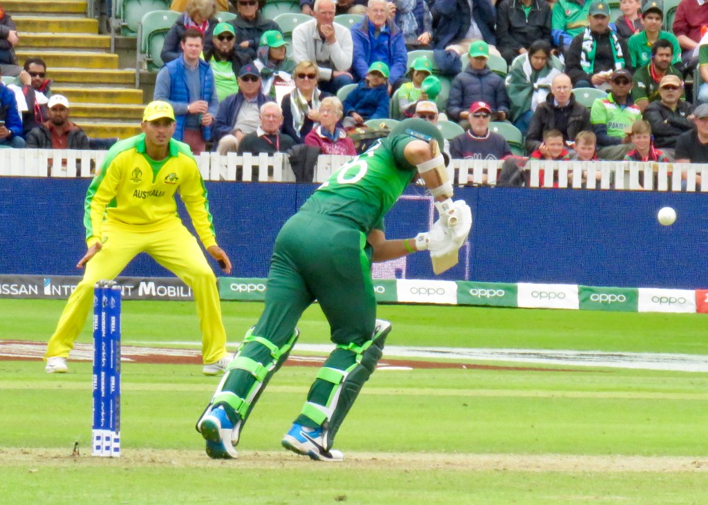 Having looked uncomfortable against Amir, Finch has just pulled his first Six into the stands from the bowling of Shaheen. That was his 100th Six in ODI’s, he’s an incredibly powerful batsman. With Michael Vaughan saying the ground wouldn’t allow 2’s, Warner and Finch have just run 3, Warner looks keen to lift his run rate after an apparently gentle innings against India.