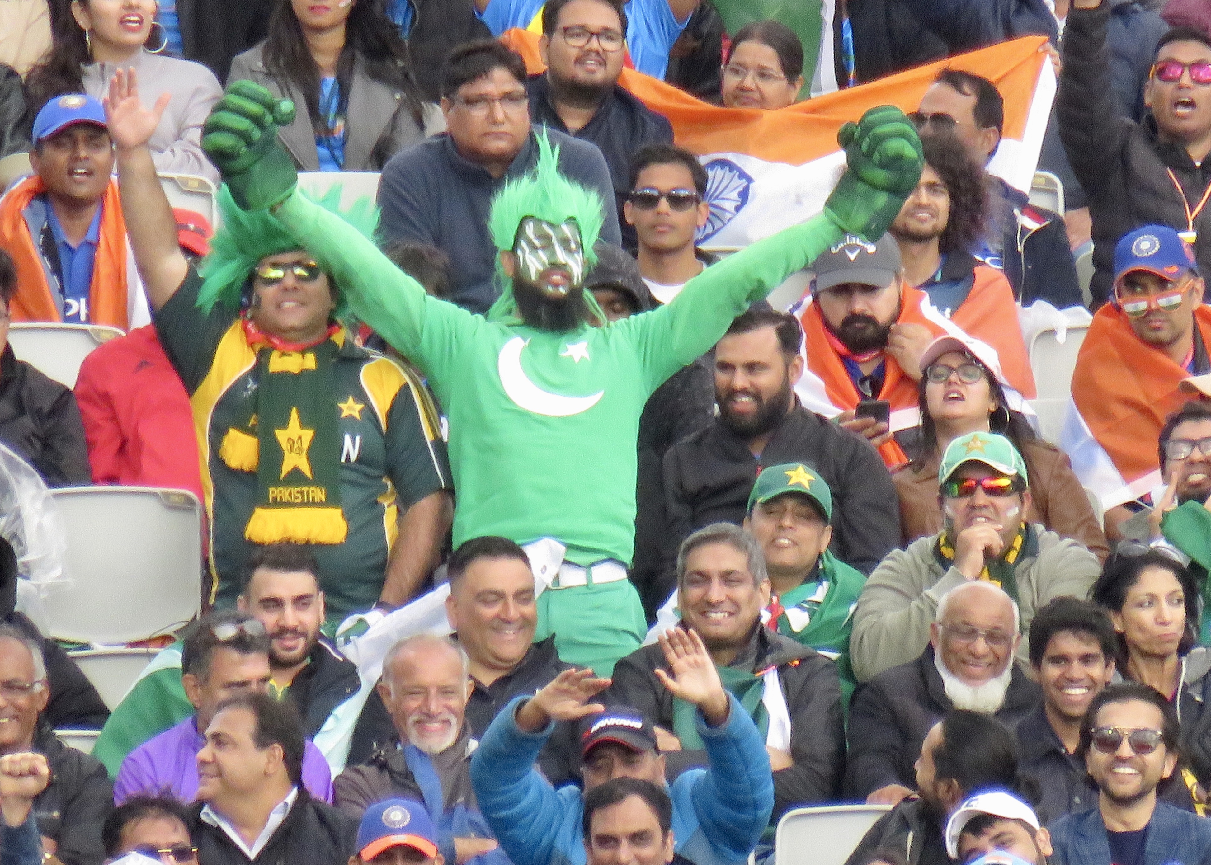 What was clear from the moment I got off the tram was the disparity in the fan balance. Pakistan were completely outnumbered by the India fans, I say by maybe 50 to 1 in the stand I was in! Just how that’s possible with tickets distributed in a random ballot I do not know. I listen to TMS while I watch the game and was frustrated by their stance on this, Pakistan fans wanted to be there, no question, they care just as much as the Indian fans! I was very lucky to have received a ticket in the ballot.