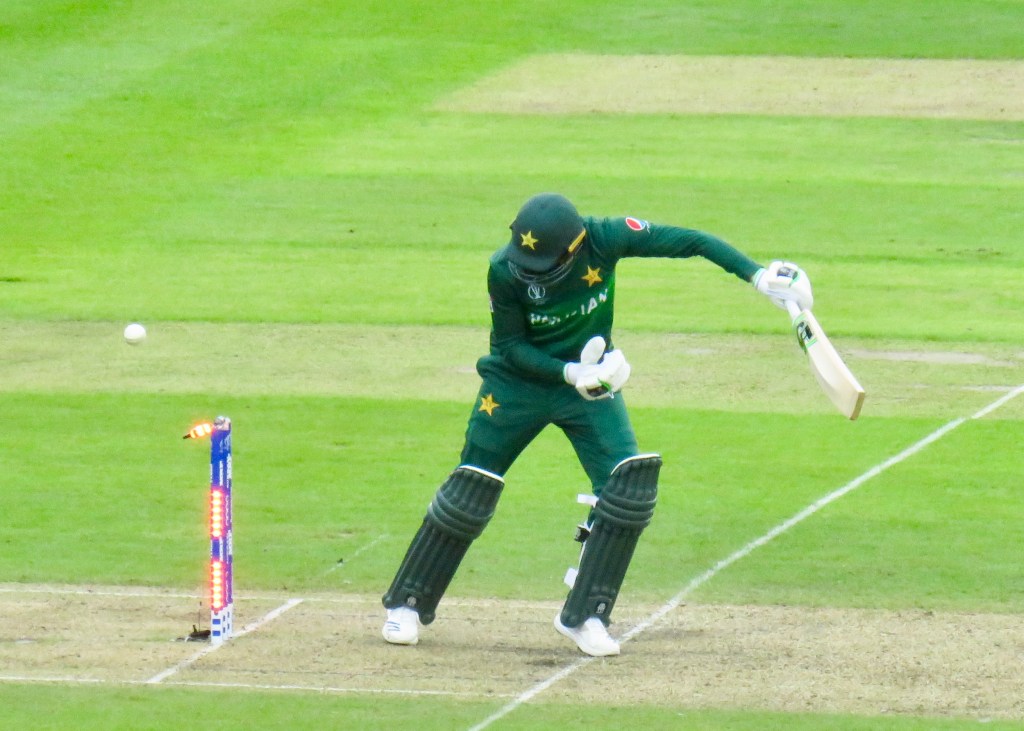 Pakistan needed a good start, but they didn’t get one, remarkably Imam lost his wicket in an over where 2 bowlers took the ball. Bhuvneshwar Kumar pulled up having bowled 4 balls of his third over, Shankar took over and Imam was trapped LBW for 7 on his first ball. Pakistan were 13 for 1 in the 5th over.