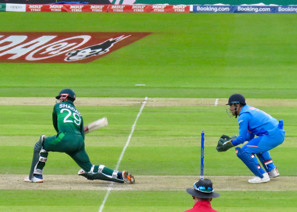 India were put in to bat, I was there in my Pakistan shirt, supporting Pakistan, but also watching some of my favourite players, in blue shirts. My seat in Stand D, usually the party stand, almost required oxygen by the time I got up there! To then find I had to go down again, that meant I took a different route to leave when the rain showed up.