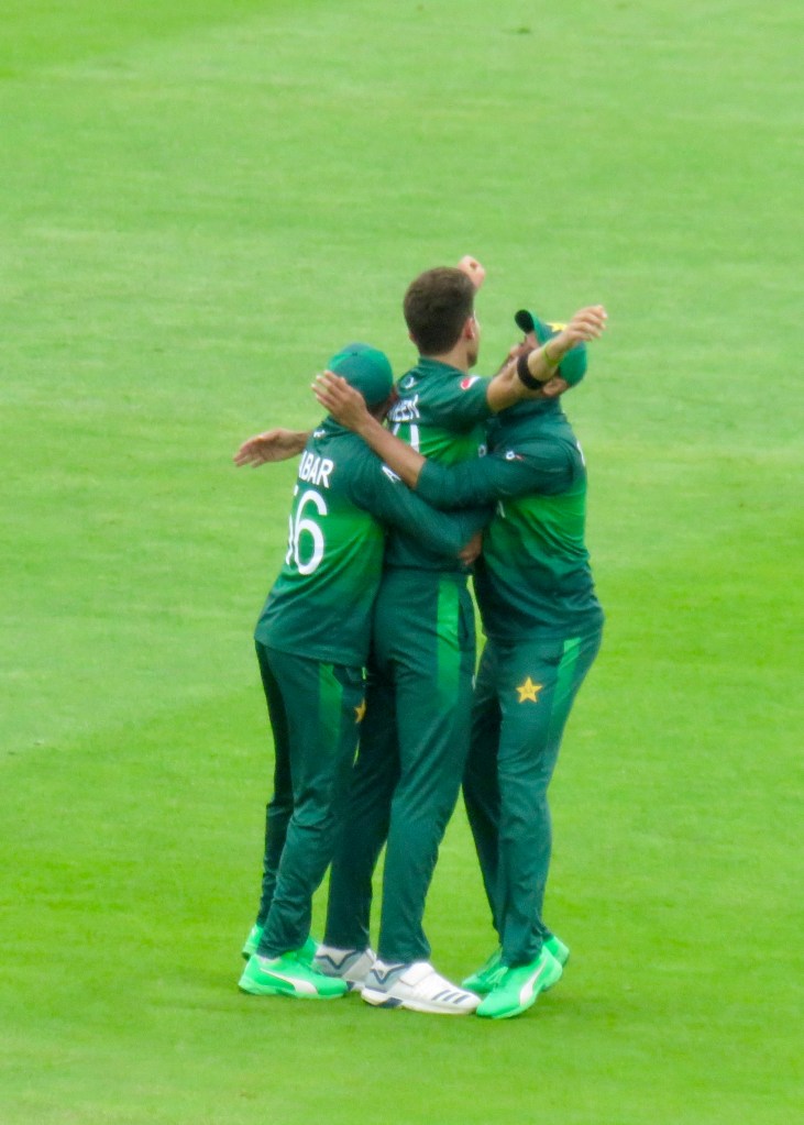 The Pakistan team formed their huddle to have an intense team talk from both Mickey Arthur and Sarfaraz. This was a must win match for the Green Team.
