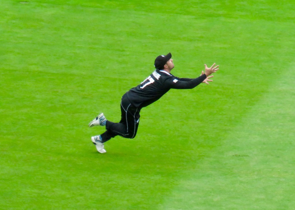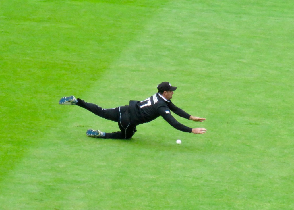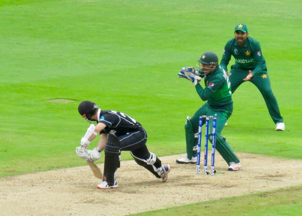 Ross Taylor looked very uncomfortable facing Shaheen, I joked to my neighbour, perhaps he can get out. And sure enough he edged a ball to Sarfaraz who took a brilliant catch low to his right! Taylor was out for 3 and New Zealand were 38 for 3 after 9 overs.