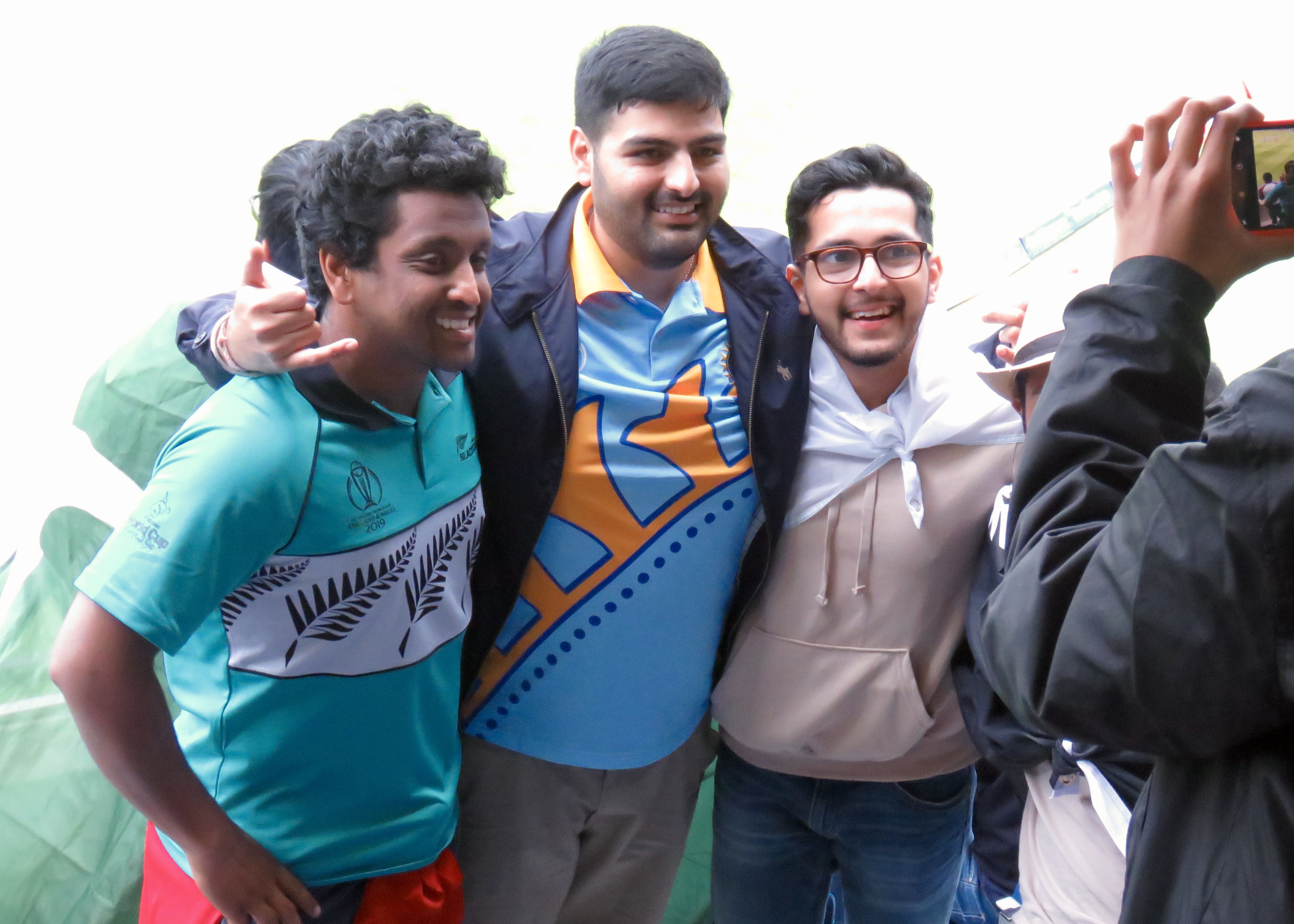 4 New Zealand fans who sung Colin De Grandhomme’s praises while he was batting sang his praises as we waited, he totally ignored them which was disappointing! Those NZ fans turned out to be 2 from NZ and 1 with an India shirt on with a Pakistan fan. They later instigated singing for Pakistan, how great is that!