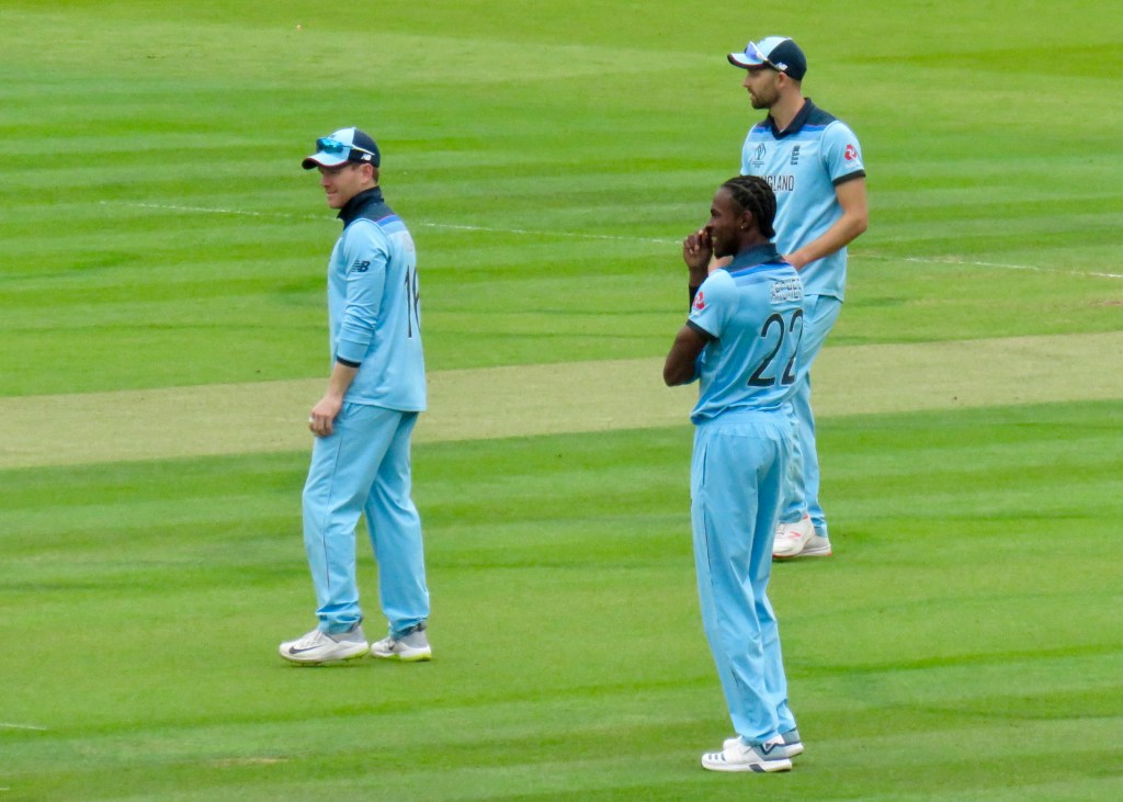 New Zealand’s 200 came up with a wide from Archer in the 44th over. He proceeded to bowl a further 2 wides in the over. Archer came back well in his next over, bamboozling De Grandhomme