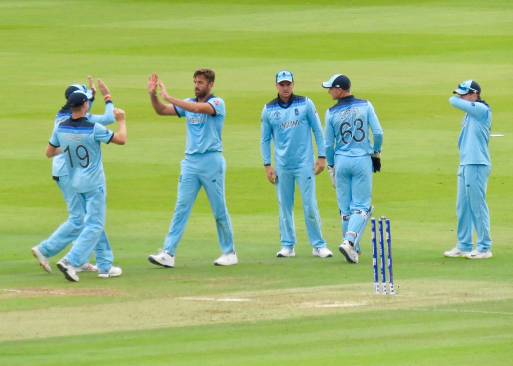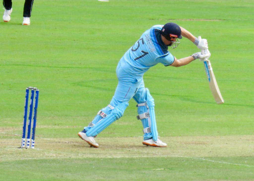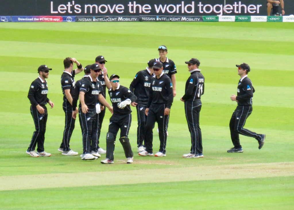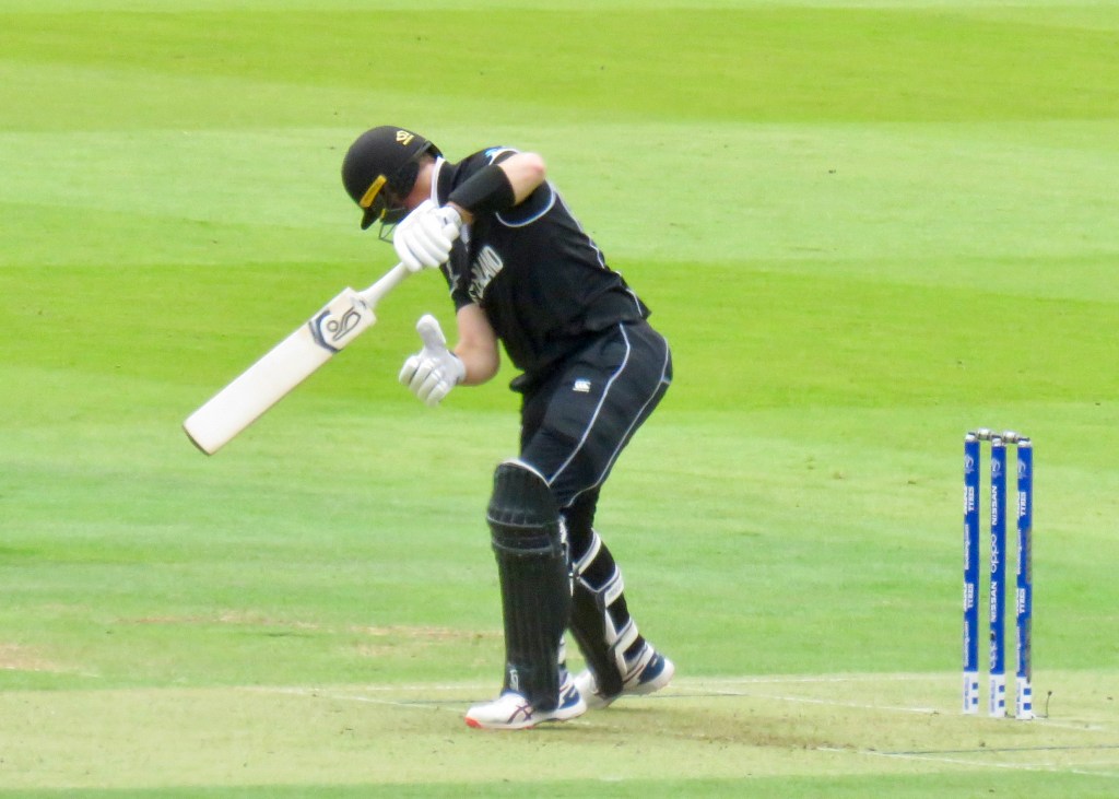 Guptill was then trapped LBW by Chris Woakes, he wasted the NZ appeal, he was very clearly out. Guptill had looked dangerous, he hit a Six from the bowling of Joffra Archer swiftly followed by a straight Four. As an England fan it was good to see him leave. New Zealand were 29 for 1, then 33 for 2 after 10 overs. Their 50 came up in the 14th over, this clearly wasn’t a road/an easy wicket to bat on.