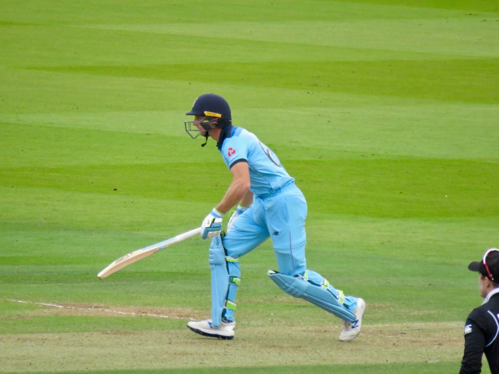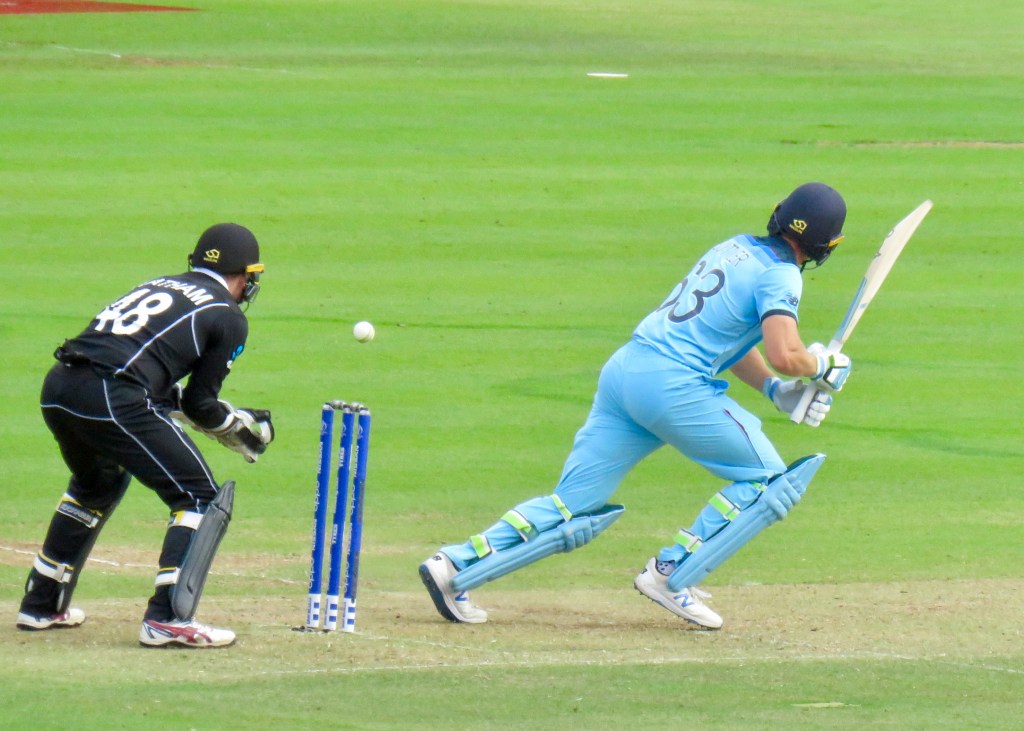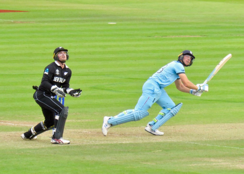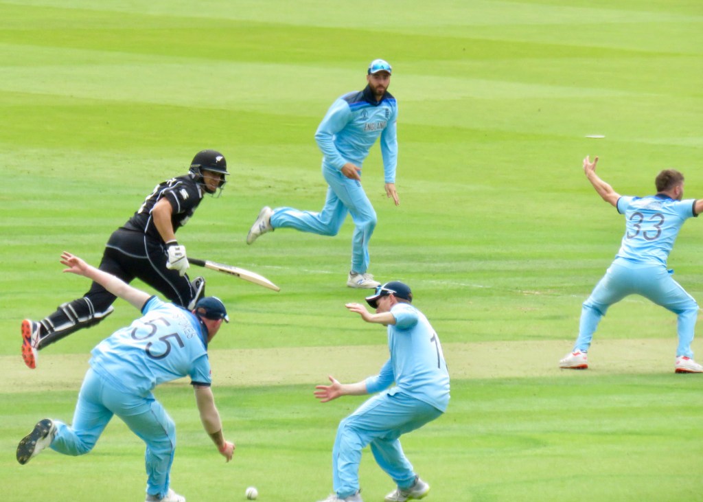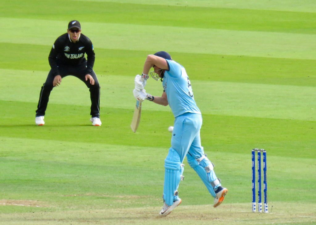 Buttler and Stokes were struggling to get the ball away, but had built a great partnership, both reaching their half centuries. In the 45th over Buttler went for a ball from Ferguson and was caught by Southee, on as a sub, he was out for 59 and England were 196 for 5 they needed 46 from 31 balls.